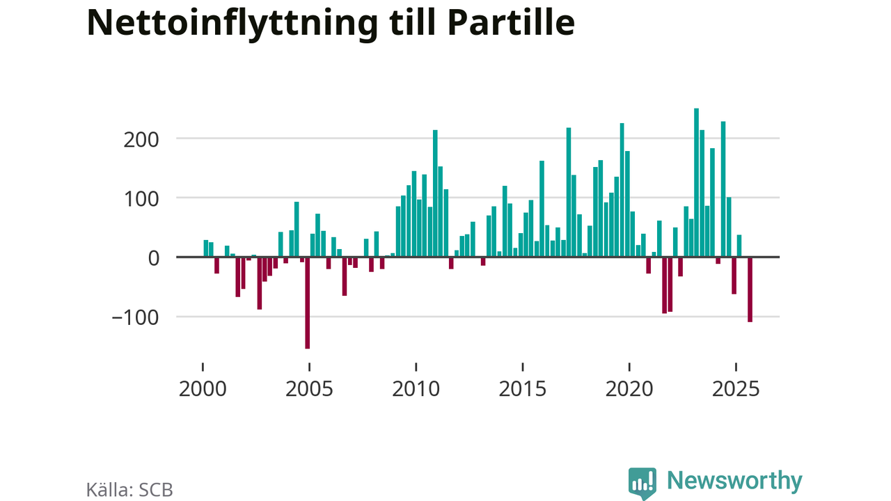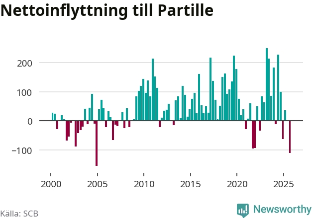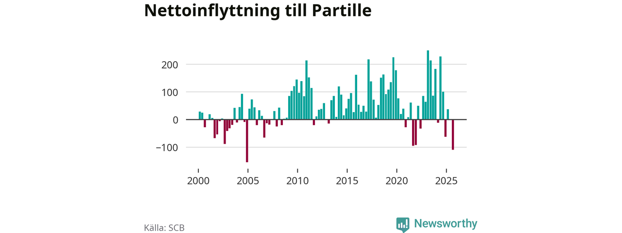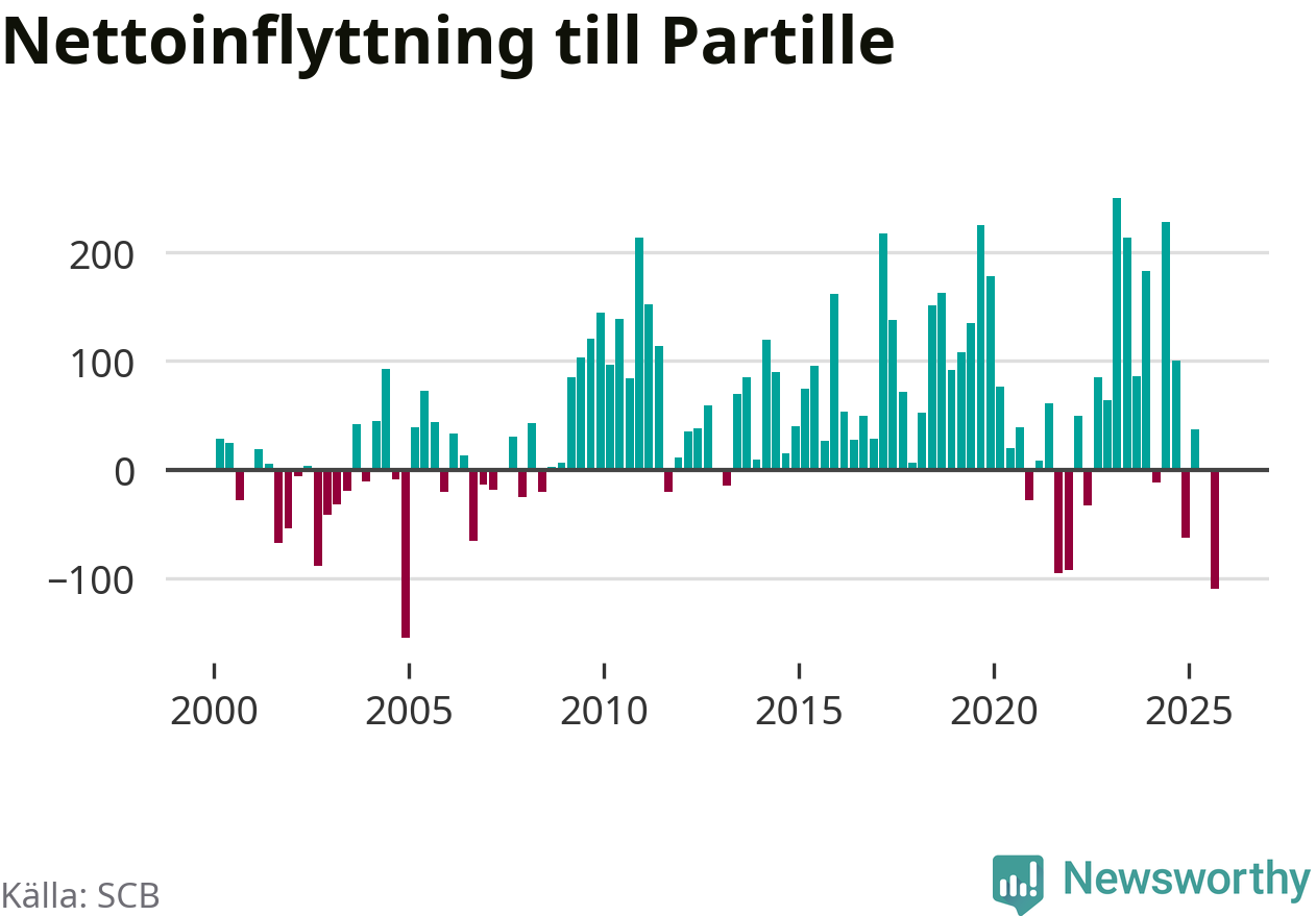 1 020 personer flyttade från Partille kommun under det tredje kvartalet 2025. Det är ovanligt många, visar SCB:s senaste befolkningssiffror.