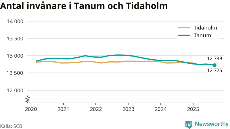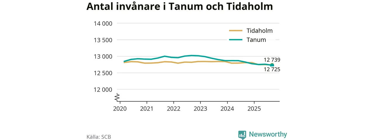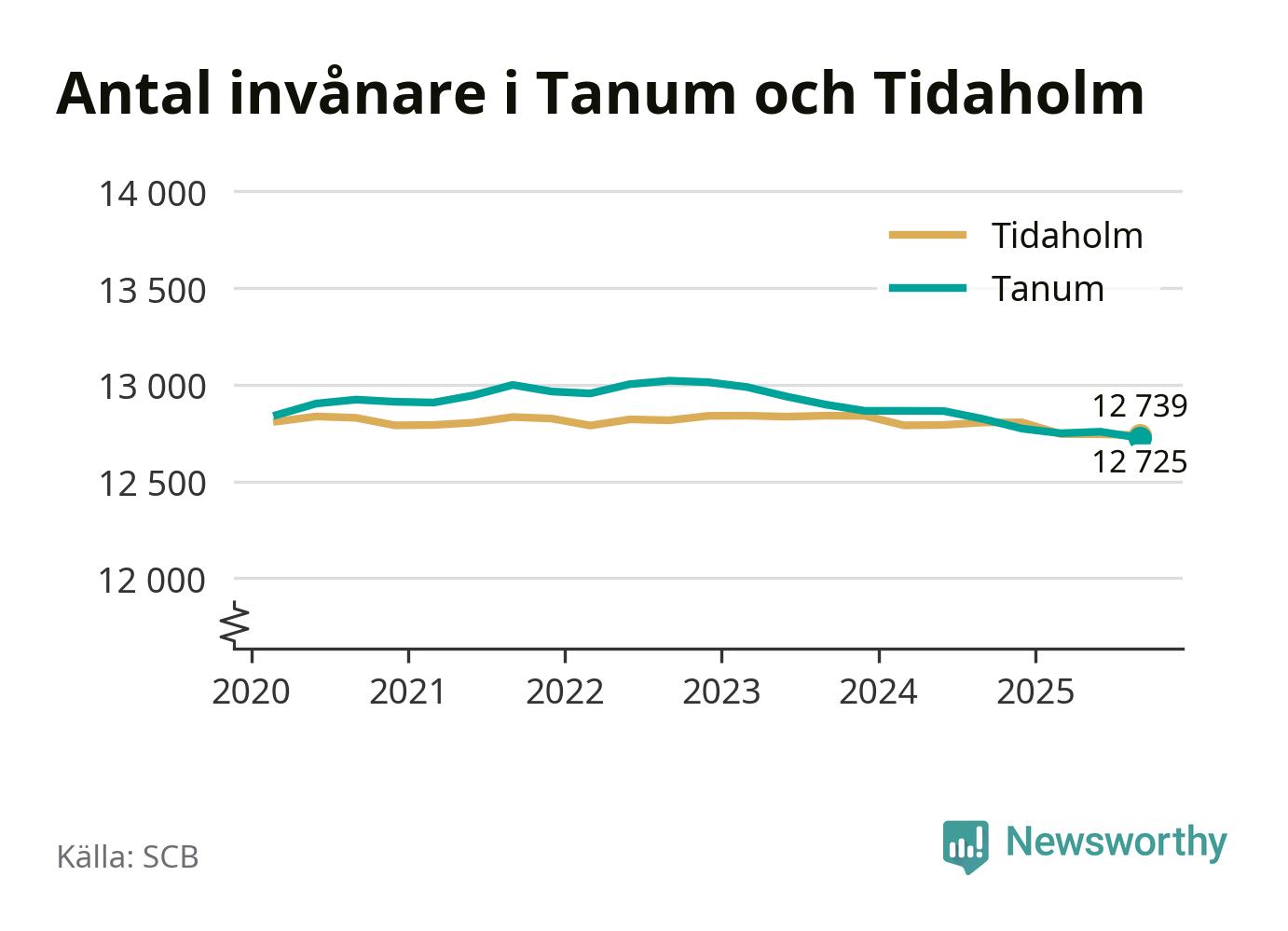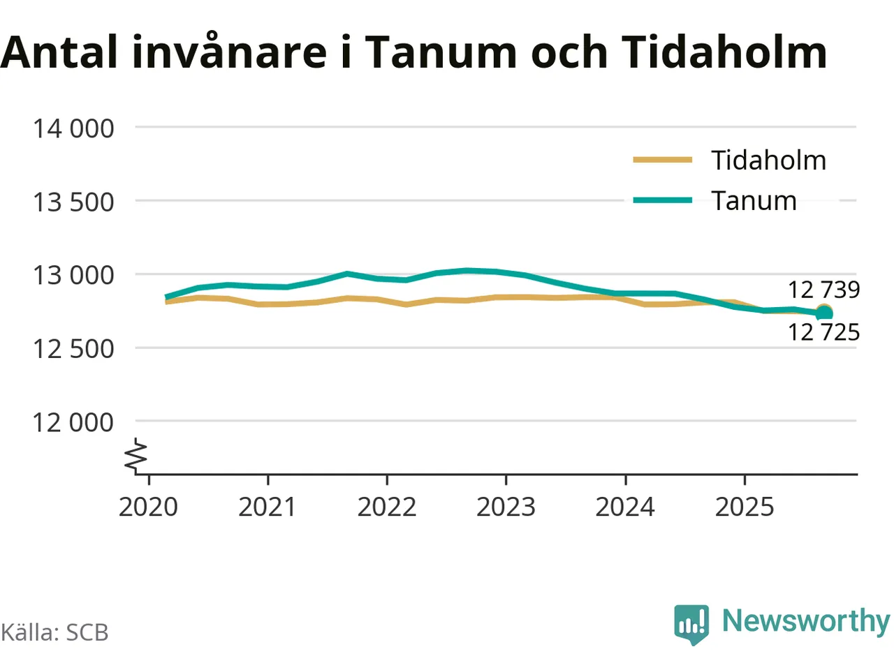 Tanum tappar en placering på befolkningslistan i Västra Götaland. Tidaholm (12 739 invånare) har gått om.