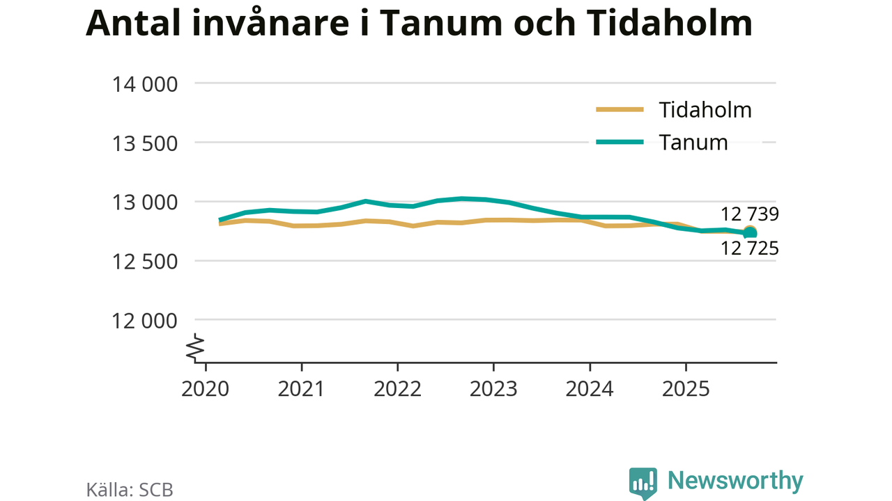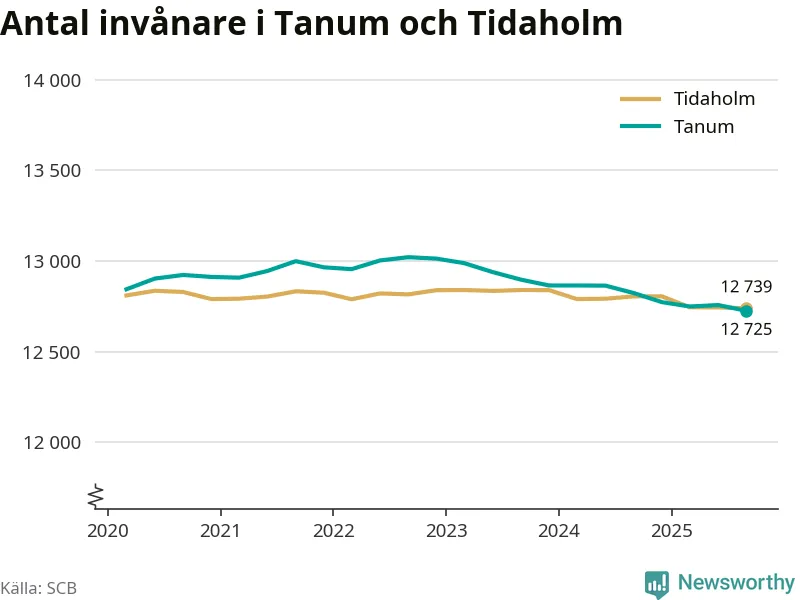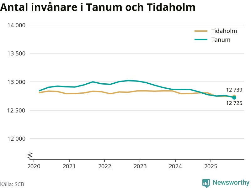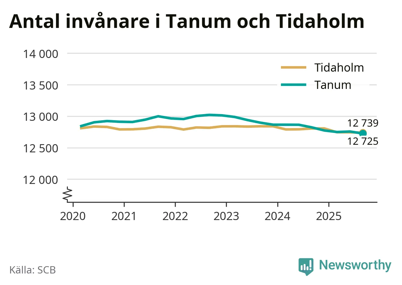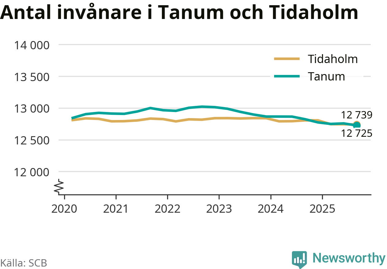 Tanum tappar en placering på befolkningslistan i Västra Götaland. Tidaholm (12 739 invånare) har gått om.