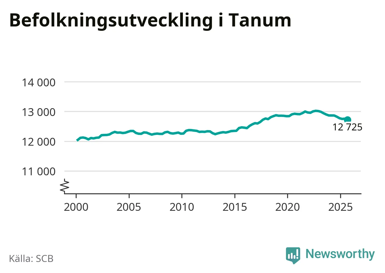 Befolkningen minskade i Tanums kommun under det tredje kvartalet 2025. Den 30 september bodde enligt SCB:s senaste siffror 12 725 personer i kommunen, vilket är 32 färre än i slutet av andra kvartalet.