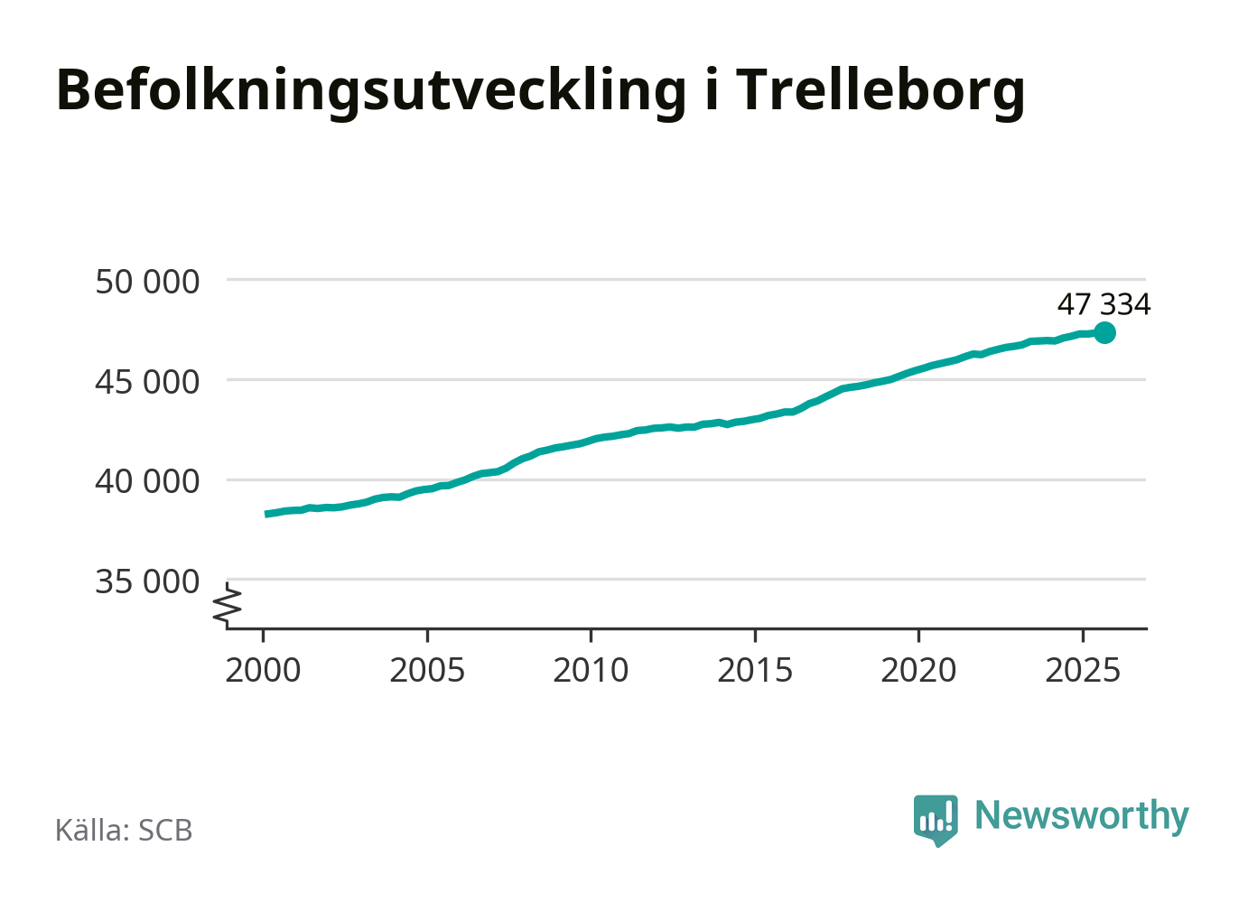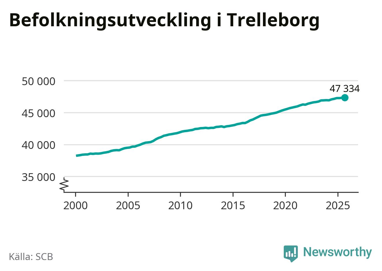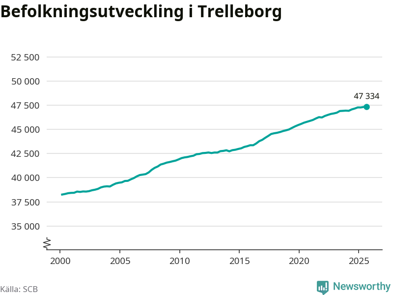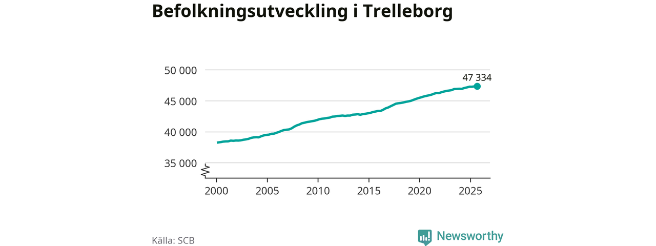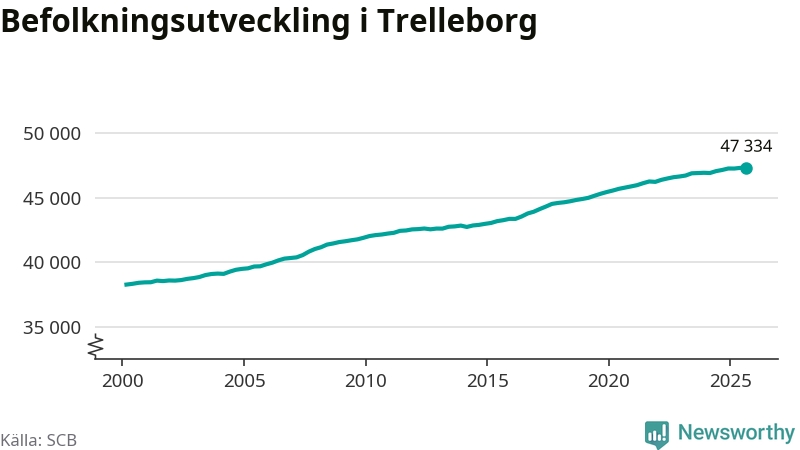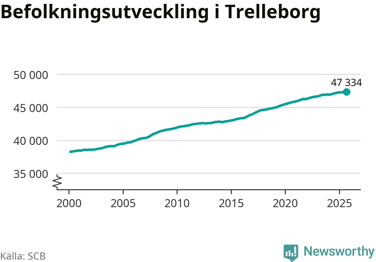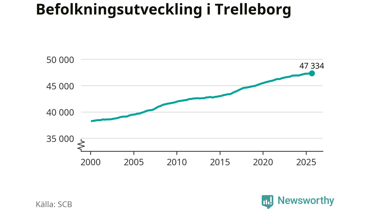 Befolkningen ökade i Trelleborgs kommun under det tredje kvartalet 2025. Den 30 september bodde enligt SCB:s senaste siffror 47 334 personer i kommunen, vilket är 16 fler än i slutet av andra kvartalet.