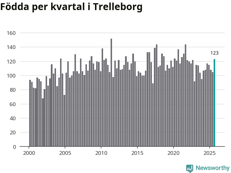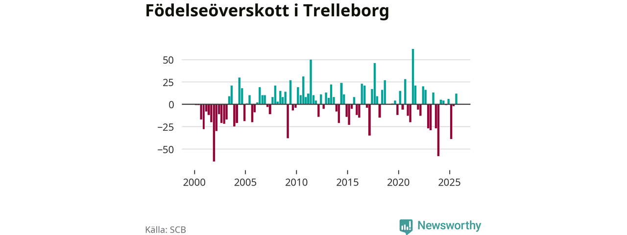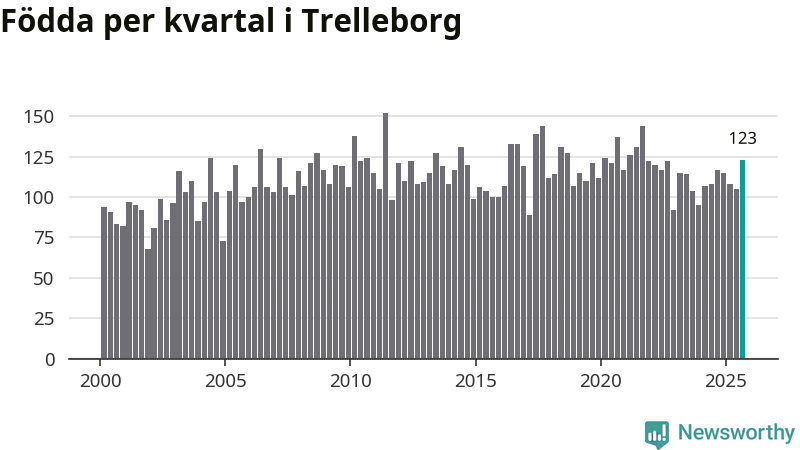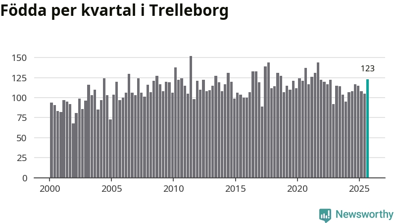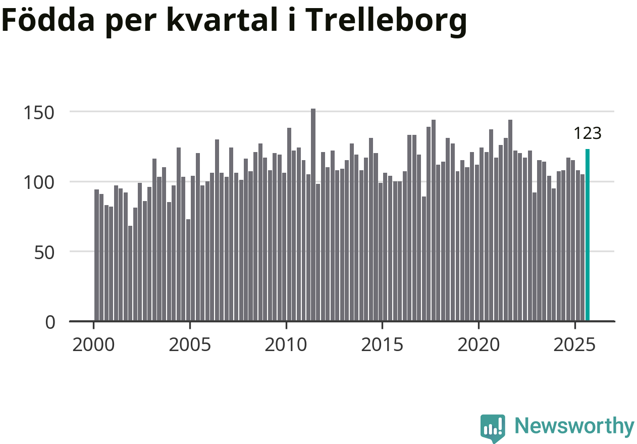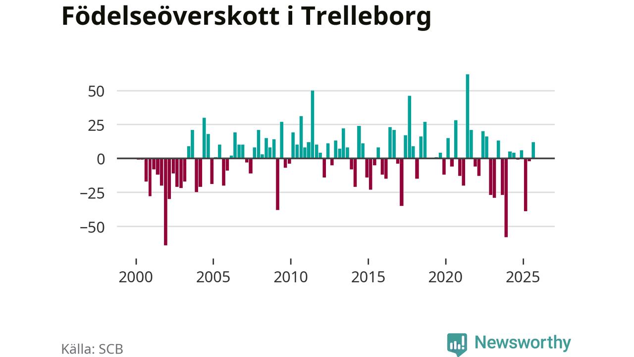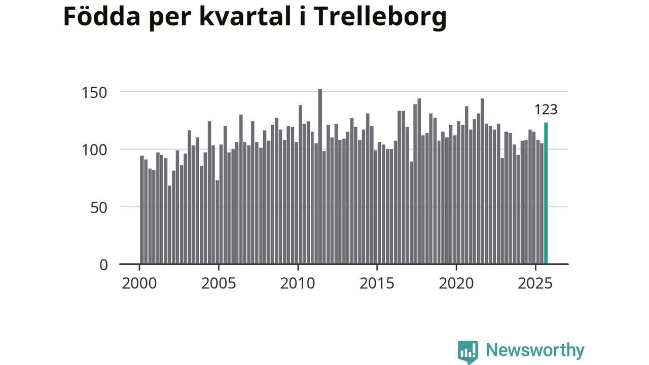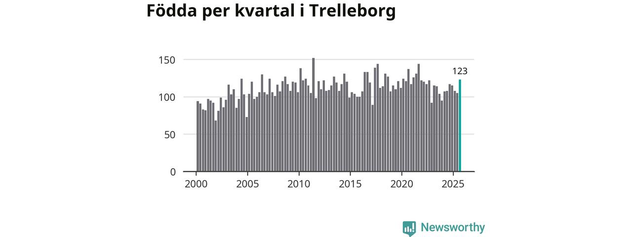 Enligt SCB:s siffror föddes 123 barn i Trelleborg under det senaste kvartalet. Samtidigt avled 111 personer. Trelleborg hade alltså ett positivt födelsenetto. Historiskt sett har kommunen haft ungefär lika många kvartal med positivt flyttnetto som negativt.