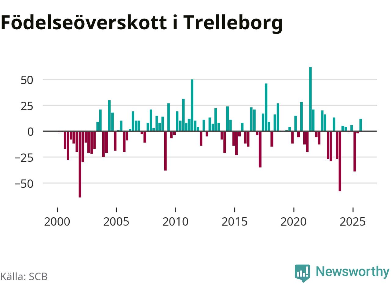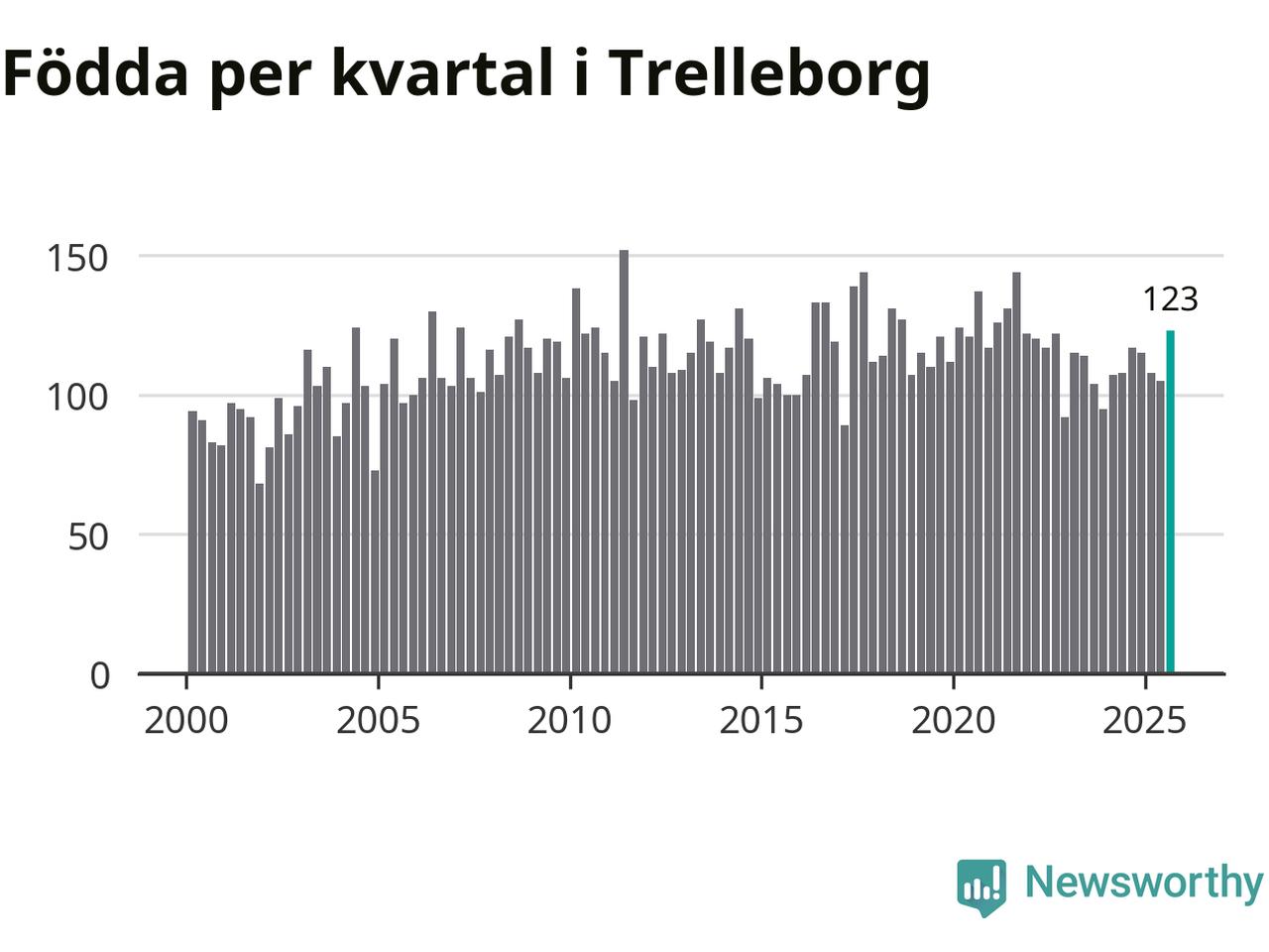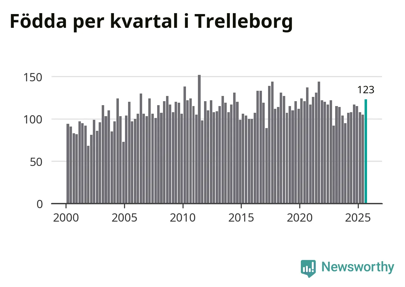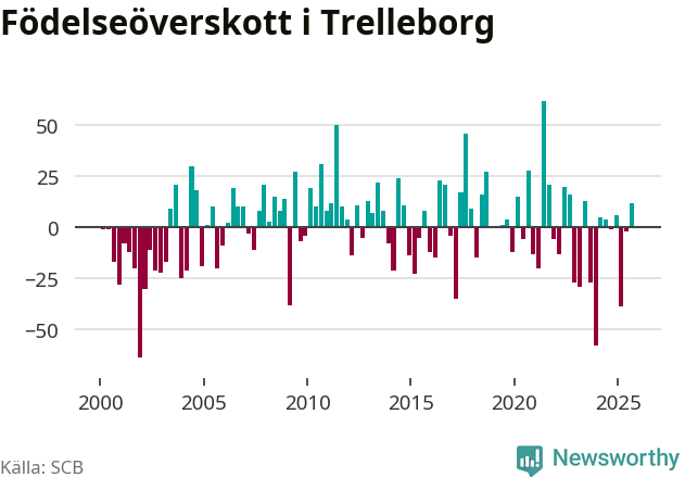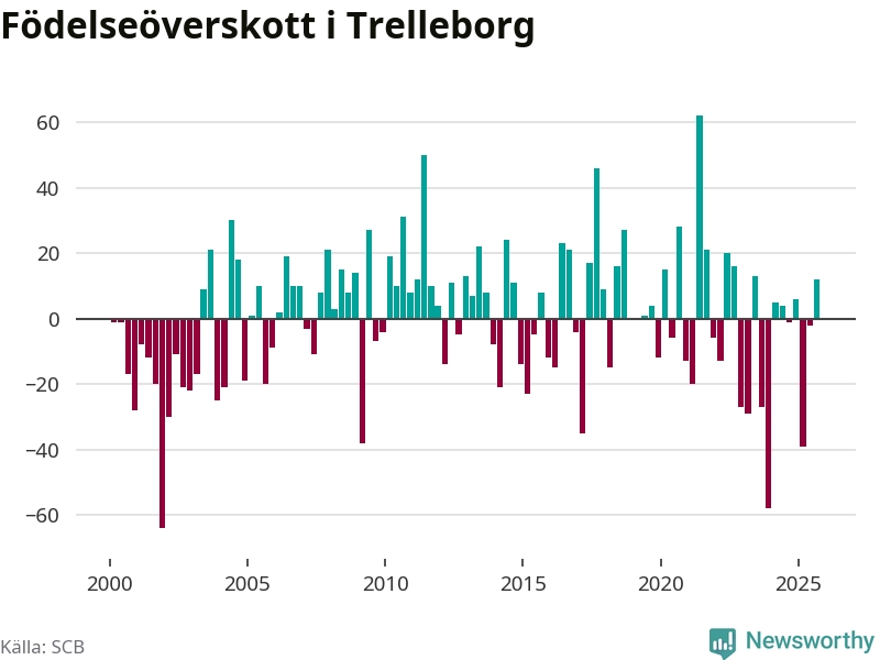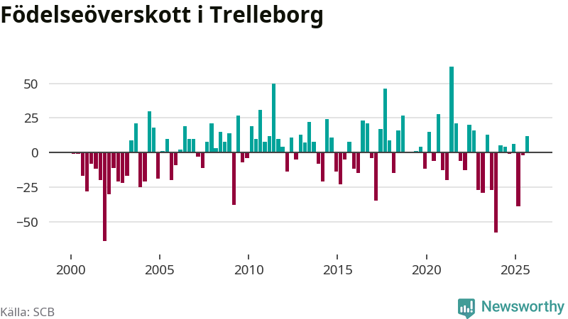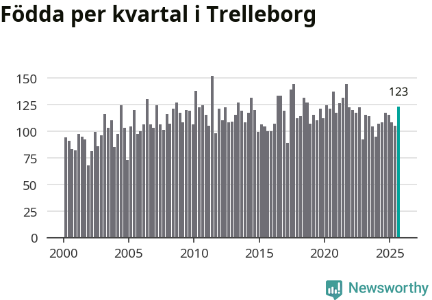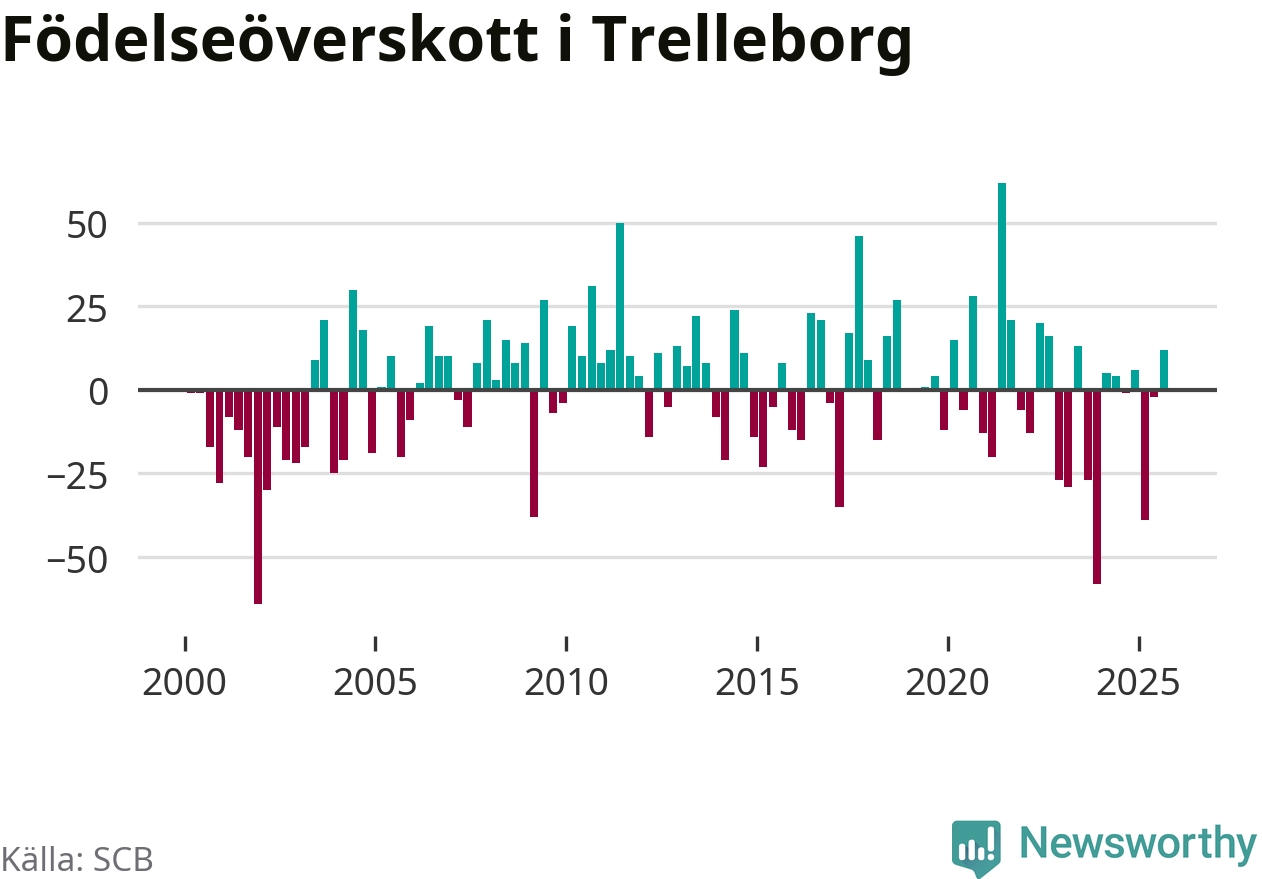 Enligt SCB:s siffror föddes 123 barn i Trelleborg under det senaste kvartalet. Samtidigt avled 111 personer. Trelleborg hade alltså ett positivt födelsenetto. Historiskt sett har kommunen haft ungefär lika många kvartal med positivt flyttnetto som negativt.