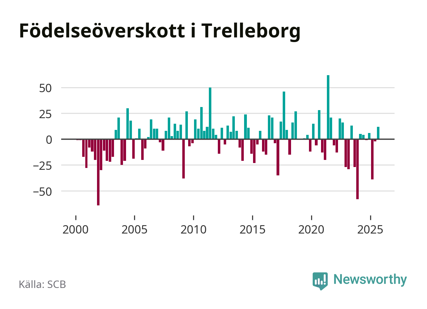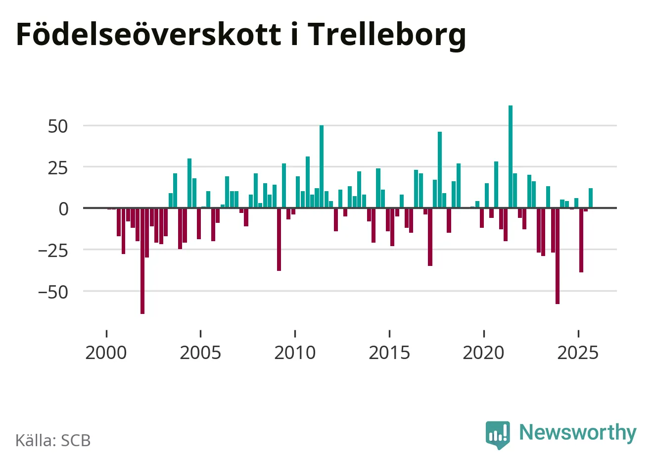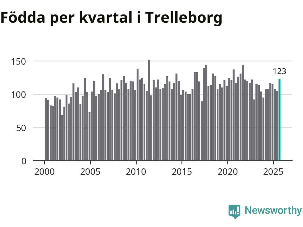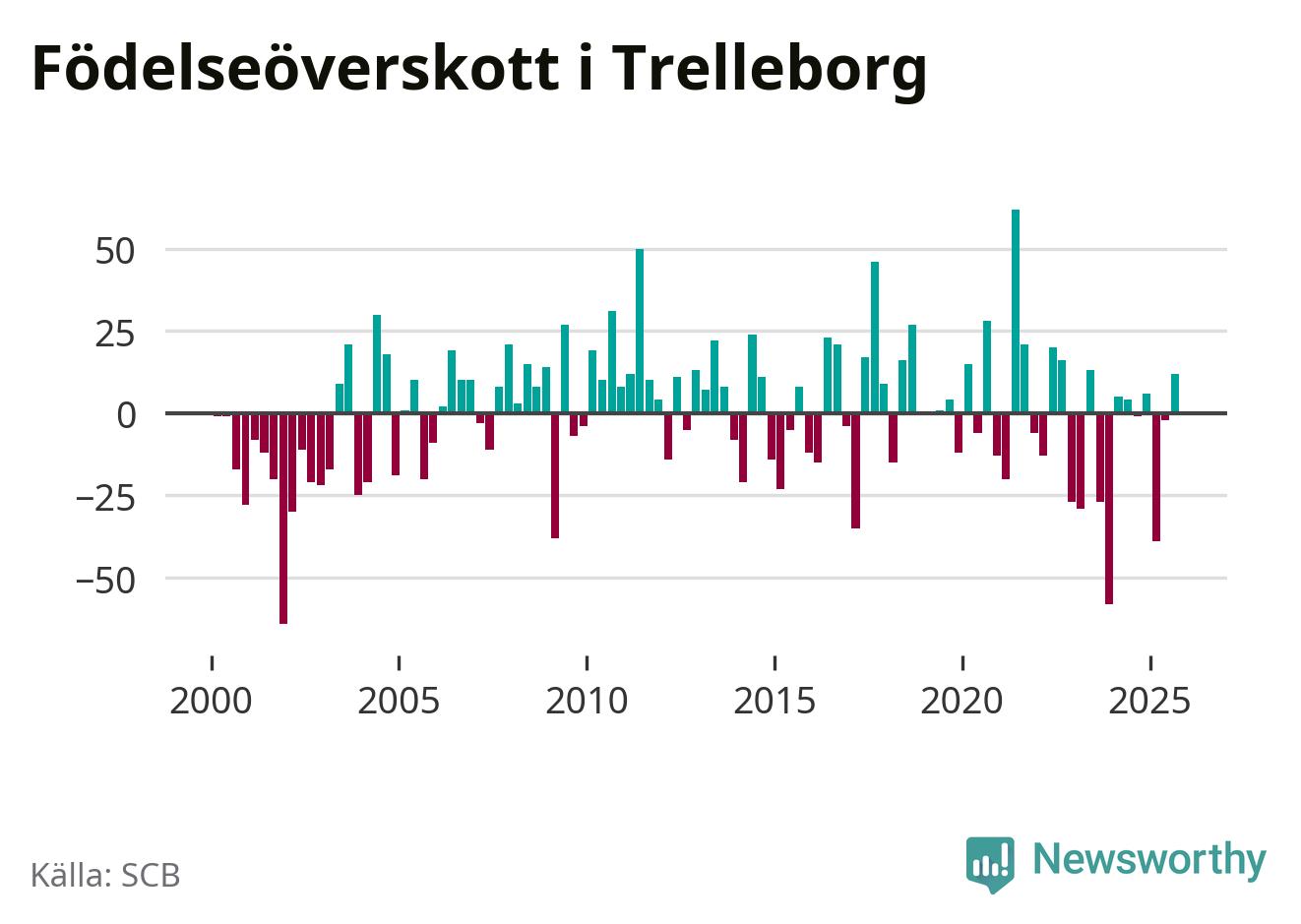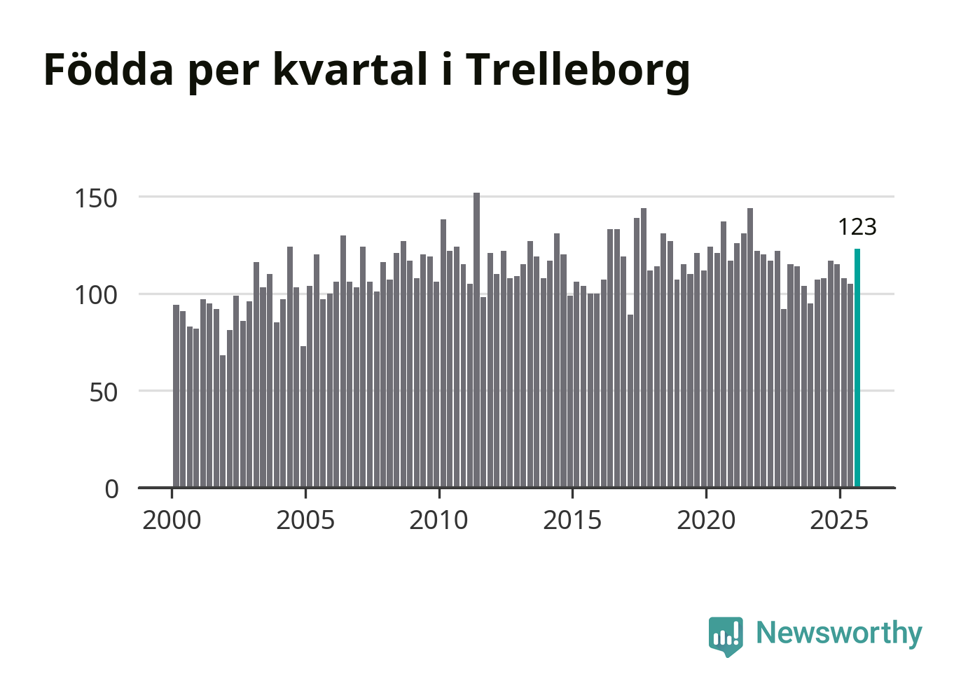 Enligt SCB:s siffror föddes 123 barn i Trelleborg under det senaste kvartalet. Samtidigt avled 111 personer. Trelleborg hade alltså ett positivt födelsenetto. Historiskt sett har kommunen haft ungefär lika många kvartal med positivt flyttnetto som negativt.