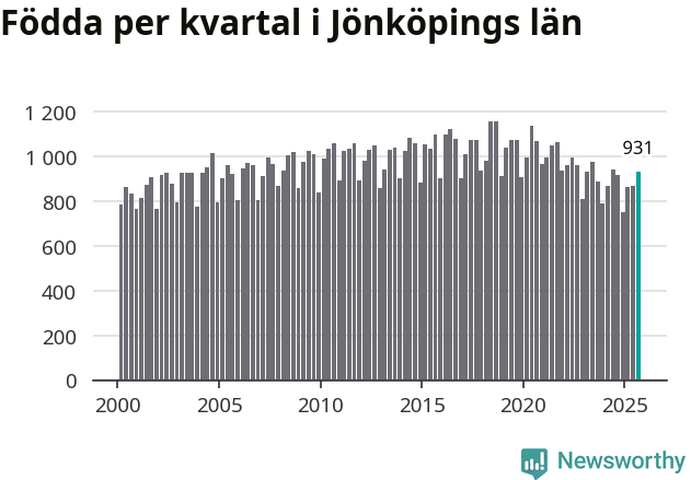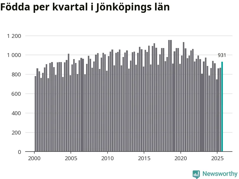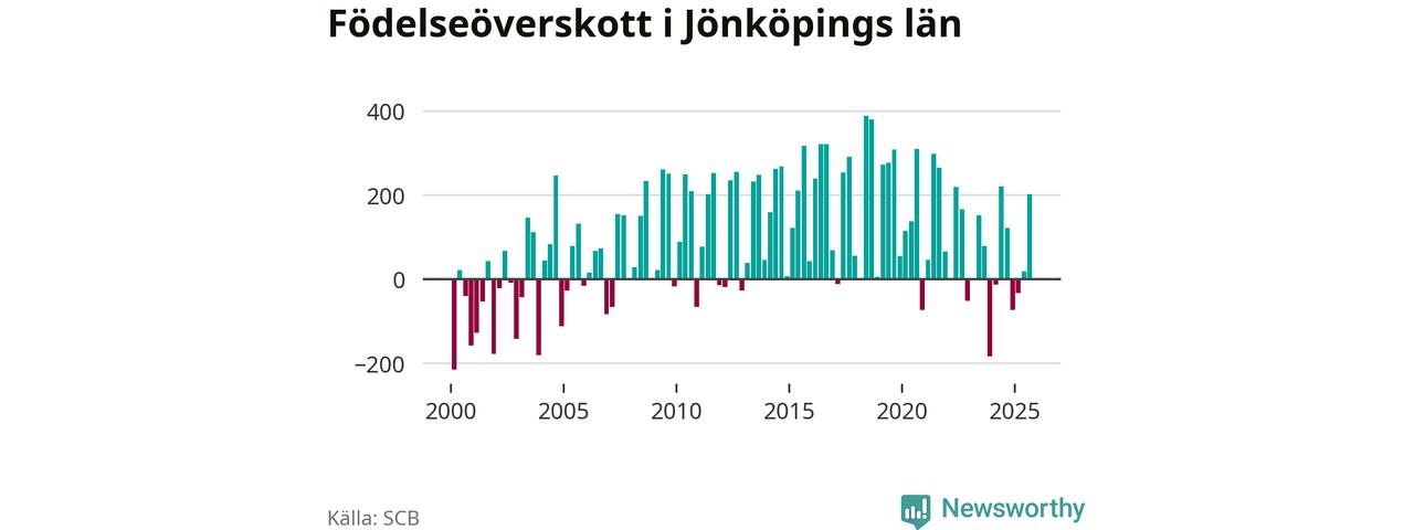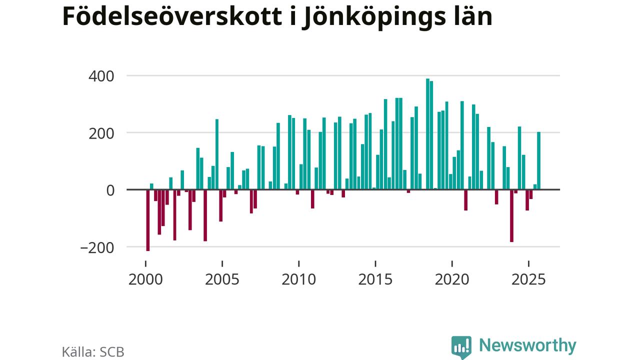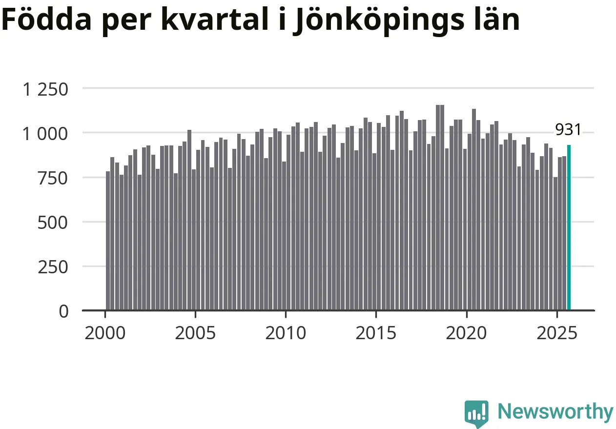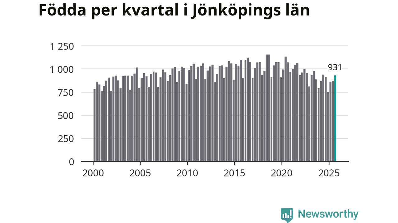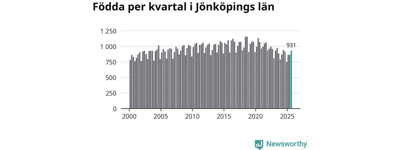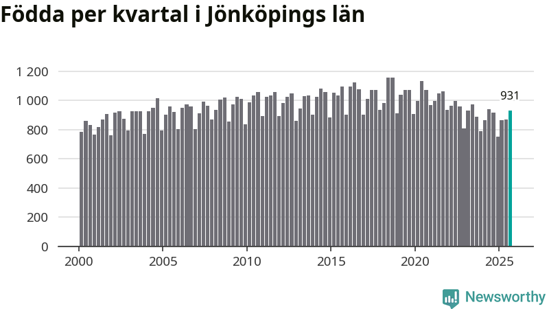 Enligt SCB:s siffror föddes 931 barn i Jönköpings län under det senaste kvartalet. Samtidigt avled relativt få – 730 personer. Jönköping hade alltså ett positivt födelsenetto, vilket länet historiskt sett oftast har haft.