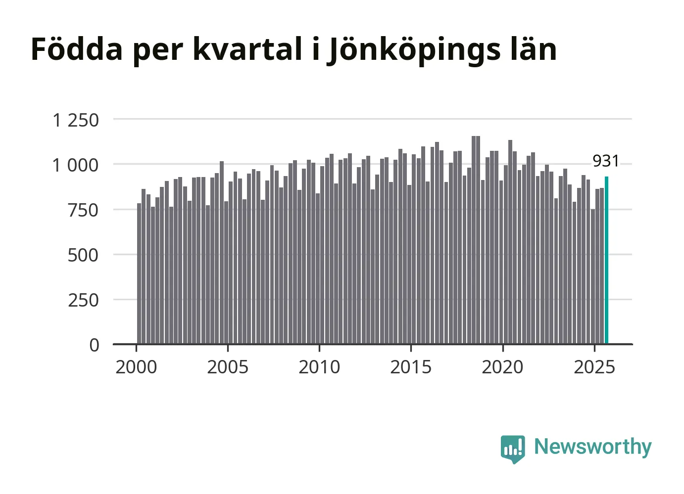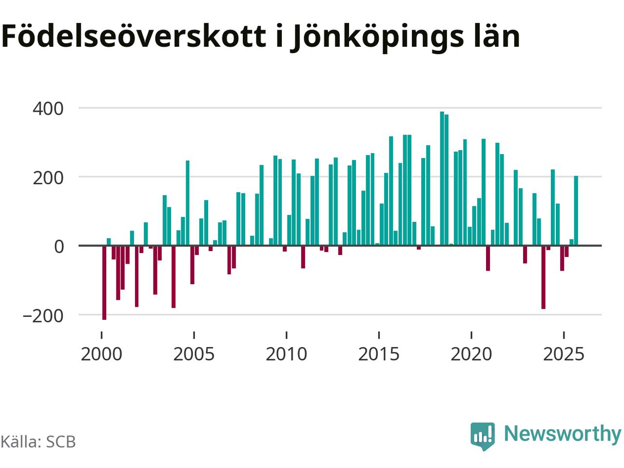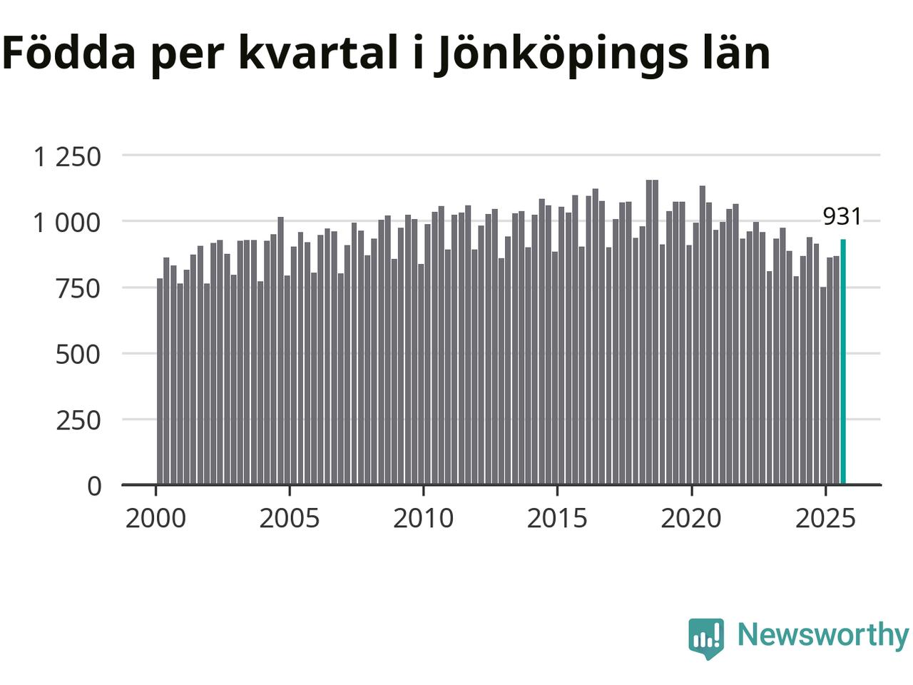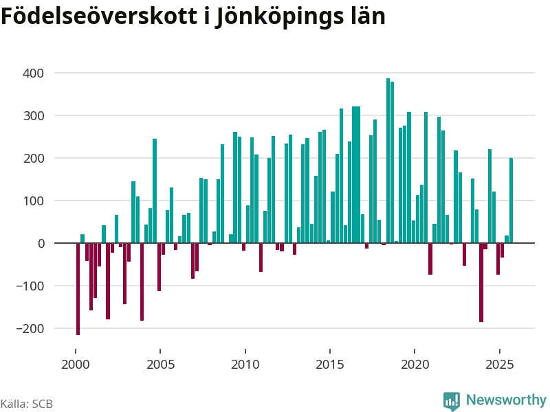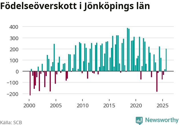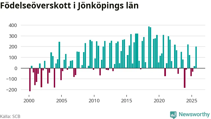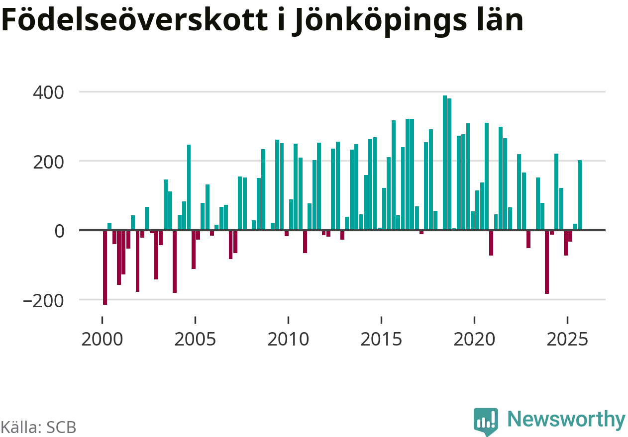 Enligt SCB:s siffror föddes 931 barn i Jönköpings län under det senaste kvartalet. Samtidigt avled relativt få – 730 personer. Jönköping hade alltså ett positivt födelsenetto, vilket länet historiskt sett oftast har haft.