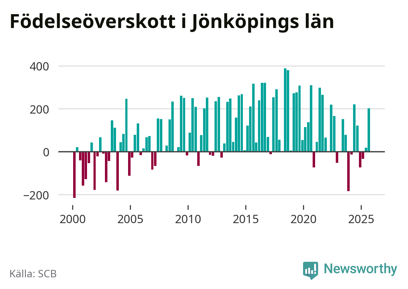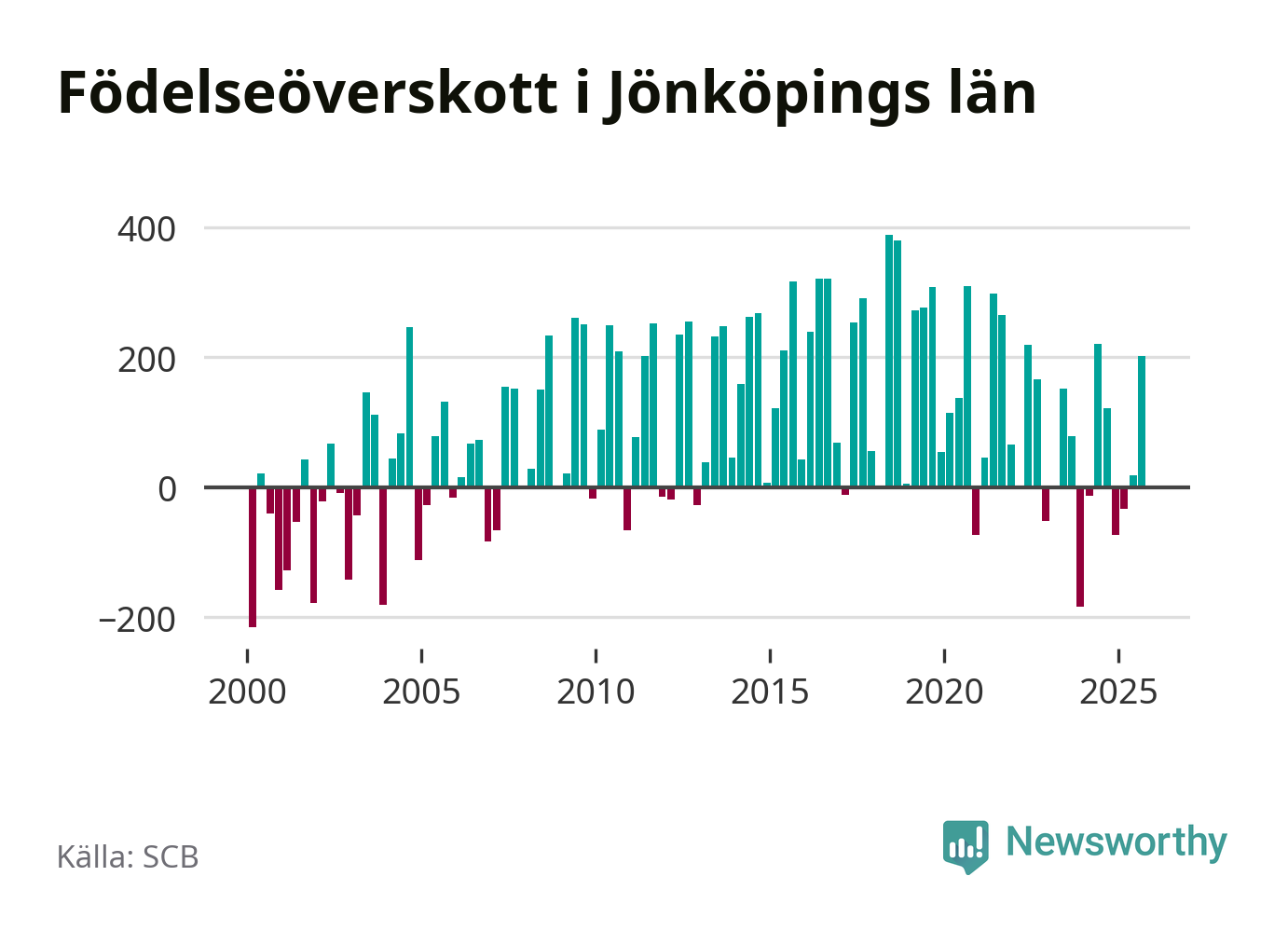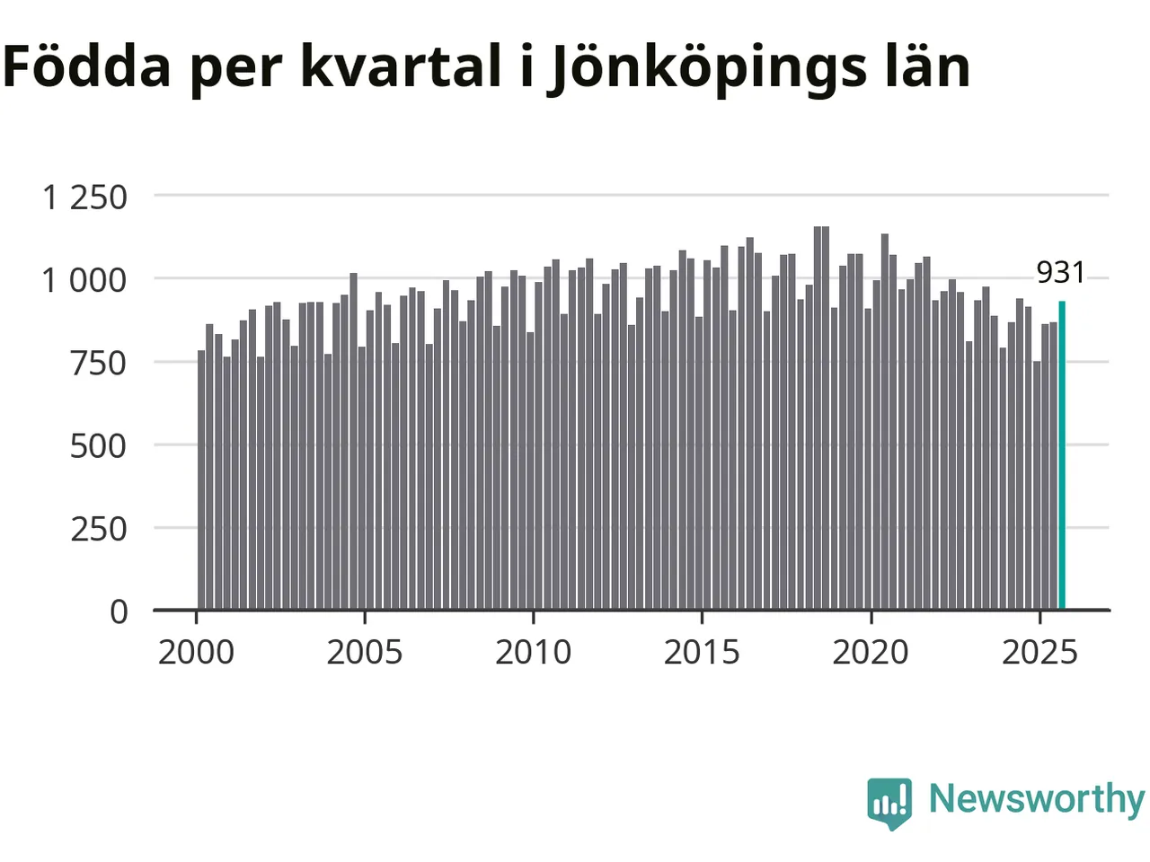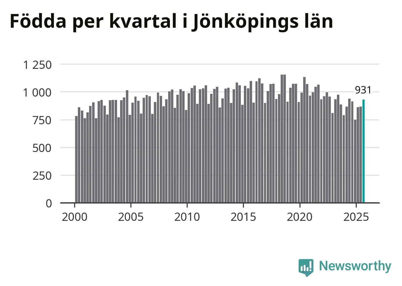 Enligt SCB:s siffror föddes 931 barn i Jönköpings län under det senaste kvartalet. Samtidigt avled relativt få – 730 personer. Jönköping hade alltså ett positivt födelsenetto, vilket länet historiskt sett oftast har haft.