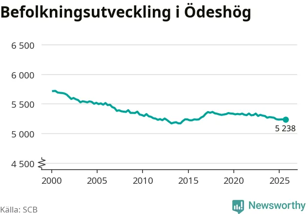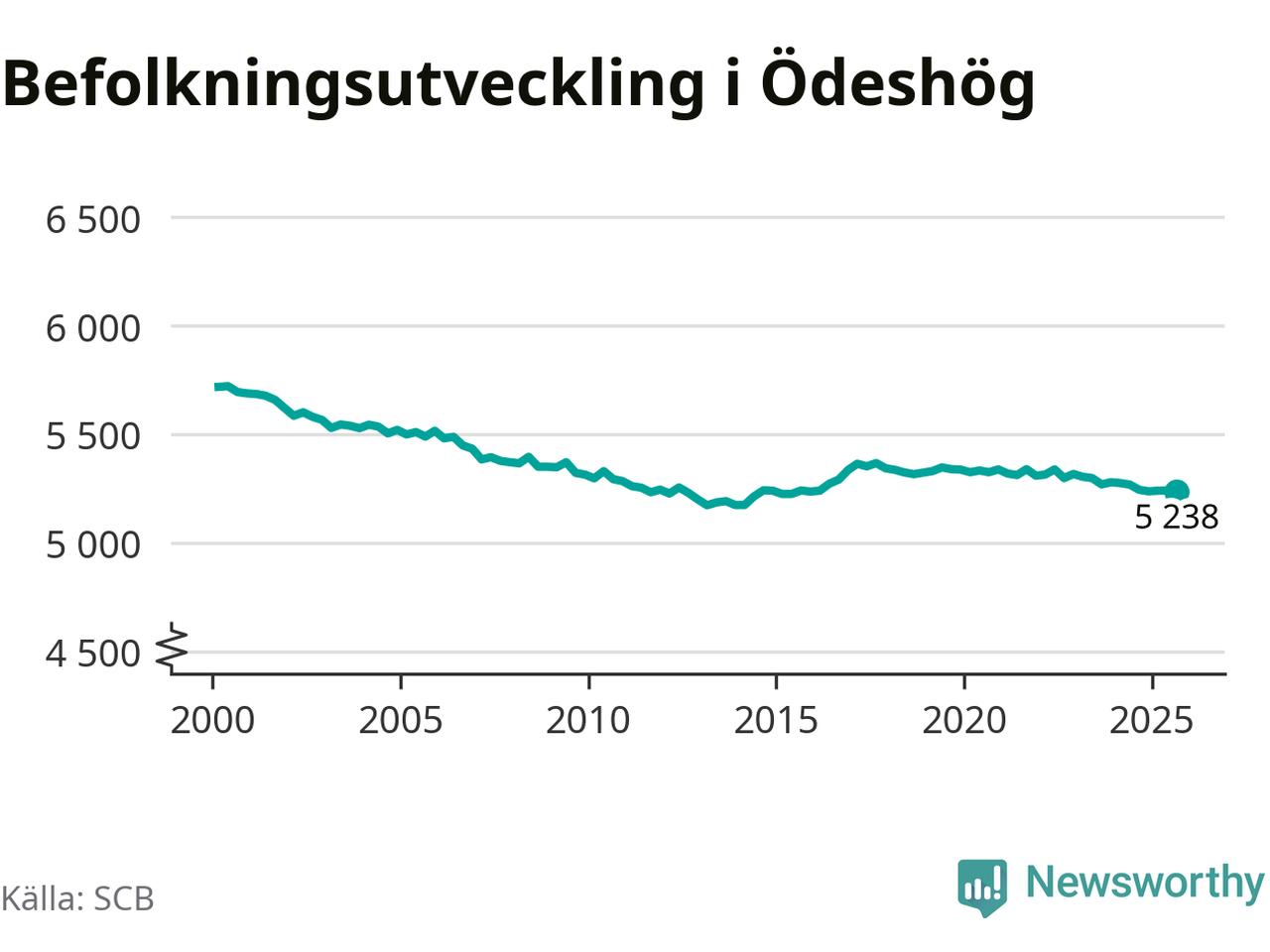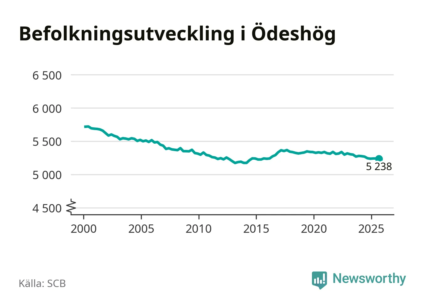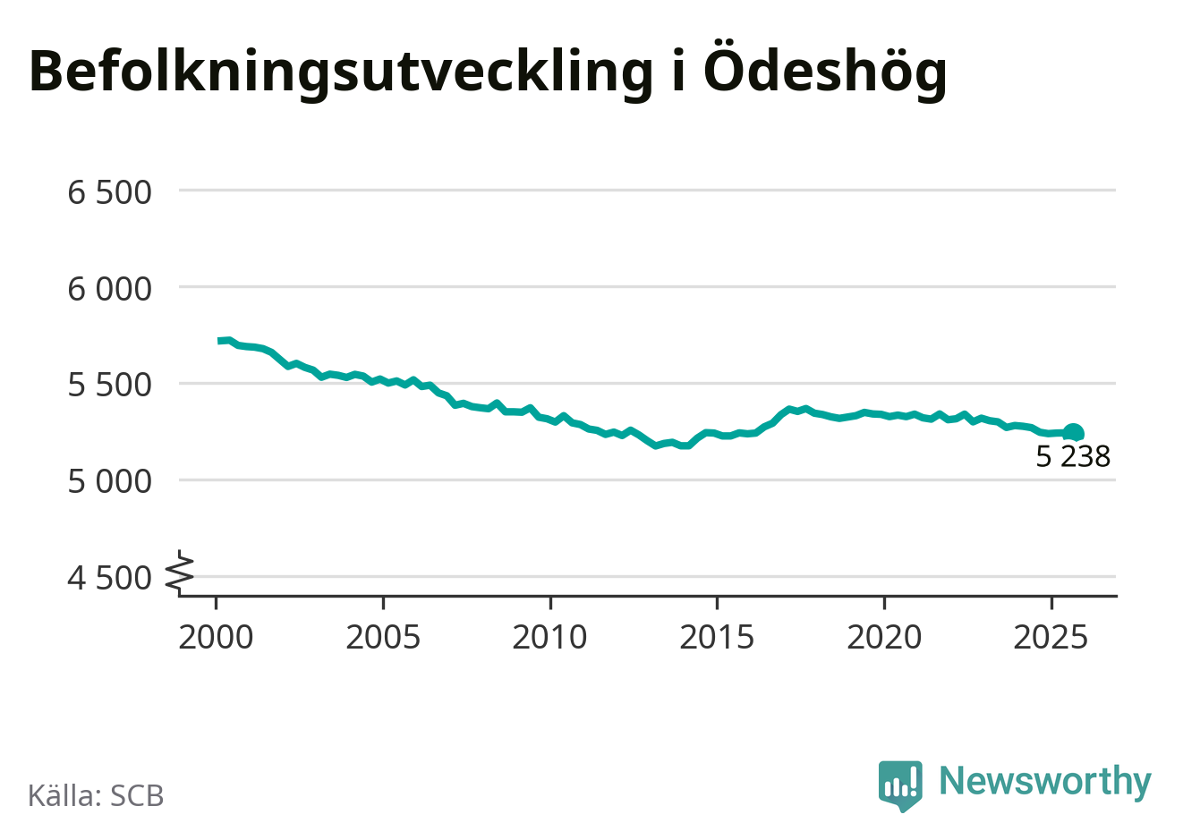 Den 30 september bodde 5 238 personer i Ödeshögs kommun, enligt SCB:s senaste siffror. Det är något färre än i slutet av andra kvartalet, men skillnaden är så liten att den lika gärna kan bero på den lilla justering som SCB gör av siffrorna för att skydda enskilda individers identitet.