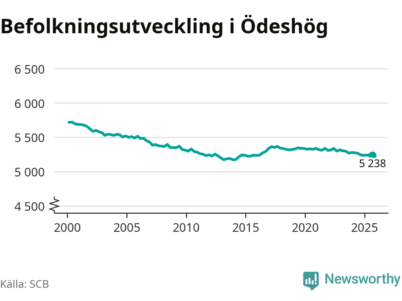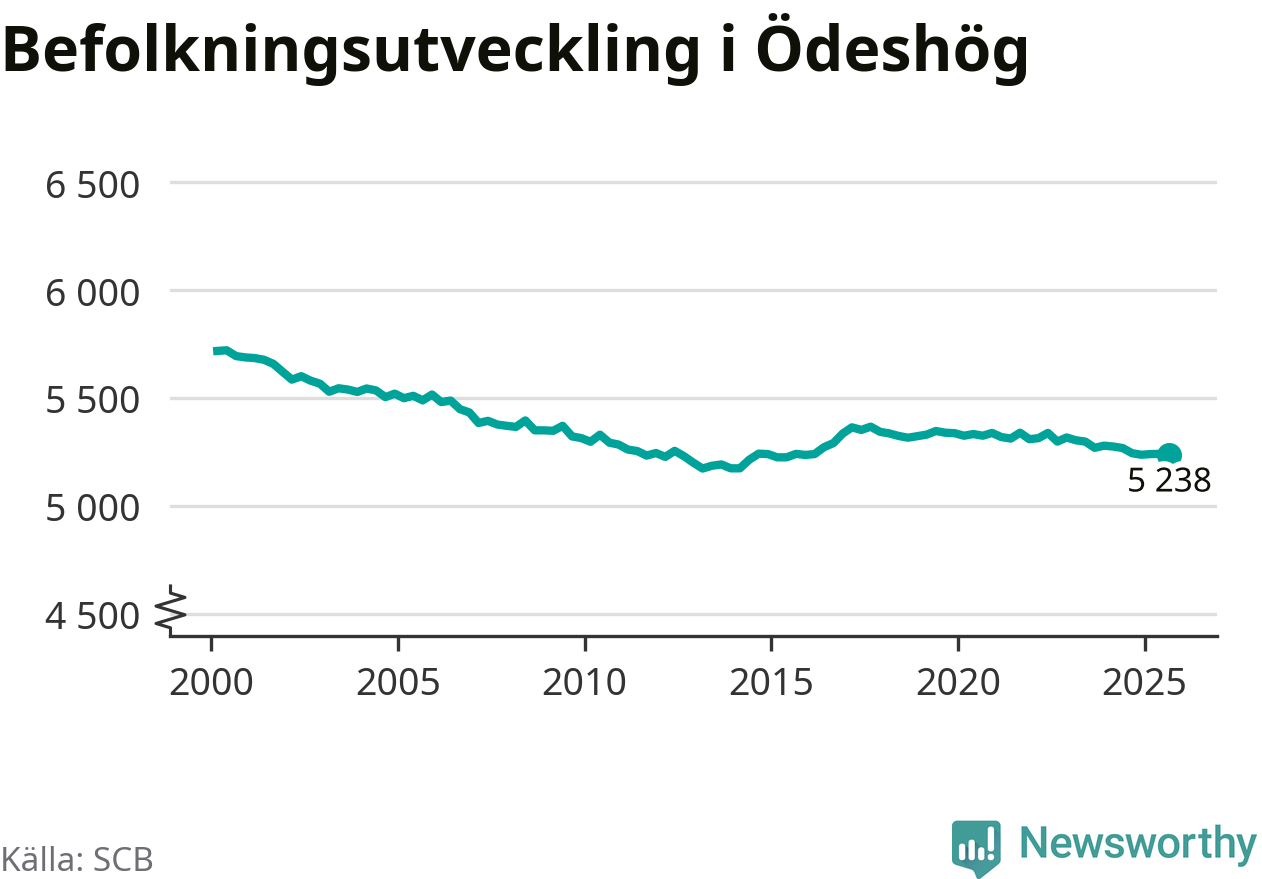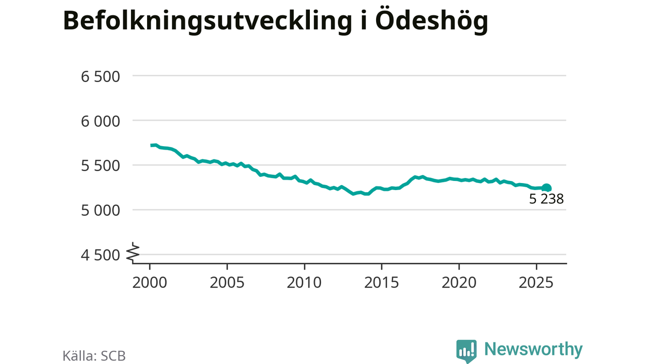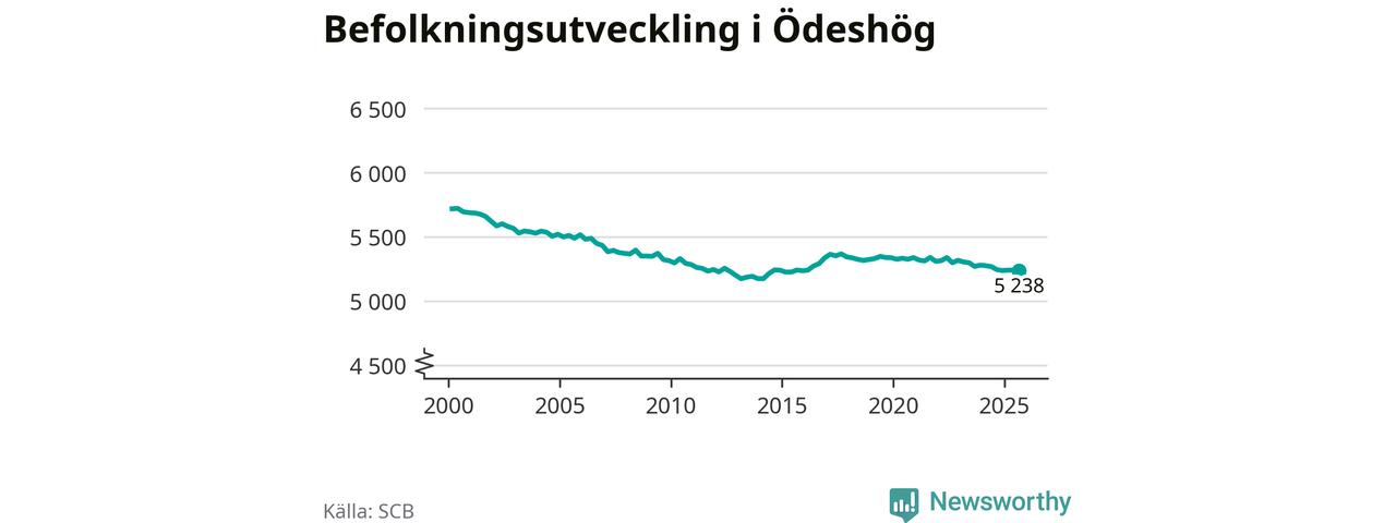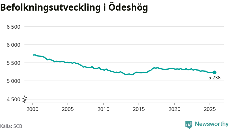 Den 30 september bodde 5 238 personer i Ödeshögs kommun, enligt SCB:s senaste siffror. Det är något färre än i slutet av andra kvartalet, men skillnaden är så liten att den lika gärna kan bero på den lilla justering som SCB gör av siffrorna för att skydda enskilda individers identitet.