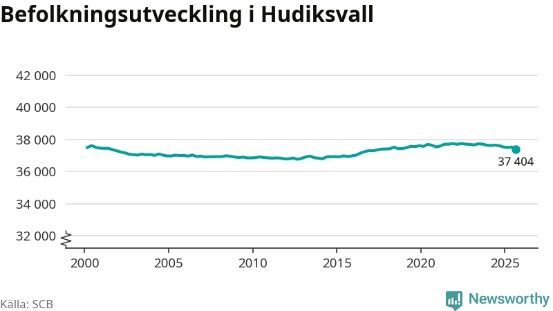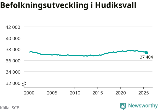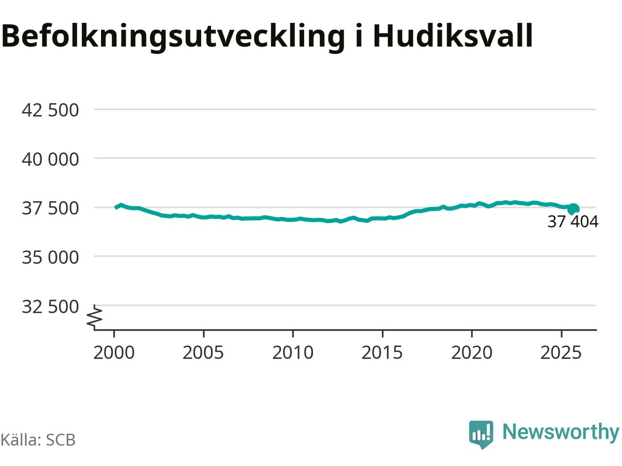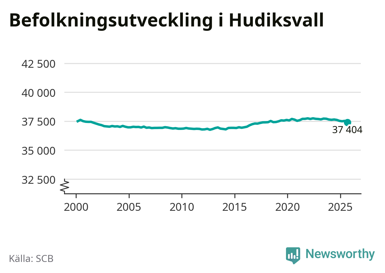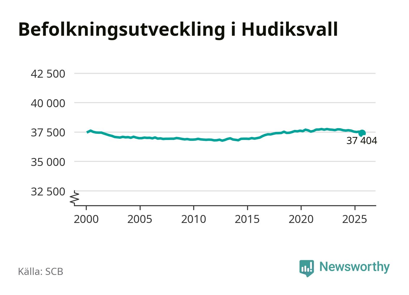 Befolkningen minskade i Hudiksvalls kommun under det tredje kvartalet 2025. Den 30 september bodde enligt SCB:s senaste siffror 37 404 personer i kommunen, vilket är 122 färre än i slutet av andra kvartalet.