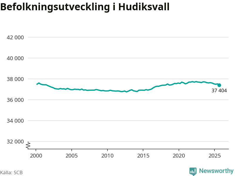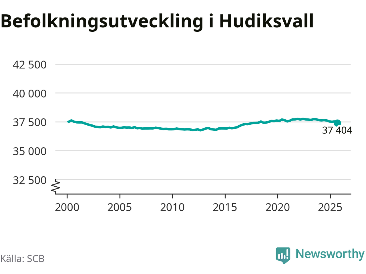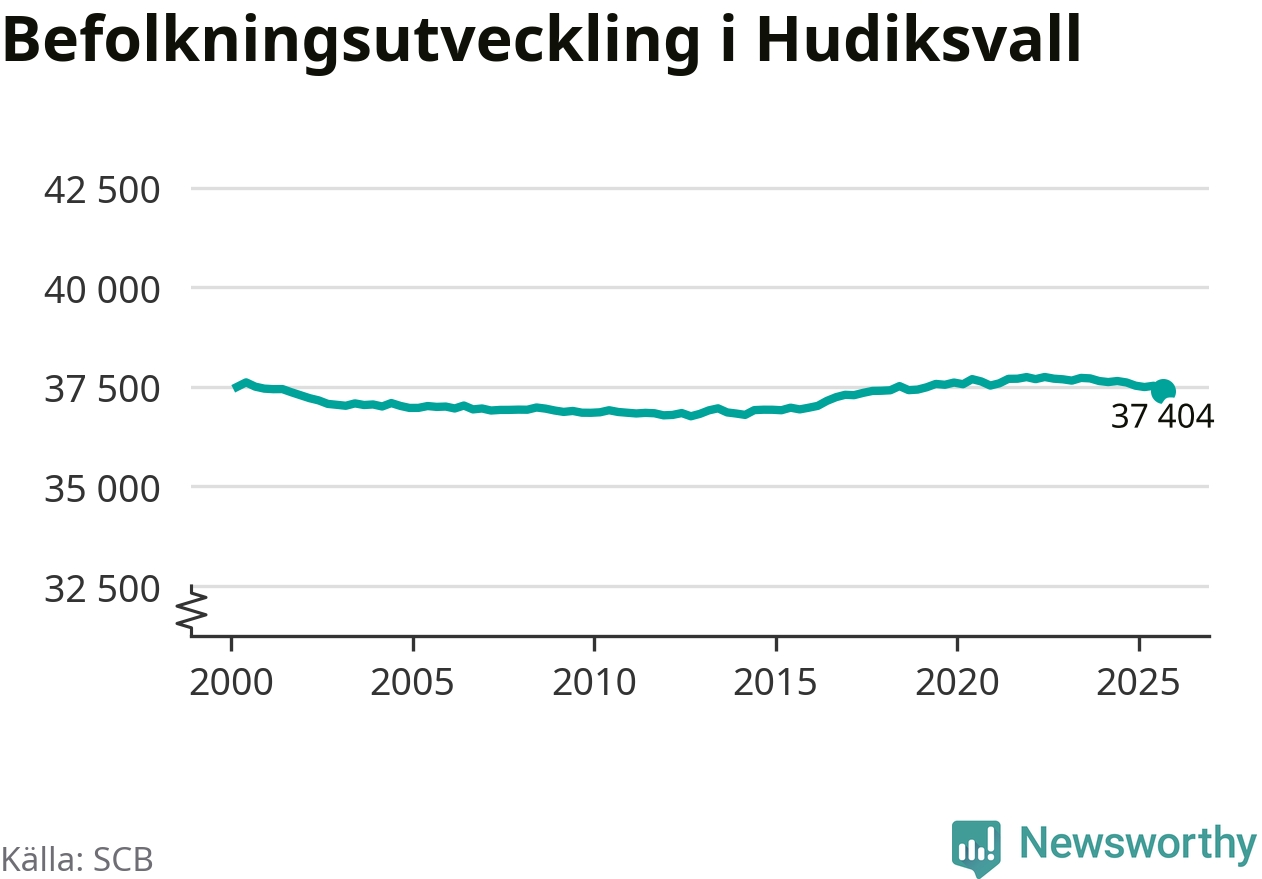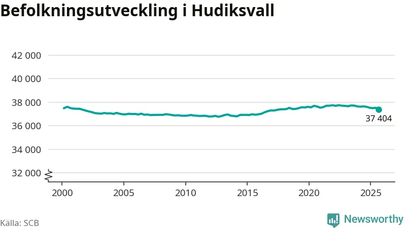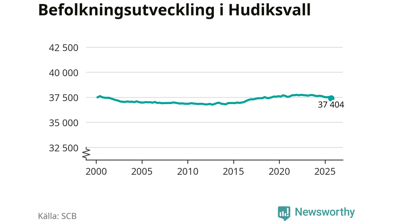 Befolkningen minskade i Hudiksvalls kommun under det tredje kvartalet 2025. Den 30 september bodde enligt SCB:s senaste siffror 37 404 personer i kommunen, vilket är 122 färre än i slutet av andra kvartalet.