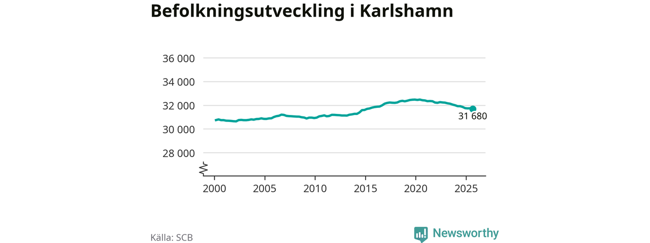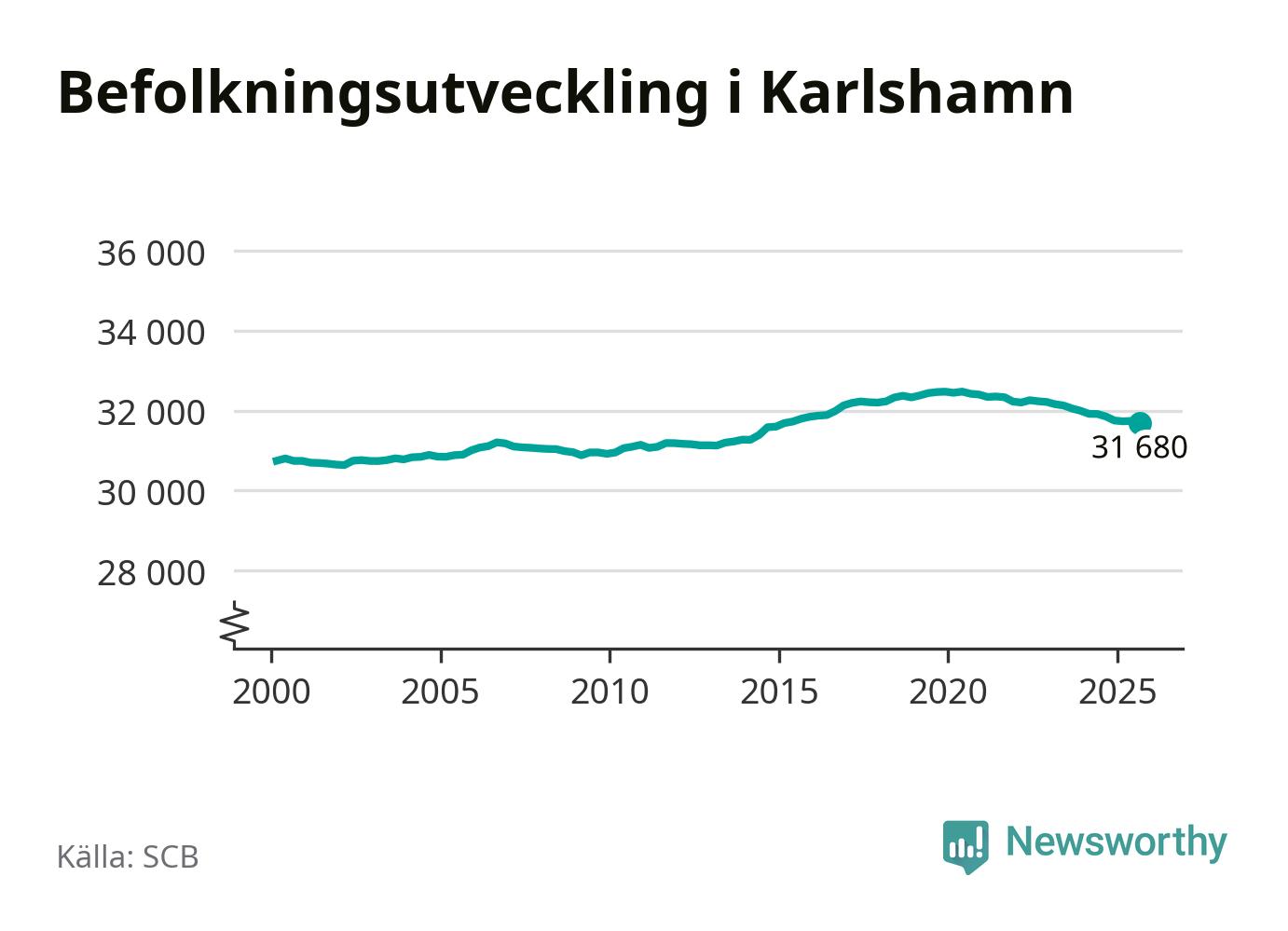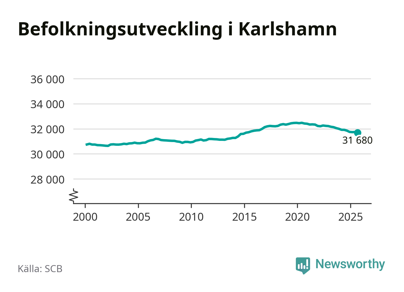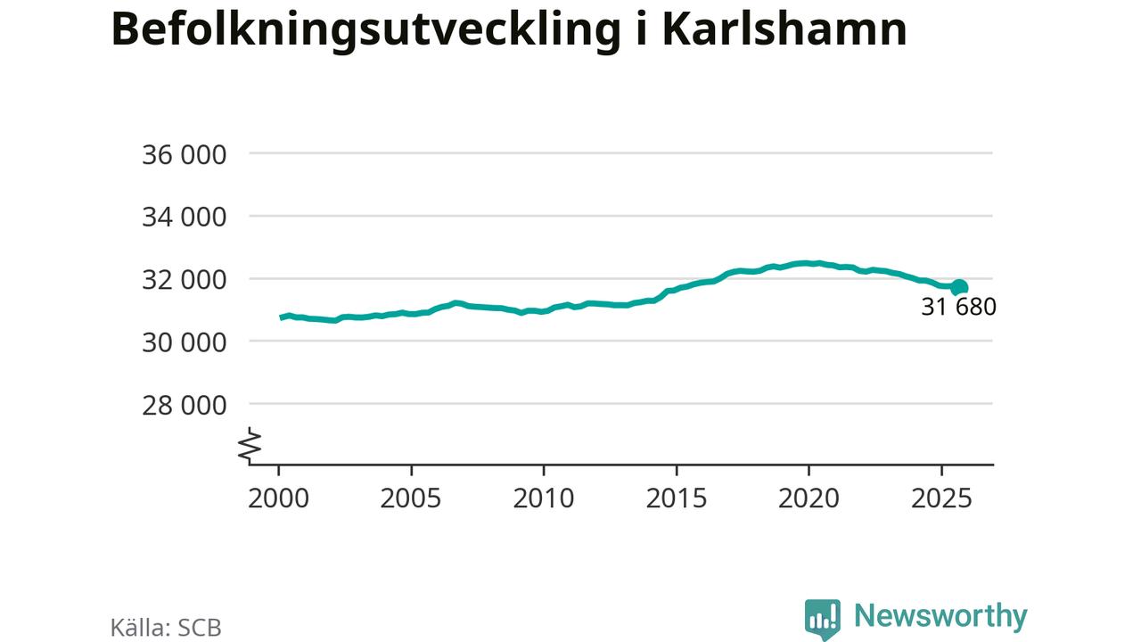Befolkningen minskade i Karlshamns kommun under det tredje kvartalet 2025. Den 30 september bodde enligt SCB:s senaste siffror 31 680 personer i kommunen, vilket är 62 färre än i slutet av andra kvartalet. Minskningen är procentuellt sett en av de största i Blekinge.