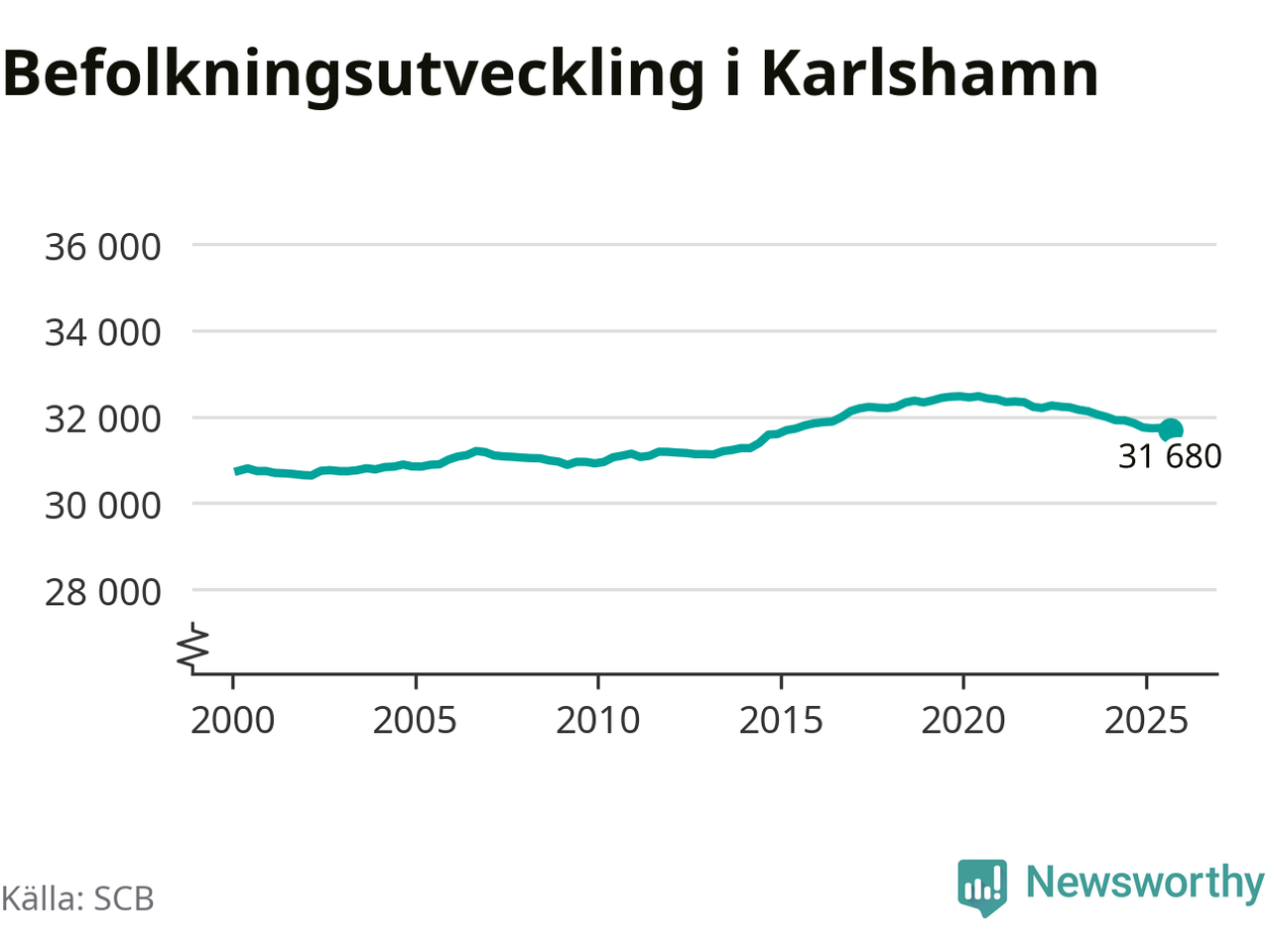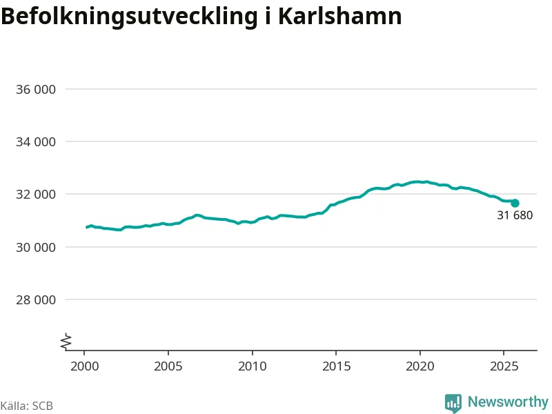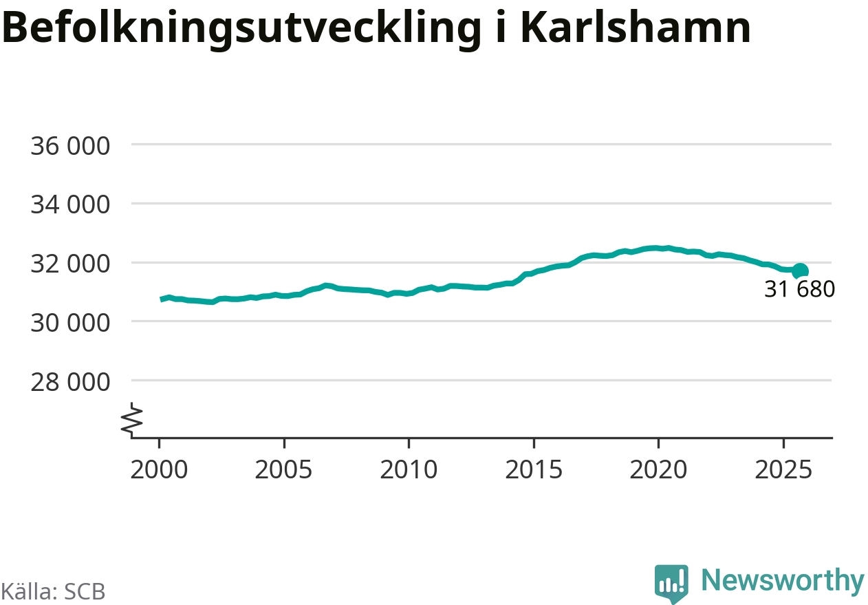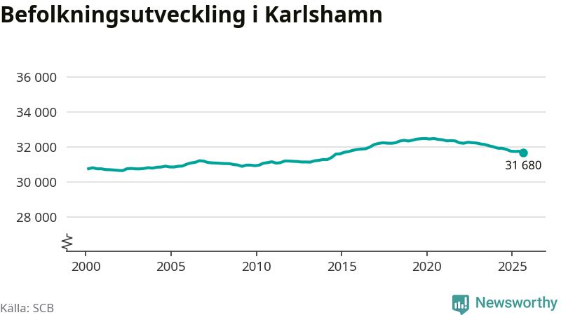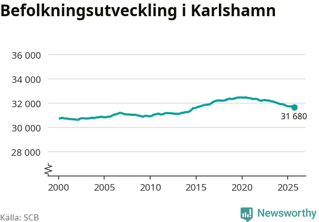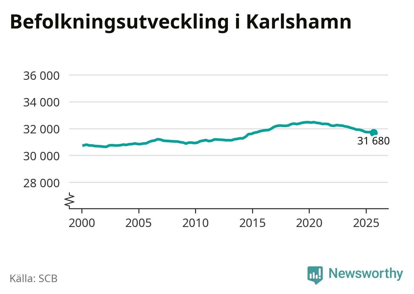 Befolkningen minskade i Karlshamns kommun under det tredje kvartalet 2025. Den 30 september bodde enligt SCB:s senaste siffror 31 680 personer i kommunen, vilket är 62 färre än i slutet av andra kvartalet. Minskningen är procentuellt sett en av de största i Blekinge.