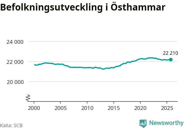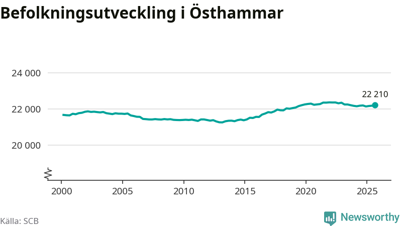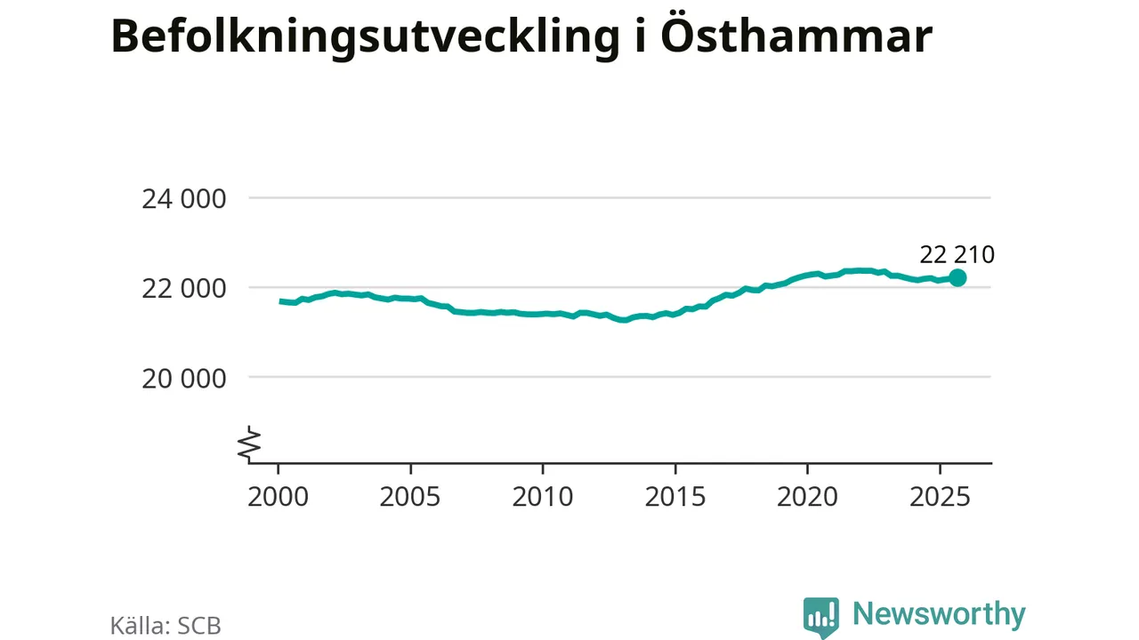 Befolkningen ökade i Östhammars kommun under det tredje kvartalet 2025. Den 30 september bodde enligt SCB:s senaste siffror 22 210 personer i kommunen, vilket är 31 fler än i slutet av andra kvartalet.