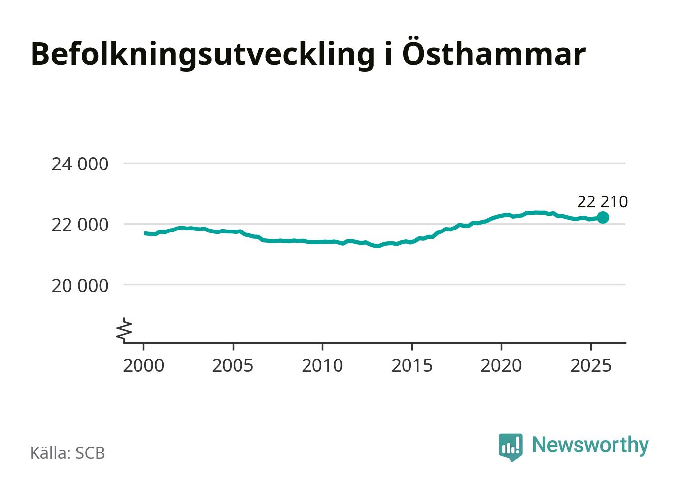 Jämfört med för ett år sedan har befolkningen i Östhammar ökat med knappt 20 personer. Sedan millennieskiftet har folkmängden ökat med 540 personer, eller 3 procent.