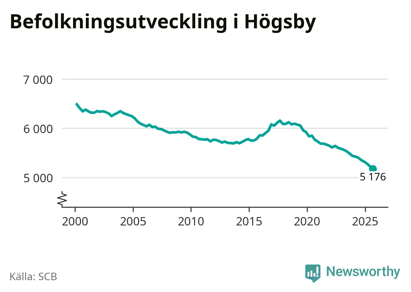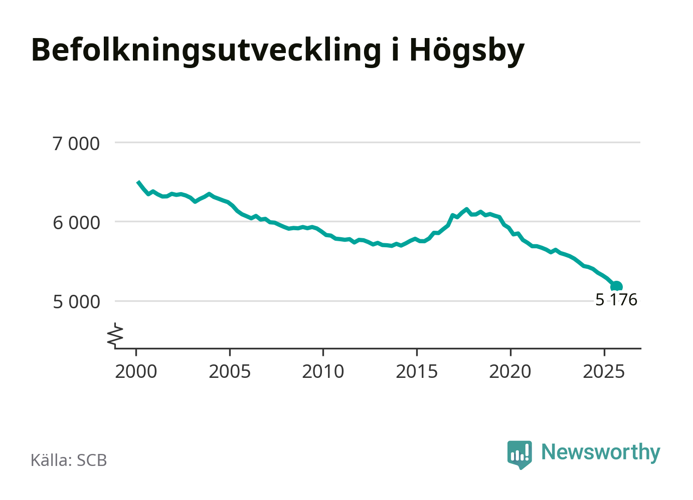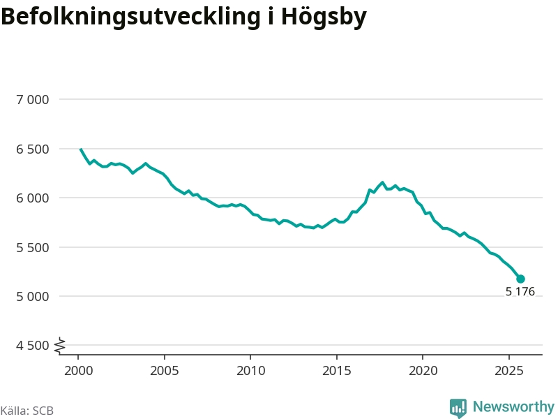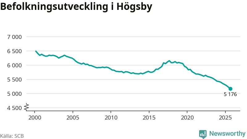 Befolkningen minskade i Högsby kommun under det tredje kvartalet 2025. Den 30 september bodde enligt SCB:s senaste siffror 5 176 personer i kommunen, vilket är 51 färre än i slutet av andra kvartalet. Det gör Högsby till en av de kommuner som minskar mest, procentuellt sett, i hela landet – och mest i Kalmar län.