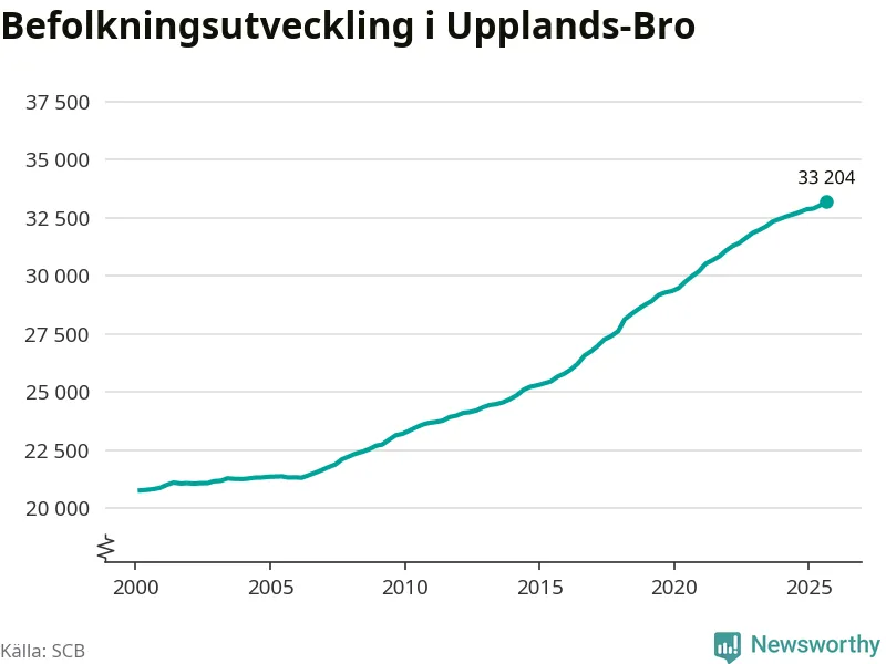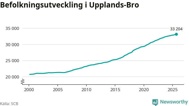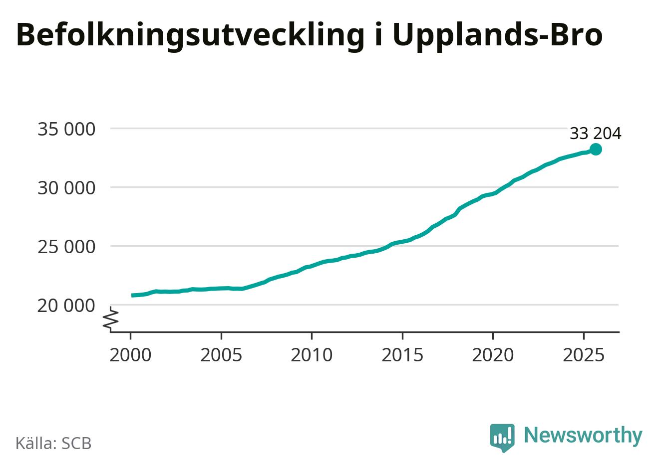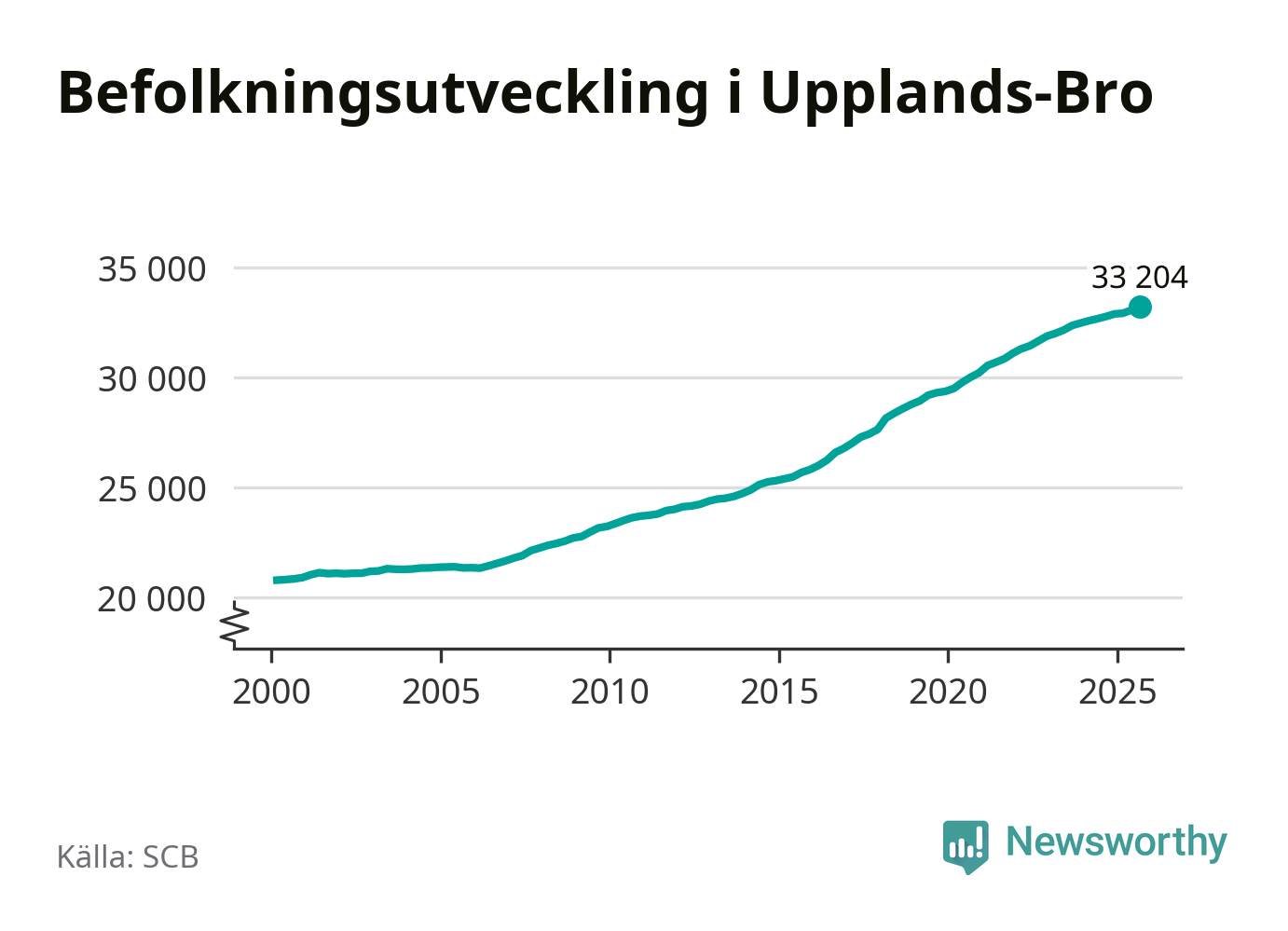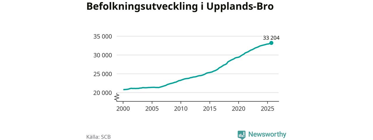 Befolkningen ökade i Upplands-Bro kommun under det tredje kvartalet 2025. Den 30 september bodde enligt SCB:s senaste siffror 33 204 personer i kommunen, vilket är 165 fler än i slutet av andra kvartalet. Folkökningen är procentuellt sett en av de största i Stockholms län.