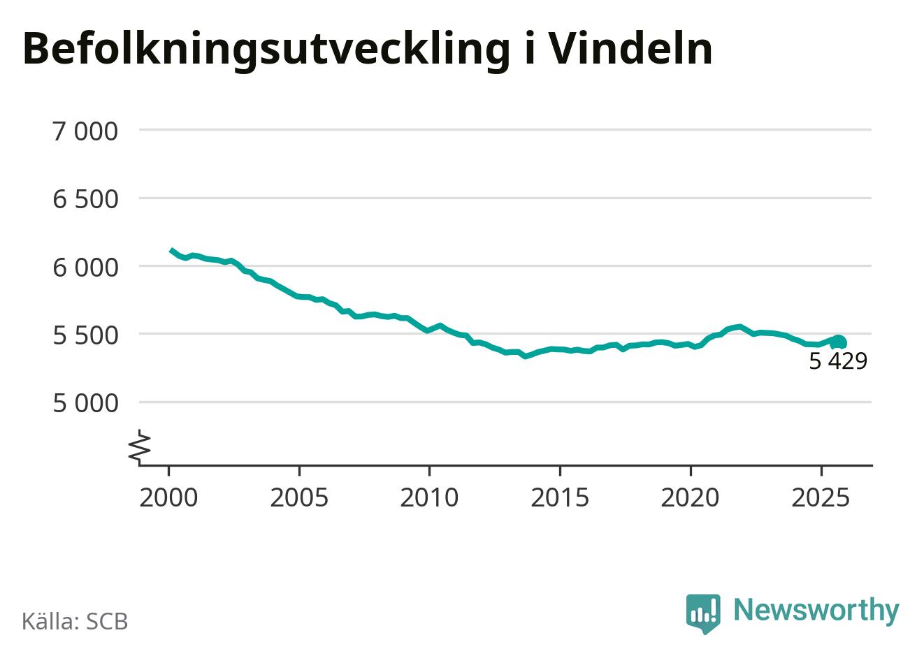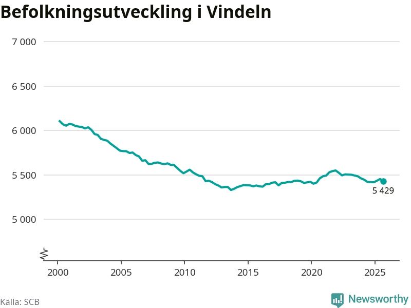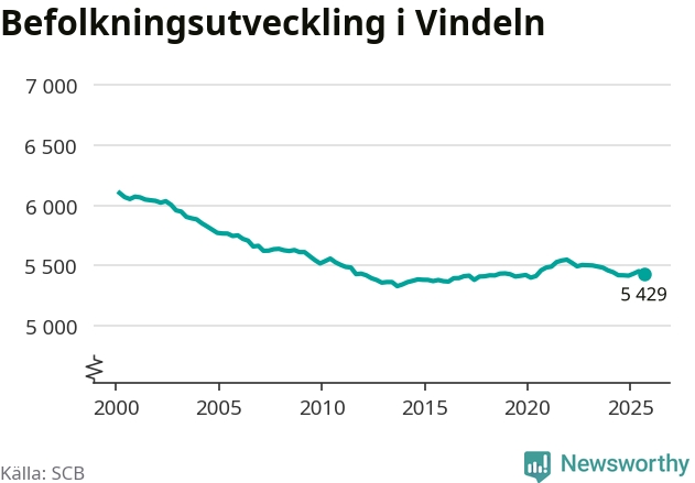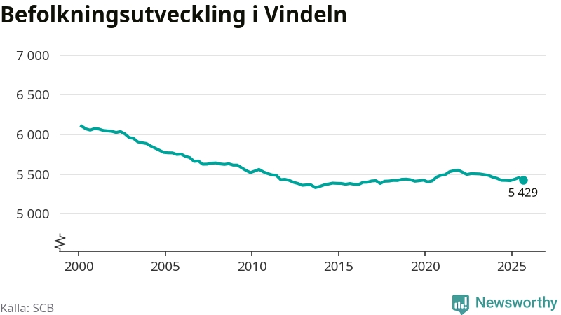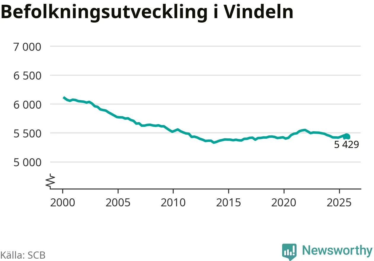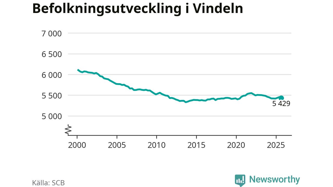 Befolkningen minskade i Vindelns kommun under det tredje kvartalet 2025. Den 30 september bodde enligt SCB:s senaste siffror 5 429 personer i kommunen, vilket är 25 färre än i slutet av andra kvartalet.