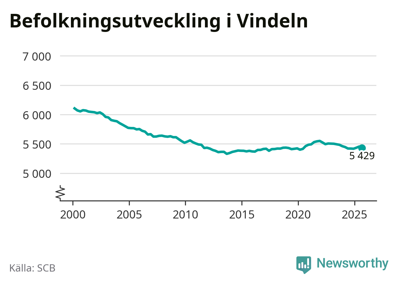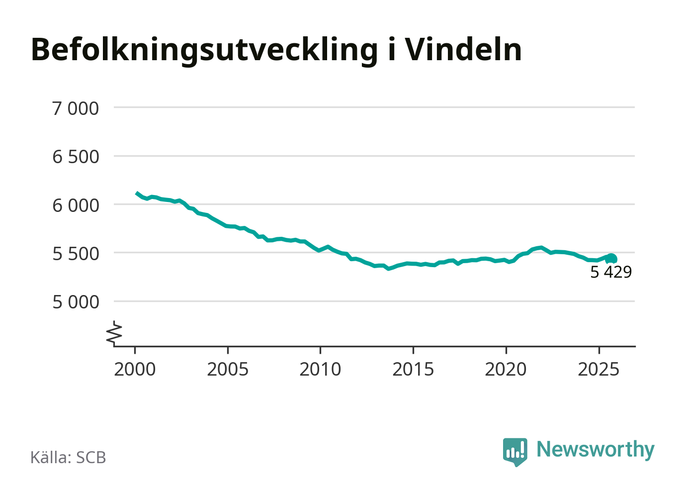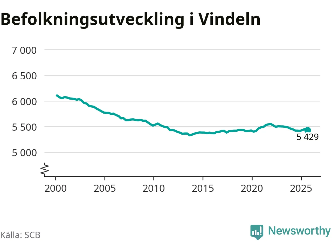 Befolkningen minskade i Vindelns kommun under det tredje kvartalet 2025. Den 30 september bodde enligt SCB:s senaste siffror 5 429 personer i kommunen, vilket är 25 färre än i slutet av andra kvartalet.