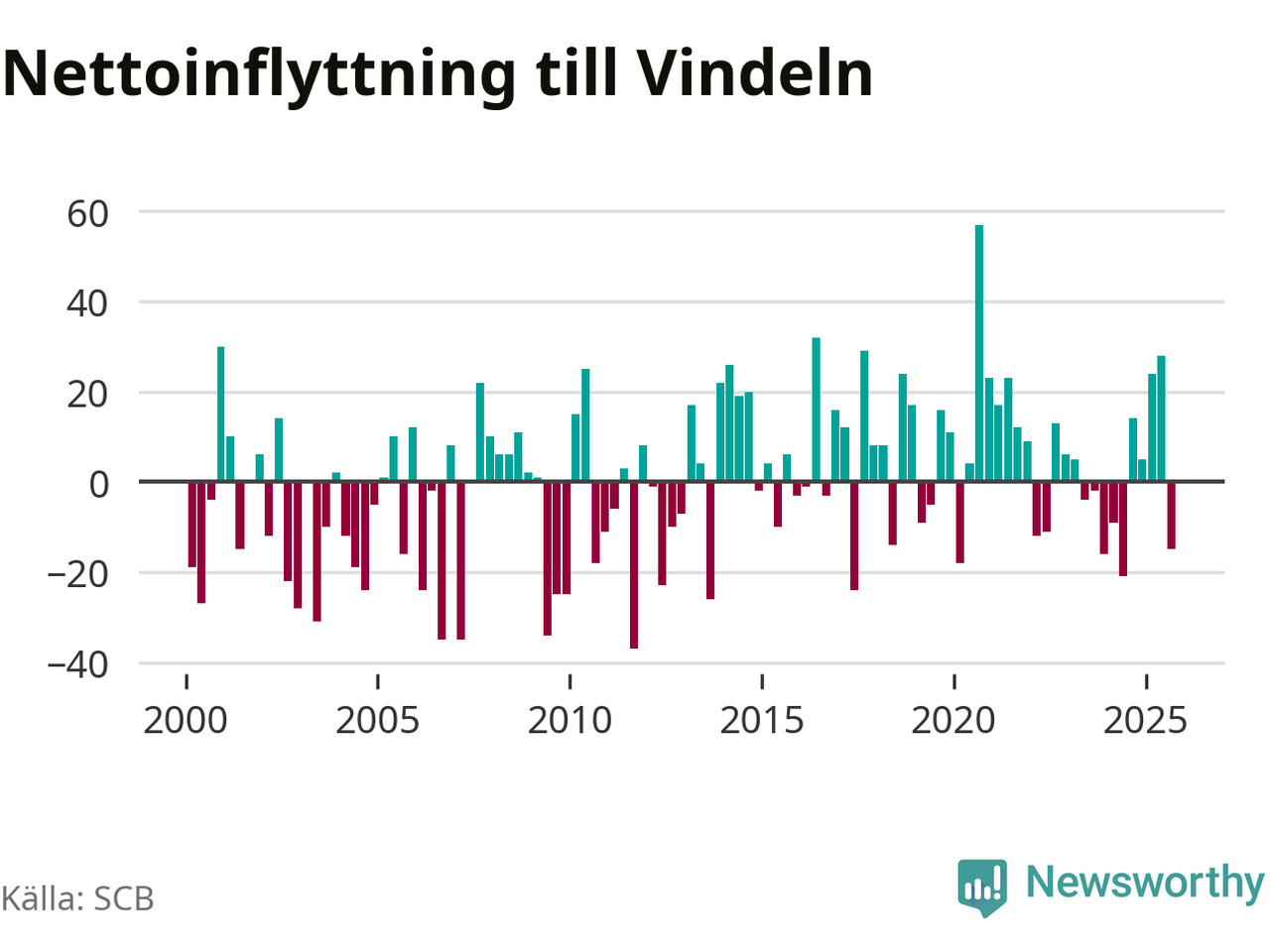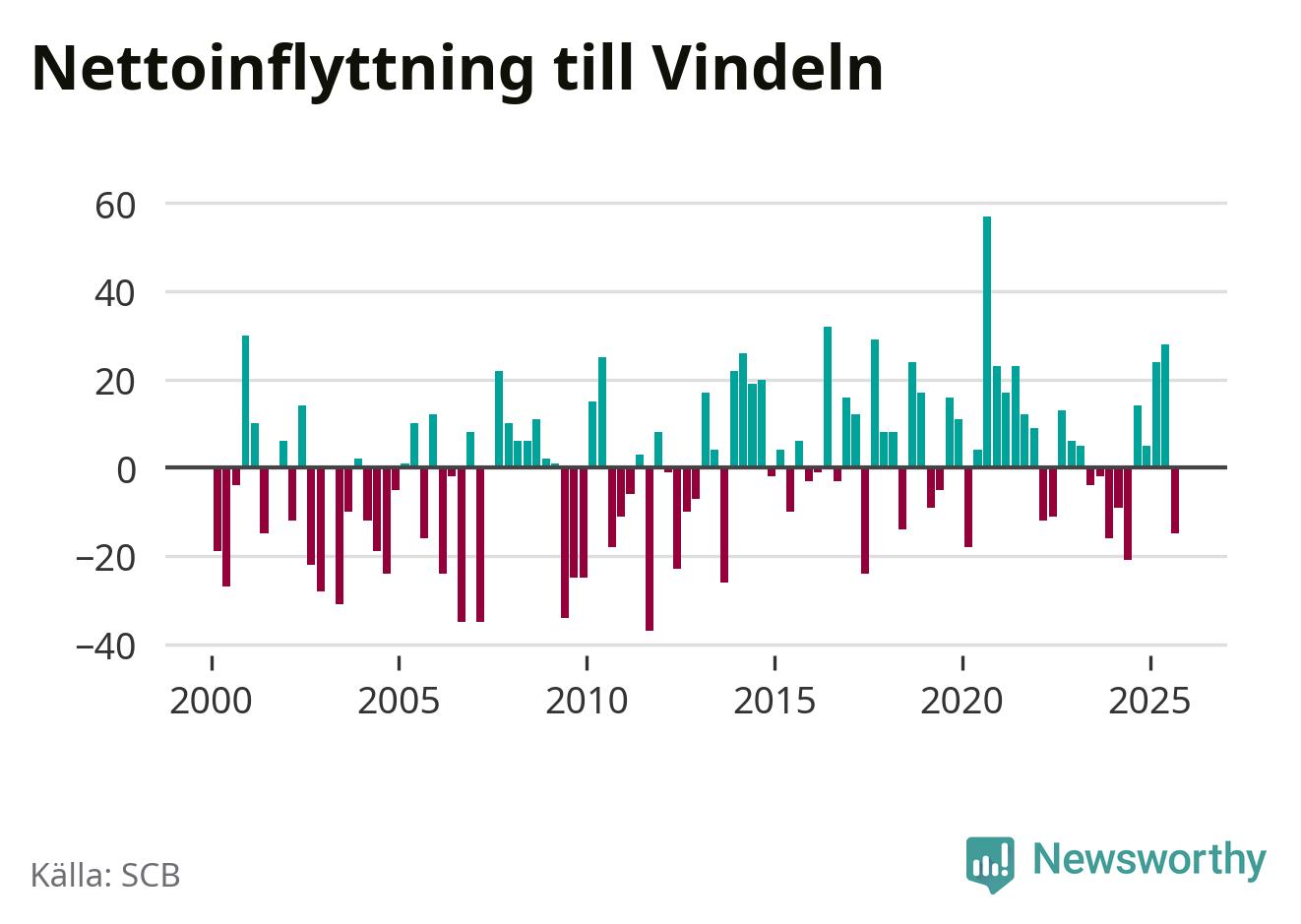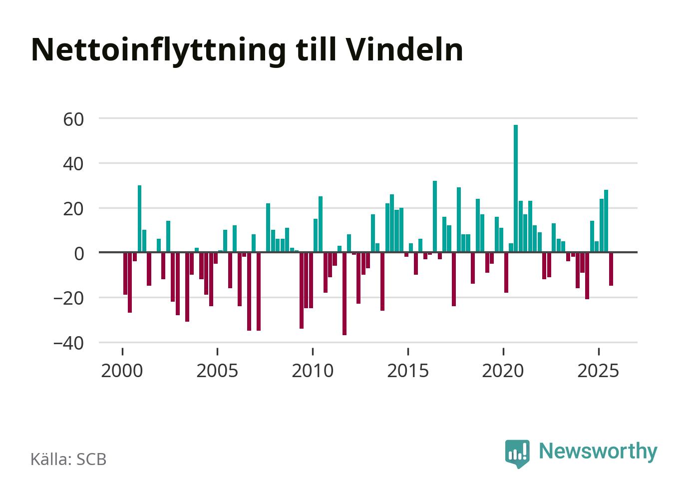 Under tredje kvartalet 2025 flyttade 82 personer till kommunen medan 97 personer flyttade därifrån. Det är historiskt sett en stor utflyttning under ett kvartal. Sedan seklets början har Vindeln oftast haft ett positivt flyttnetto.