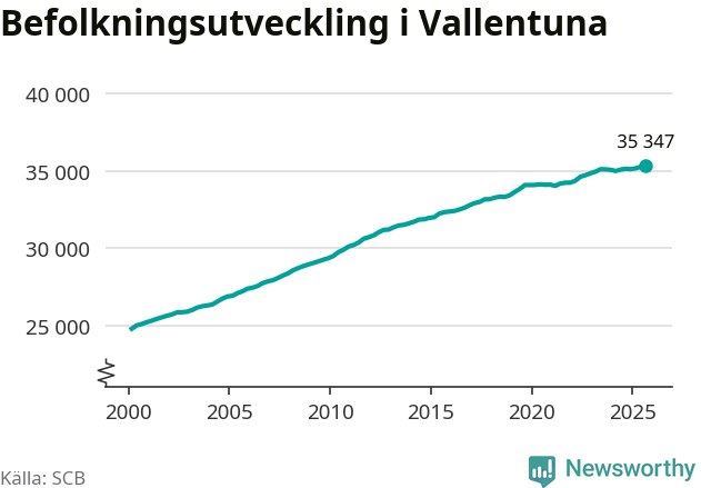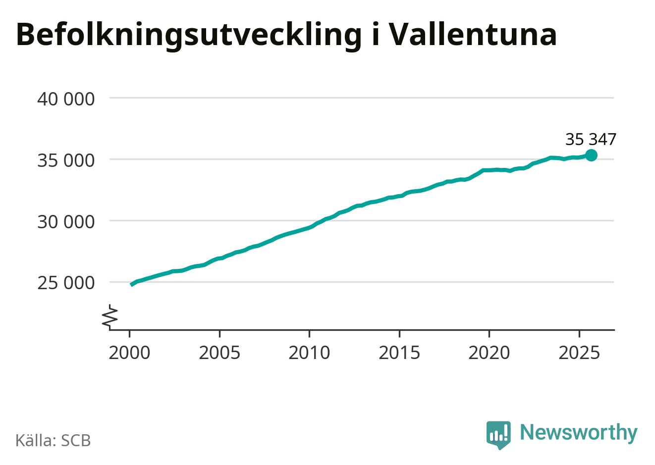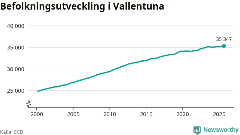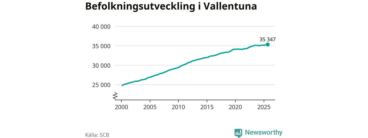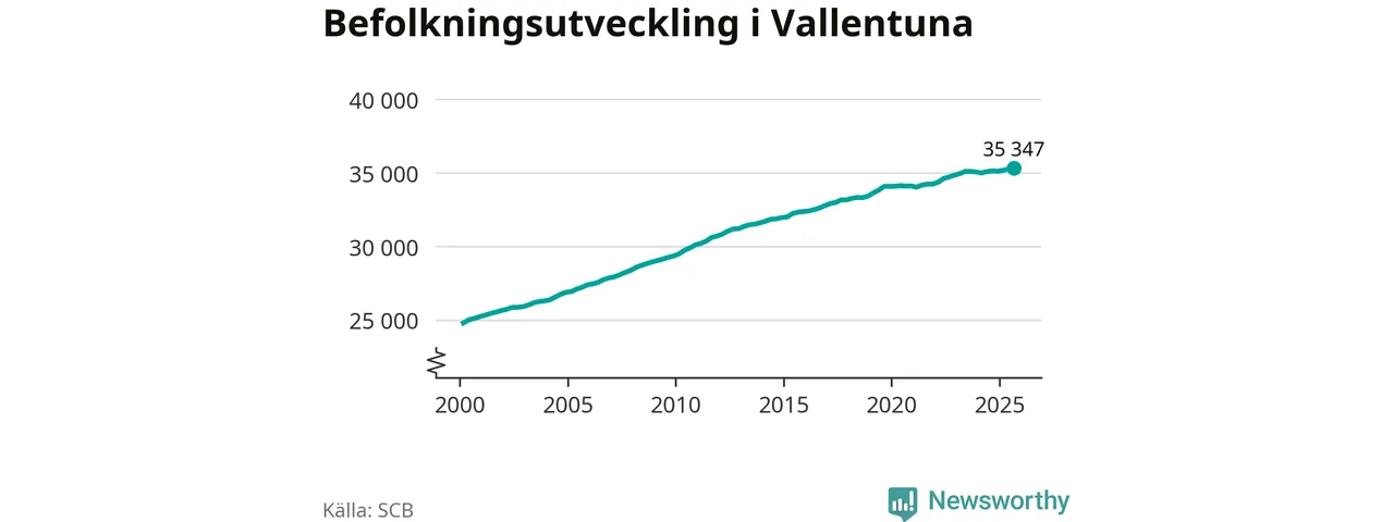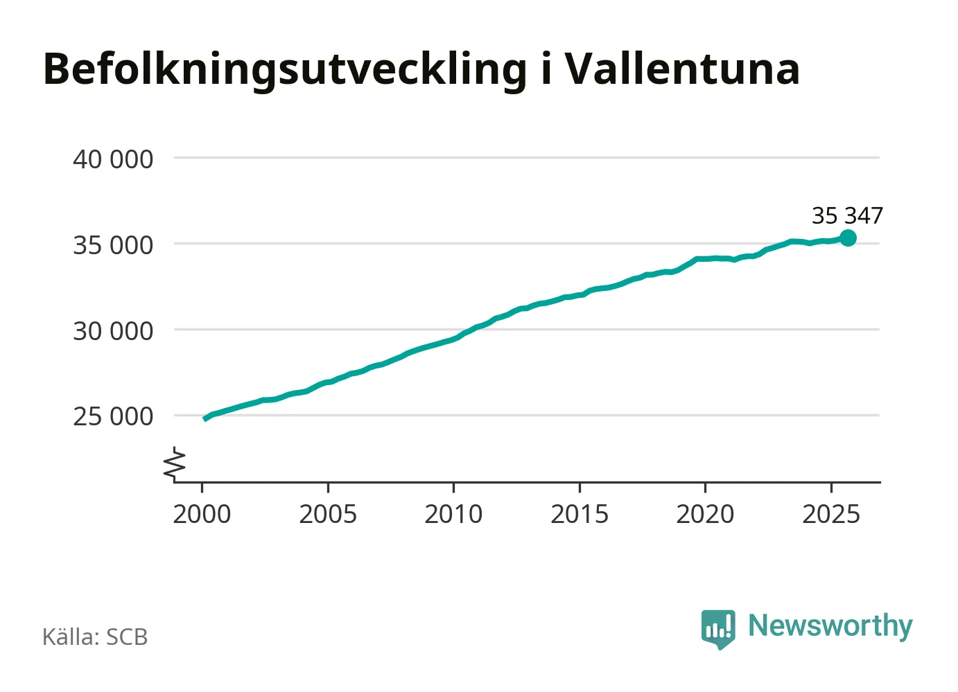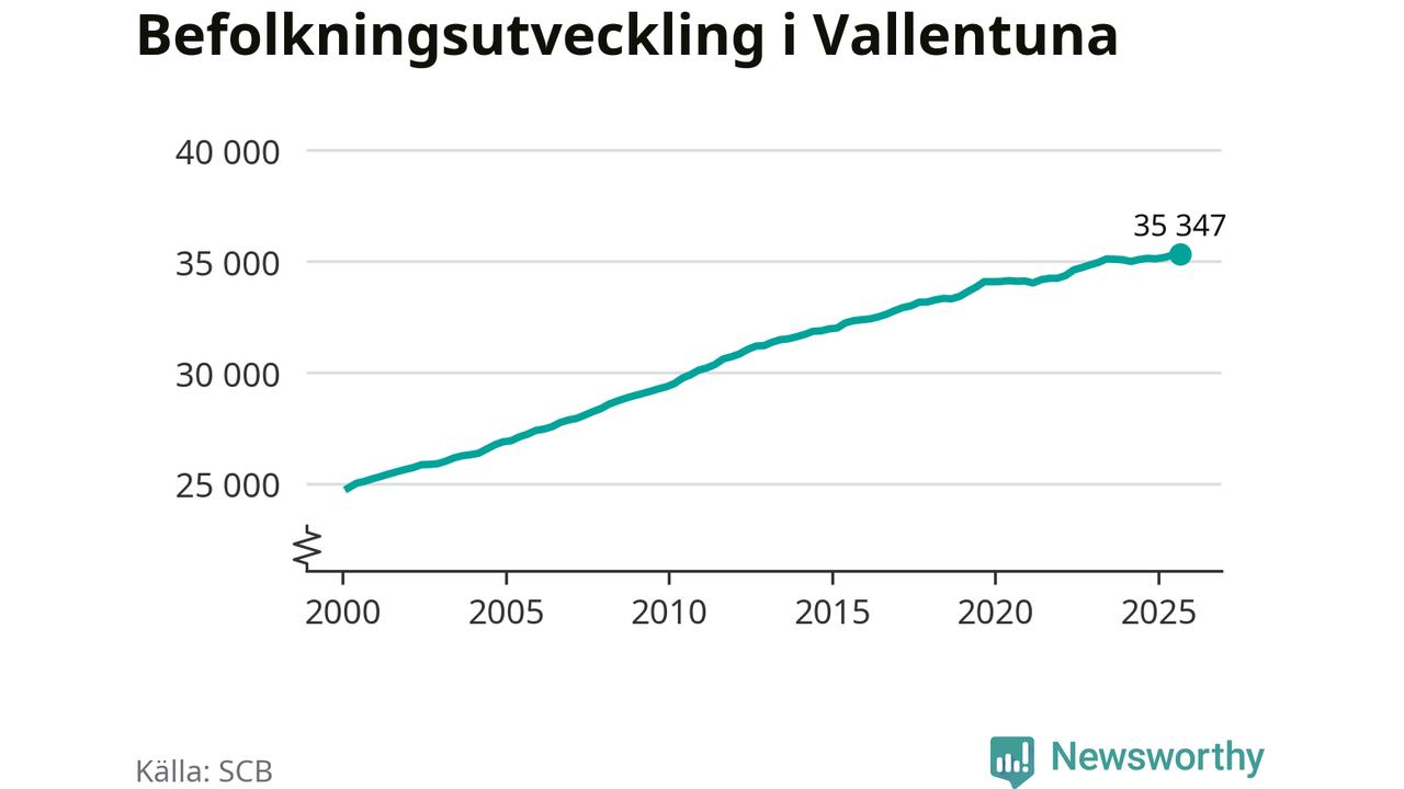 Befolkningen ökade i Vallentuna kommun under det tredje kvartalet 2025. Den 30 september bodde enligt SCB:s senaste siffror 35 347 personer i kommunen, vilket är 75 fler än i slutet av andra kvartalet.