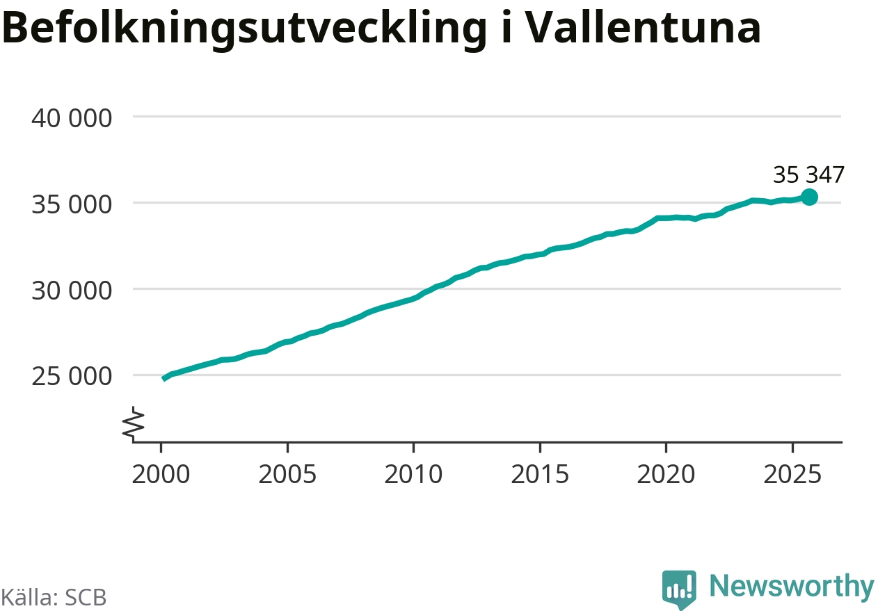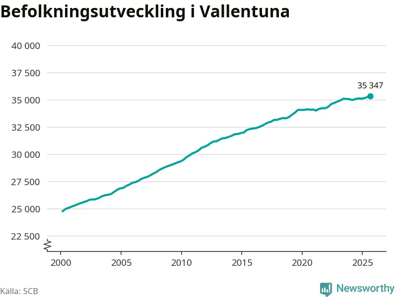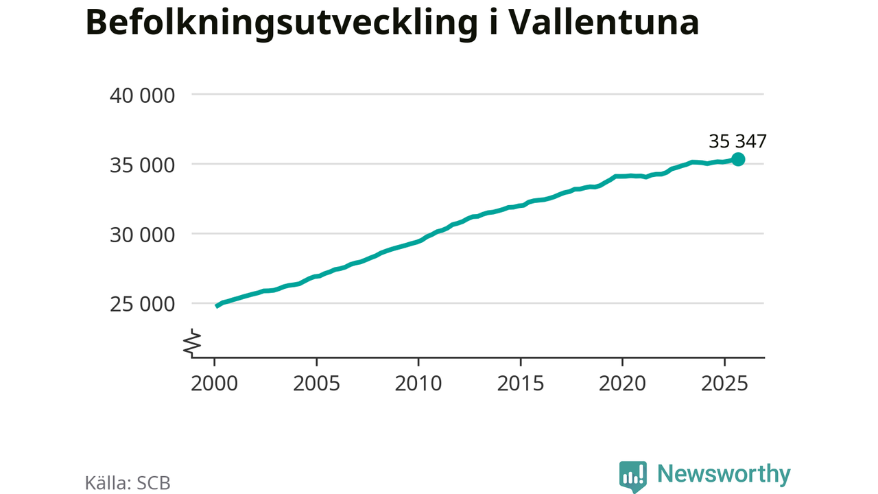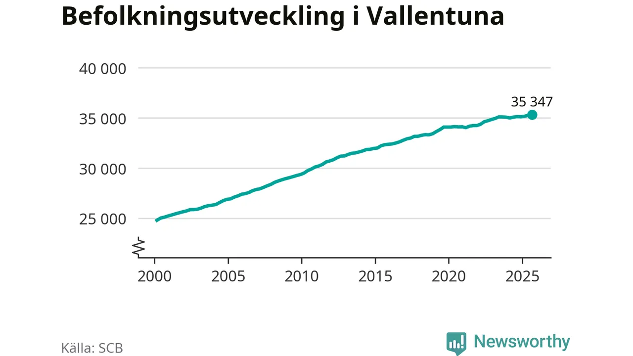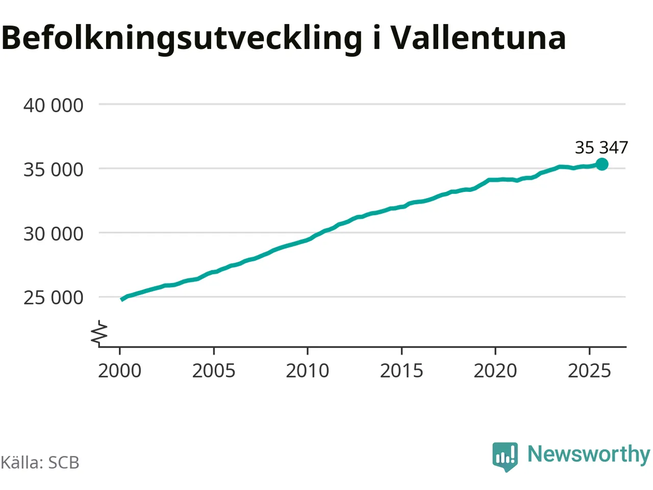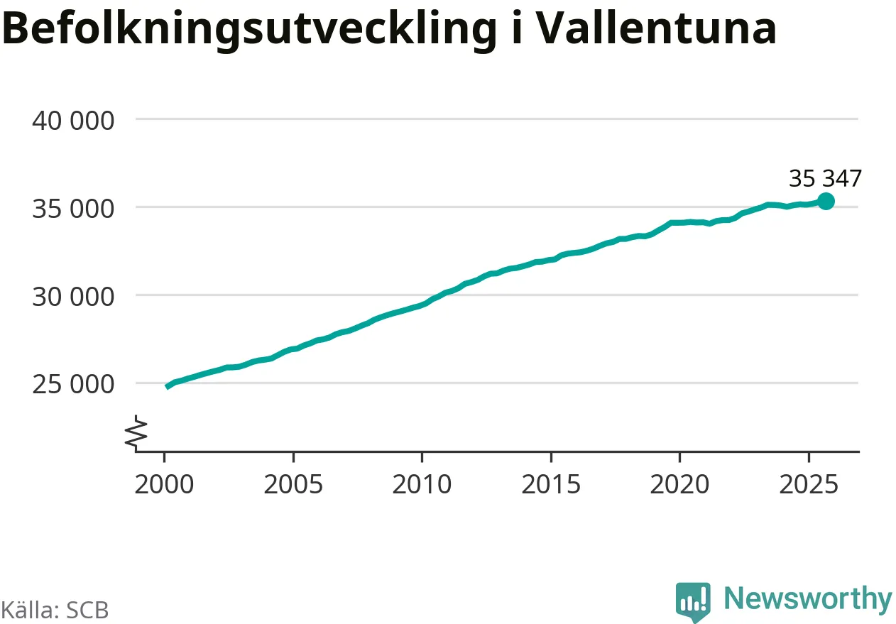 Befolkningen ökade i Vallentuna kommun under det tredje kvartalet 2025. Den 30 september bodde enligt SCB:s senaste siffror 35 347 personer i kommunen, vilket är 75 fler än i slutet av andra kvartalet.