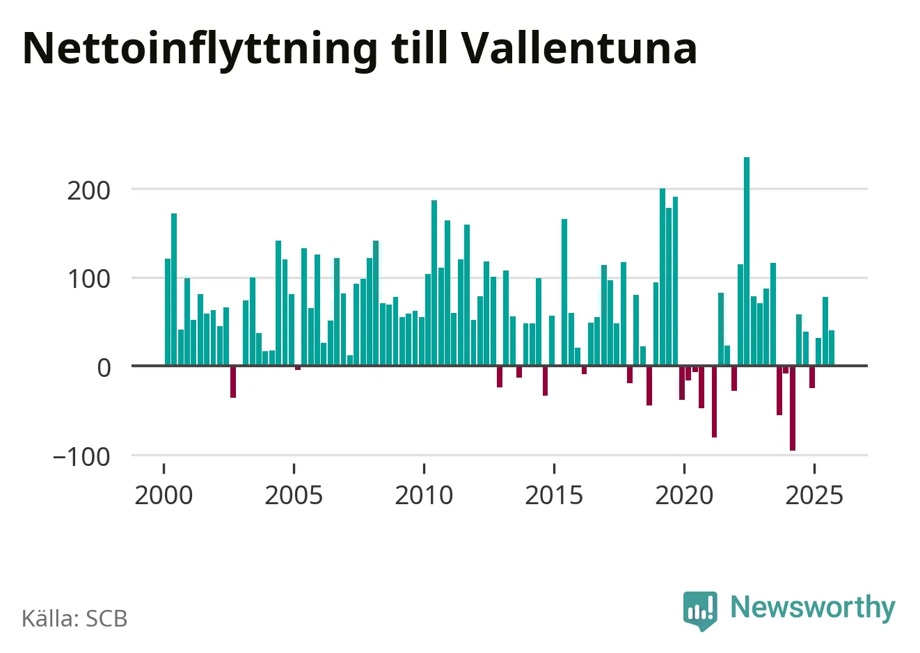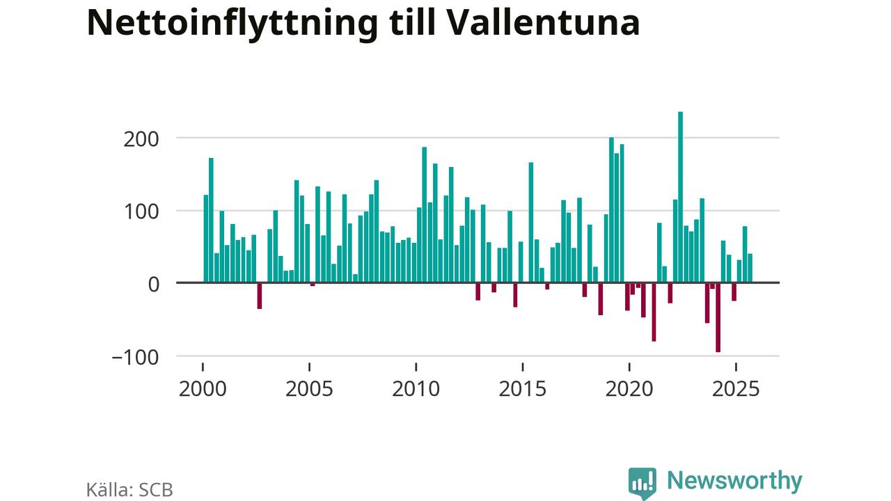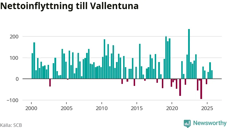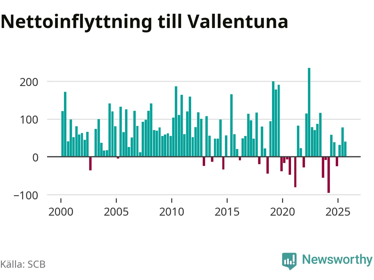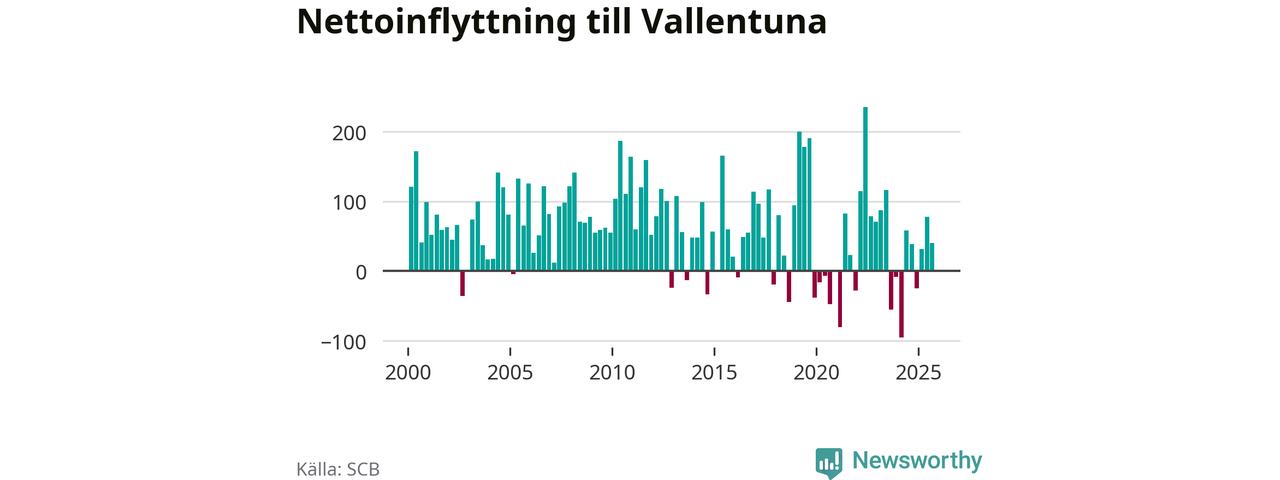 Under tredje kvartalet 2025 flyttade 681 personer till kommunen medan 641 personer flyttade därifrån. Det är historiskt sett en stor inflyttning under ett kvartal – men samtidigt var utflyttningen relativt stor. Sedan seklets början har Vallentuna oftast haft ett positivt flyttnetto, inklusive det senaste kvartalet.