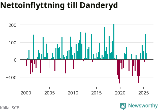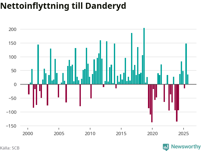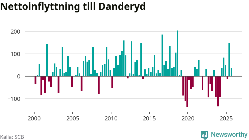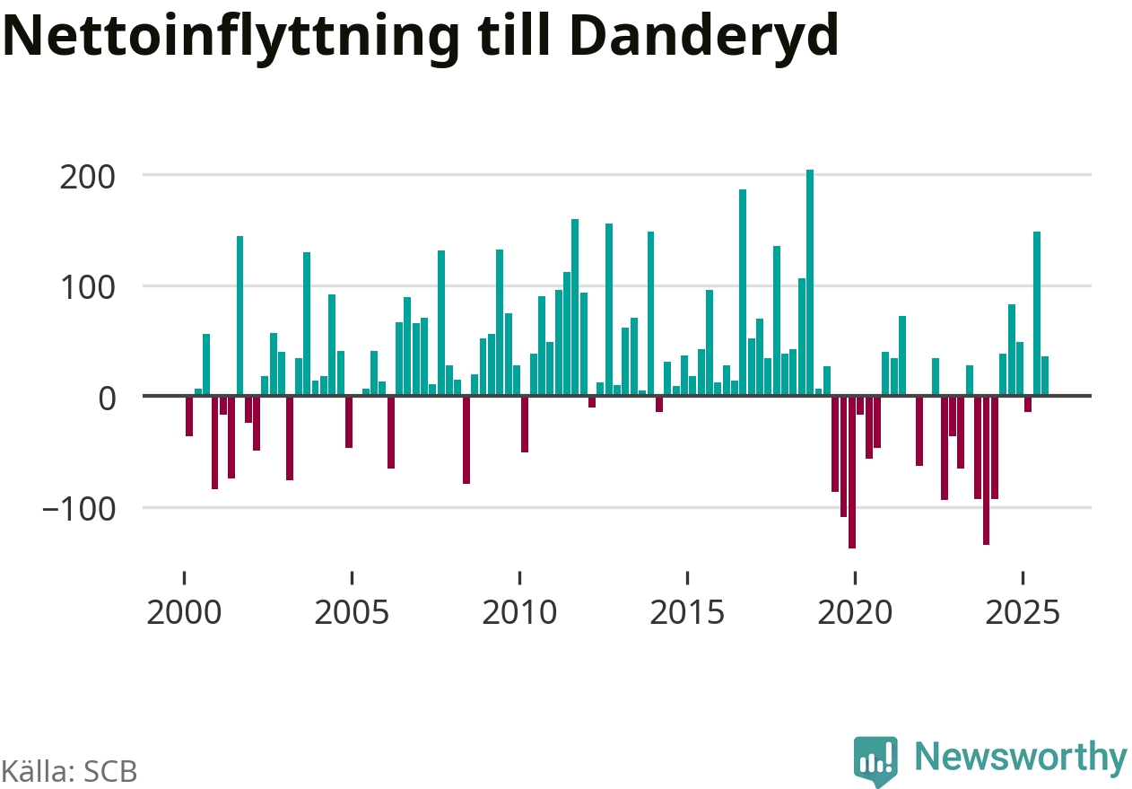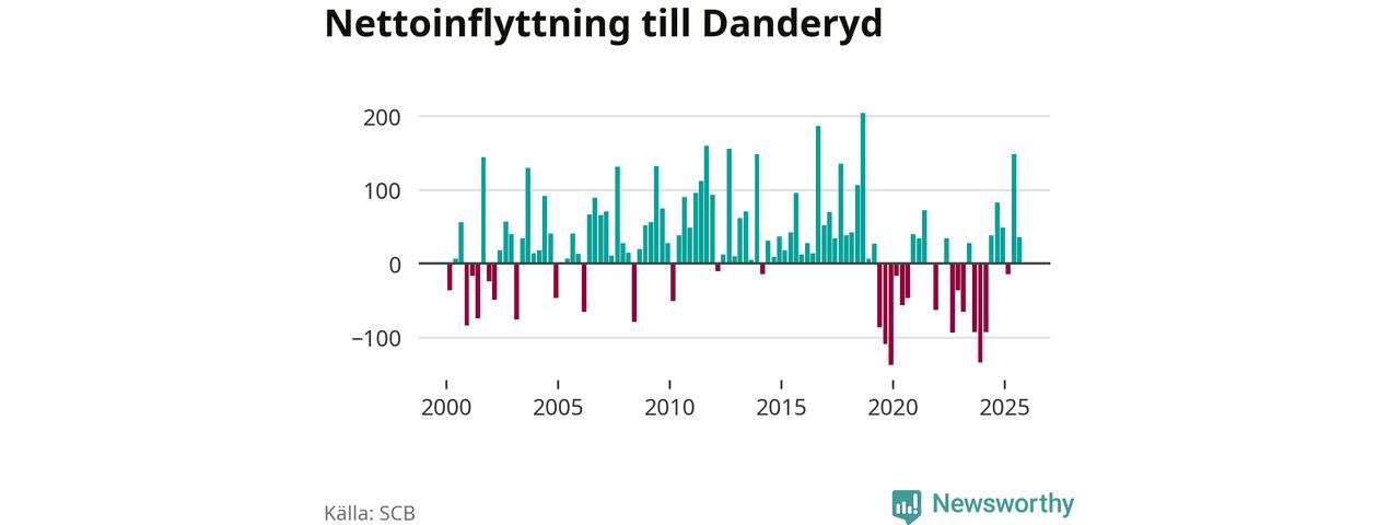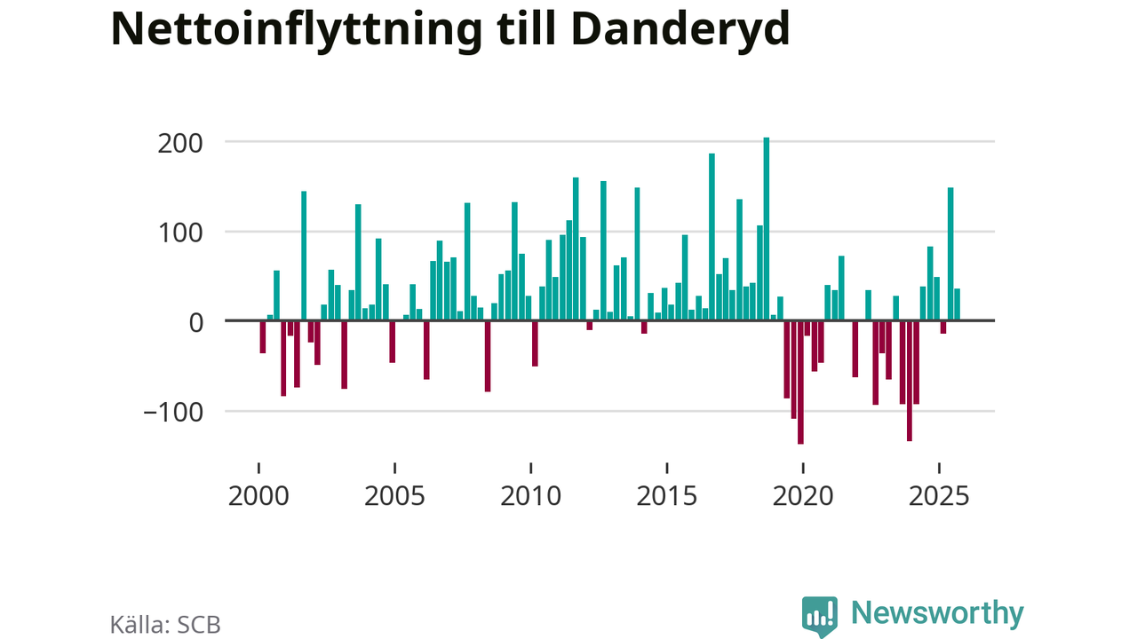 Under tredje kvartalet 2025 flyttade 954 personer till kommunen medan 918 personer flyttade därifrån. Det är historiskt sett en stor inflyttning under ett kvartal – men samtidigt var utflyttningen relativt stor. Sedan seklets början har Danderyd oftast haft ett positivt flyttnetto, inklusive det senaste kvartalet.