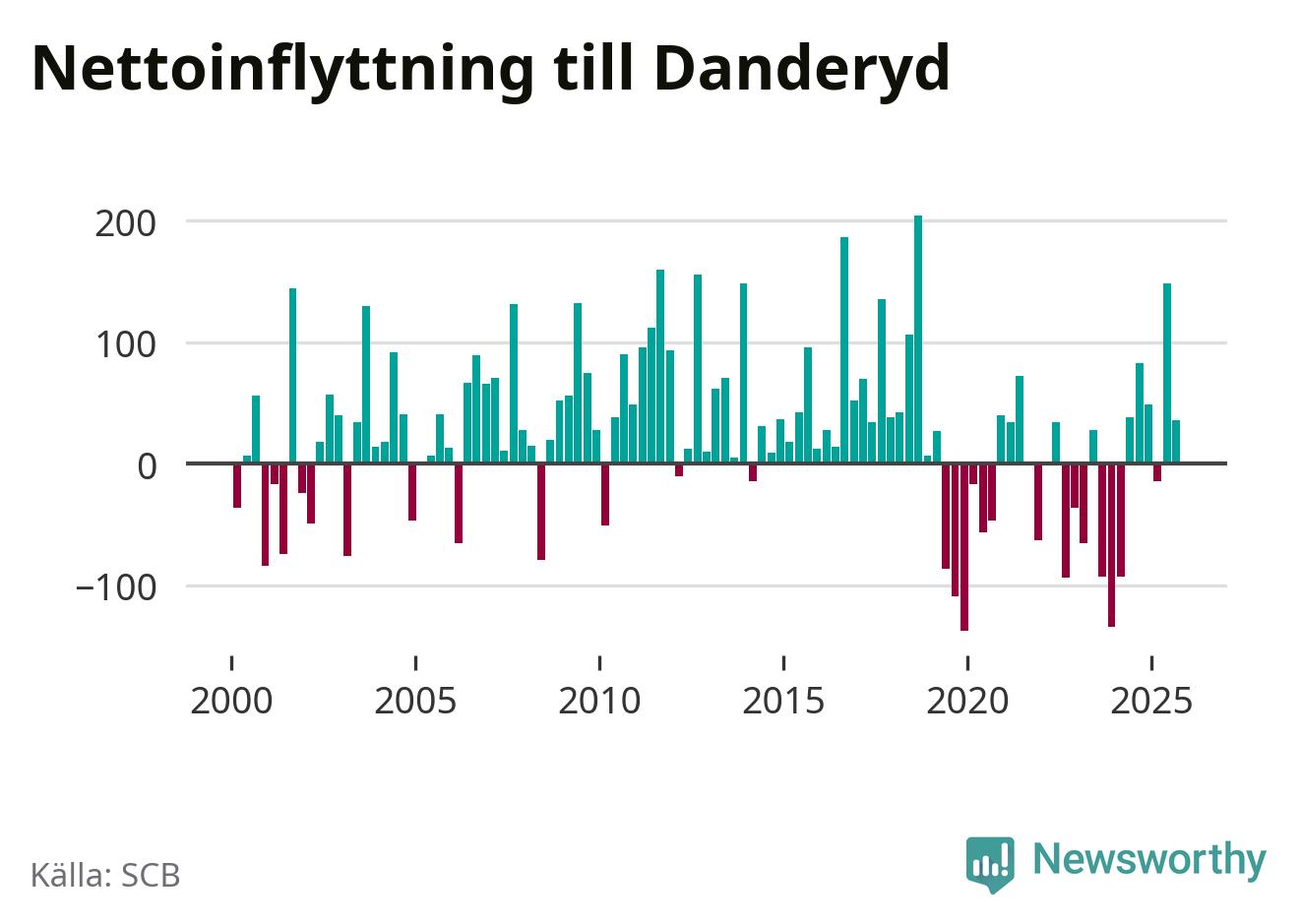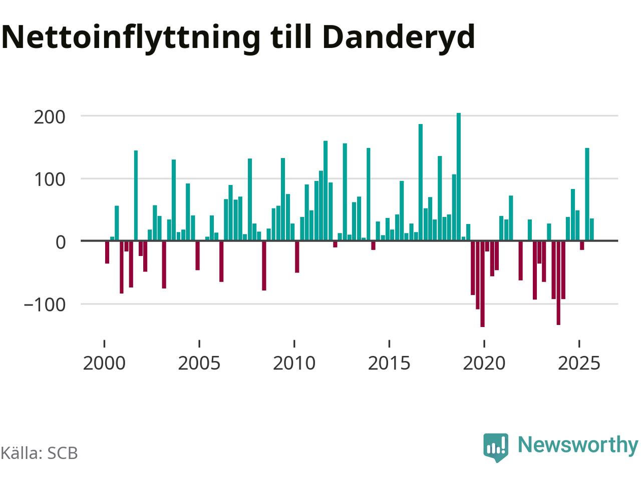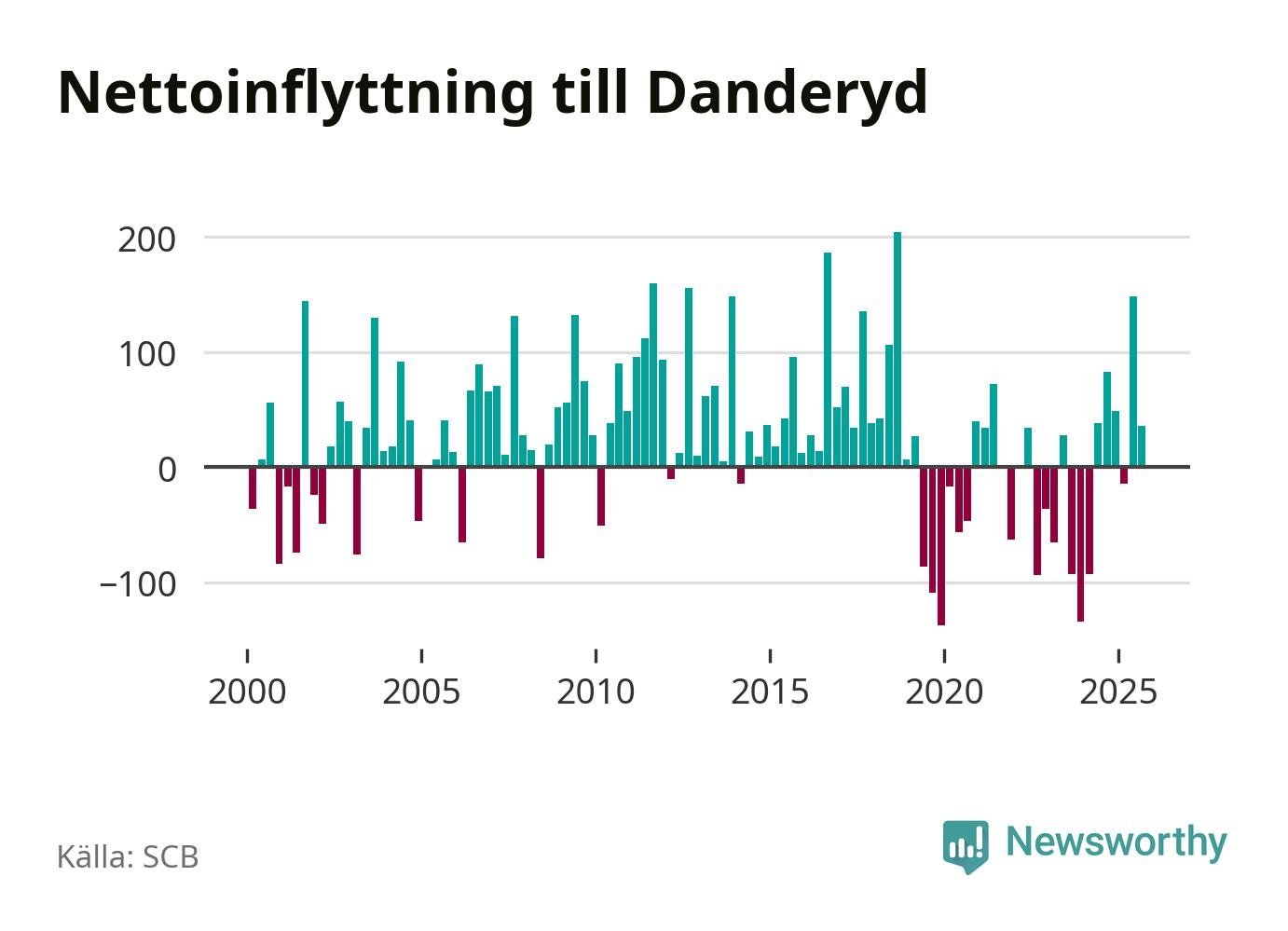 Under tredje kvartalet 2025 flyttade 954 personer till kommunen medan 918 personer flyttade därifrån. Det är historiskt sett en stor inflyttning under ett kvartal – men samtidigt var utflyttningen relativt stor. Sedan seklets början har Danderyd oftast haft ett positivt flyttnetto, inklusive det senaste kvartalet.