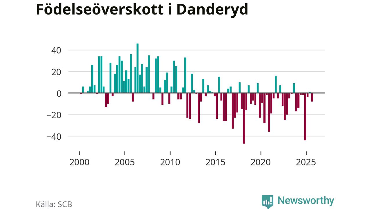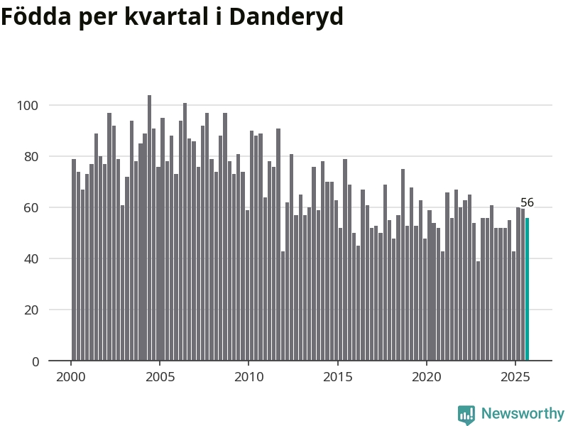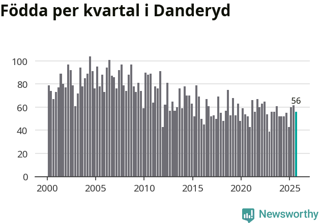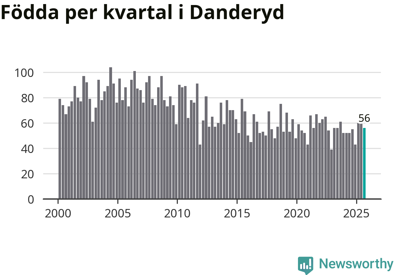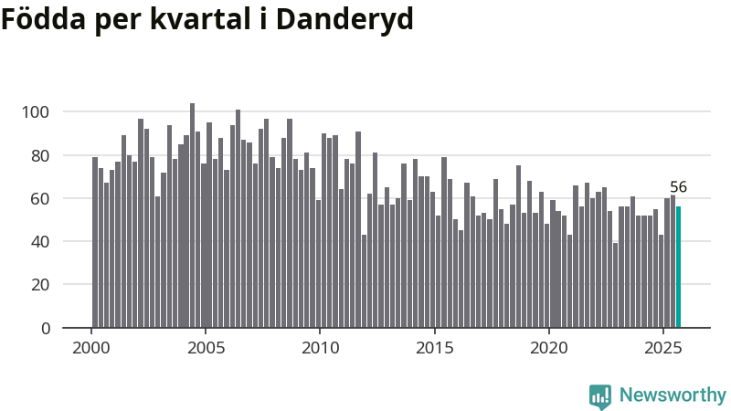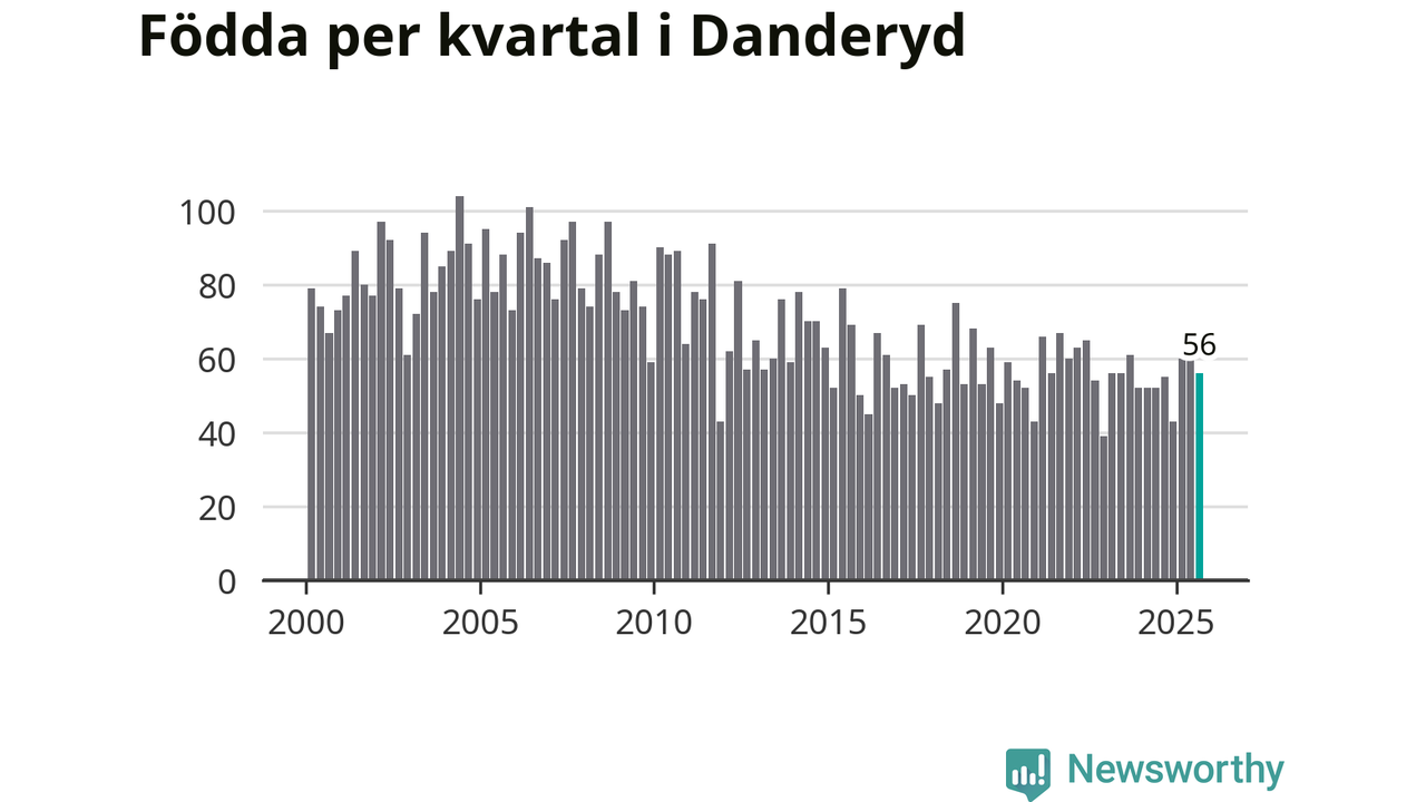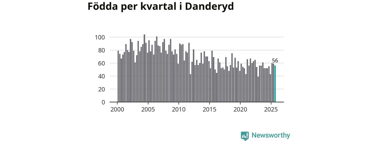 Enligt SCB:s siffror föddes 56 barn i Danderyd under det senaste kvartalet. Samtidigt avled 64 personer. Skillnaden mellan antal födda och döda är så liten att det inte går att säga om det beror på något annat än SCB:s röjandeskydd. Kommunen har oftast haft negativt födelsenetto tidigare.