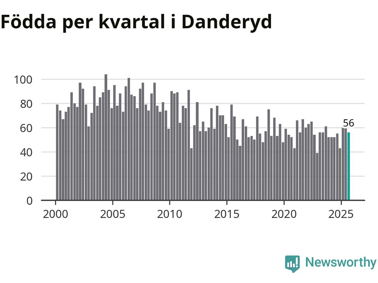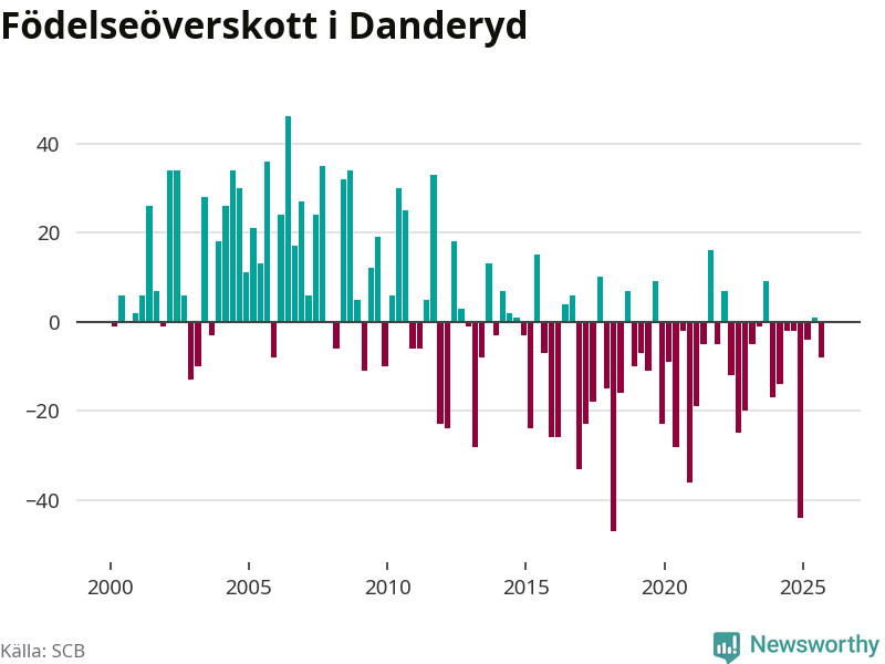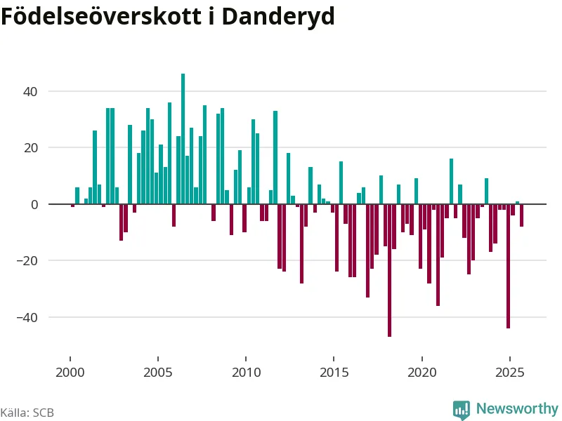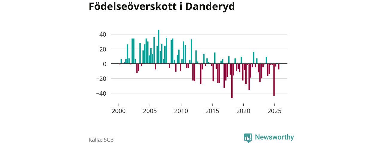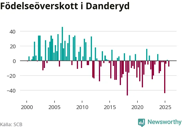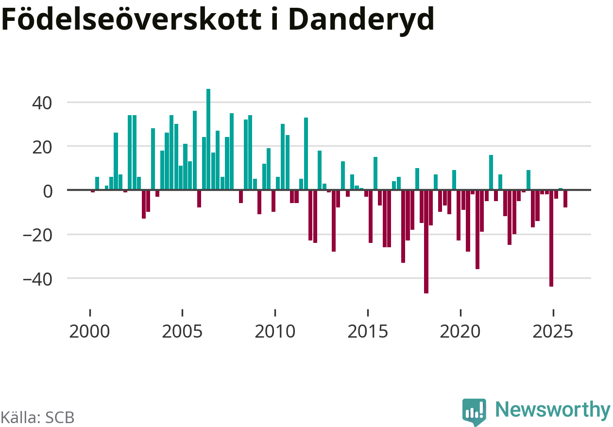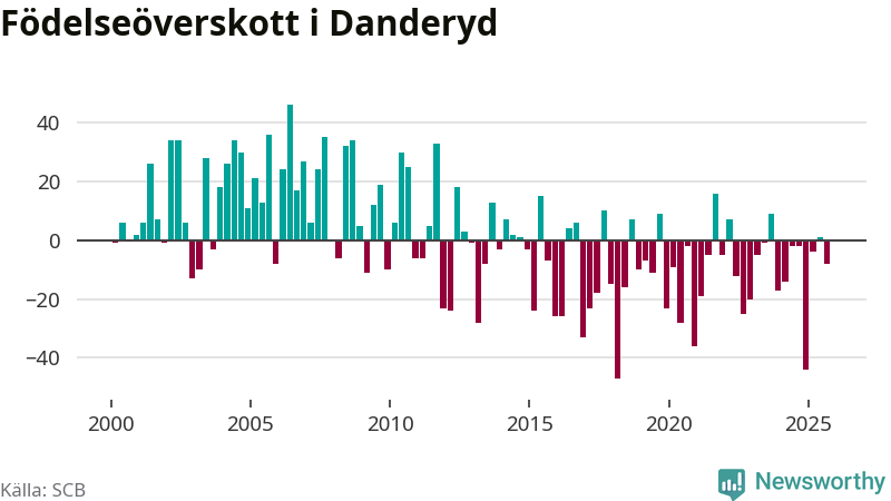 Enligt SCB:s siffror föddes 56 barn i Danderyd under det senaste kvartalet. Samtidigt avled 64 personer. Skillnaden mellan antal födda och döda är så liten att det inte går att säga om det beror på något annat än SCB:s röjandeskydd. Kommunen har oftast haft negativt födelsenetto tidigare.