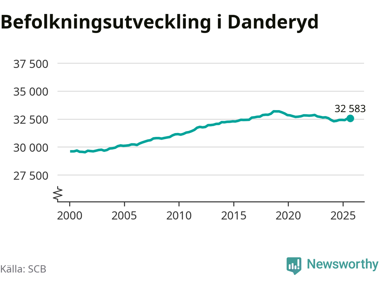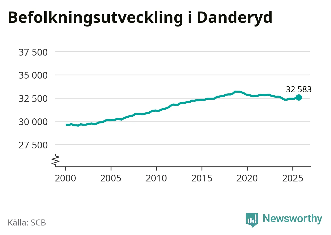 Befolkningen ökade i Danderyds kommun under det tredje kvartalet 2025. Den 30 september bodde enligt SCB:s senaste siffror 32 583 personer i kommunen, vilket är 32 fler än i slutet av andra kvartalet.
