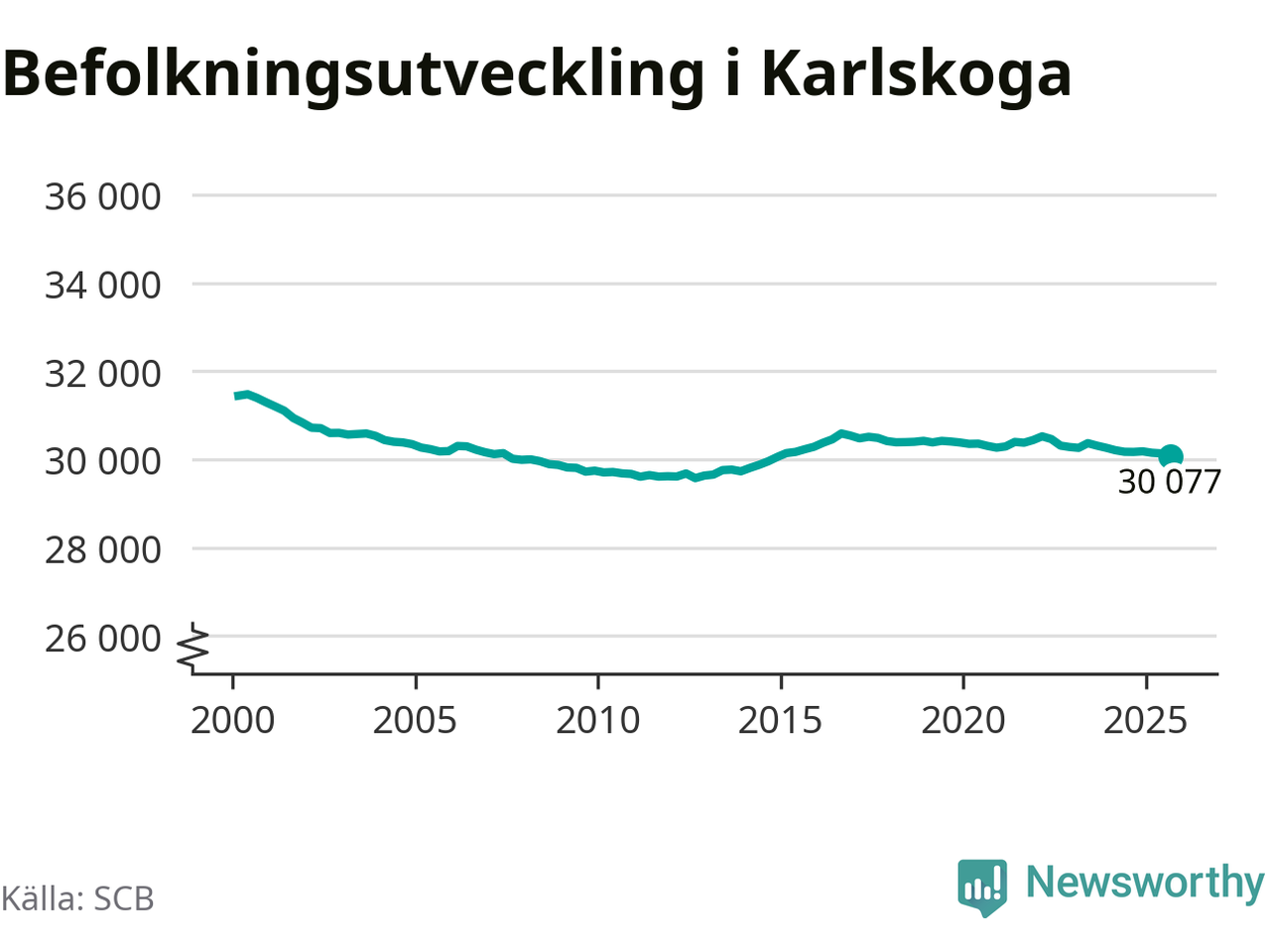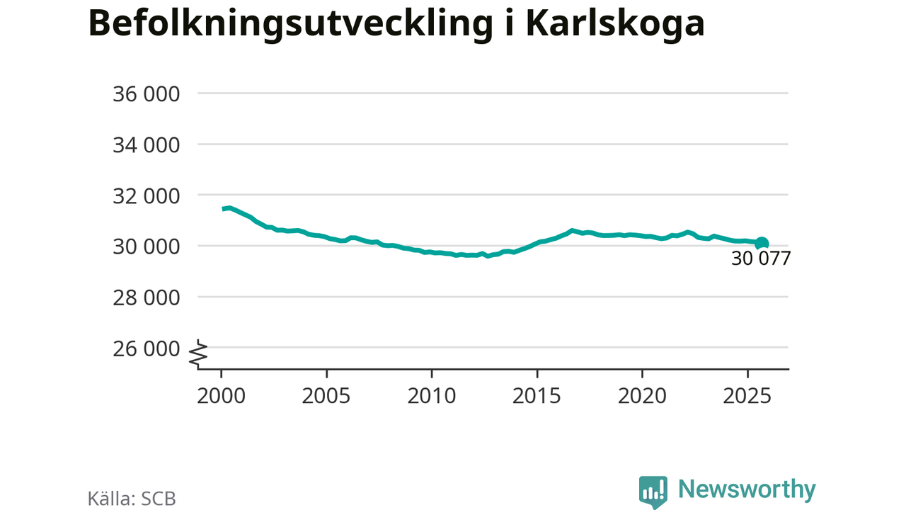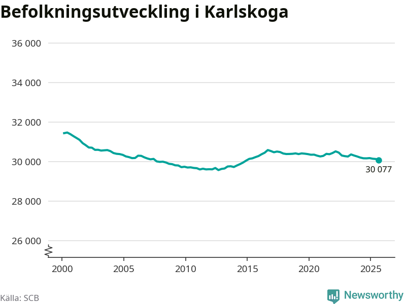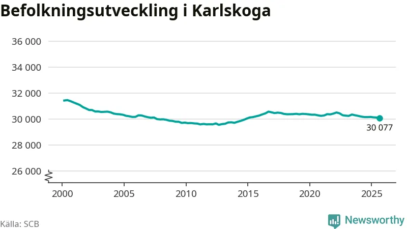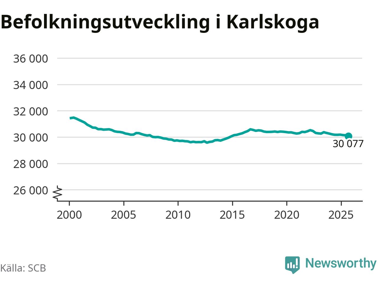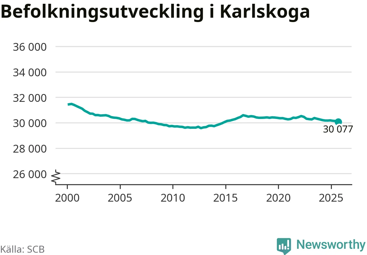 Befolkningen minskade i Karlskoga kommun under det tredje kvartalet 2025. Den 30 september bodde enligt SCB:s senaste siffror 30 077 personer i kommunen, vilket är 57 färre än i slutet av andra kvartalet.