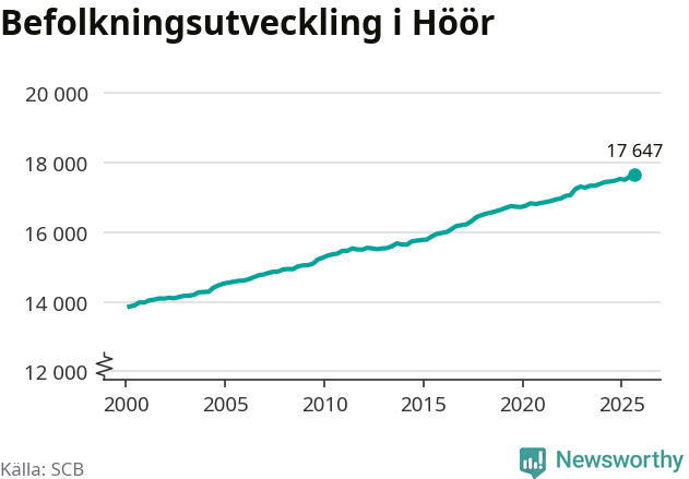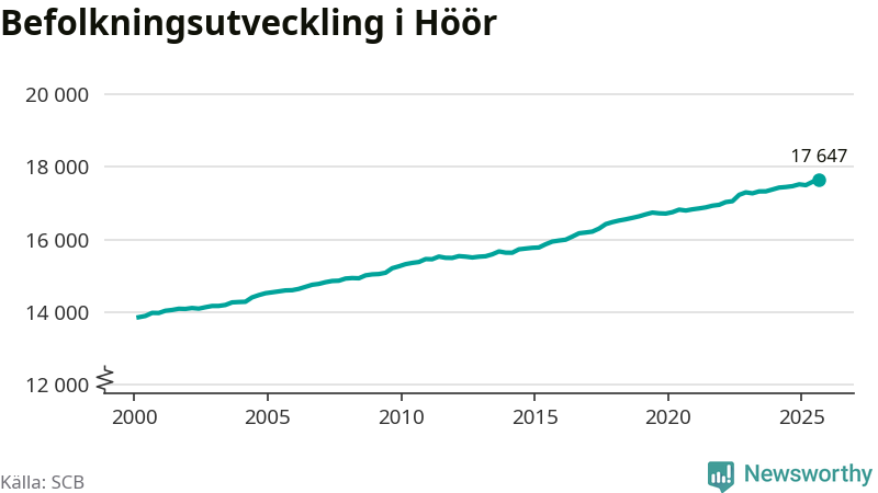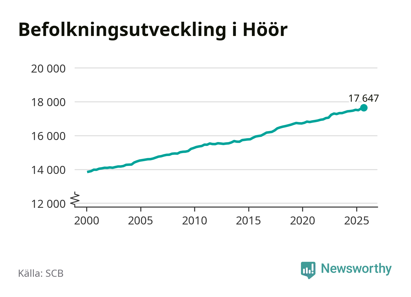 Befolkningen ökade i Höörs kommun under det tredje kvartalet 2025. Den 30 september bodde enligt SCB:s senaste siffror 17 647 personer i kommunen, vilket är 60 fler än i slutet av andra kvartalet.
