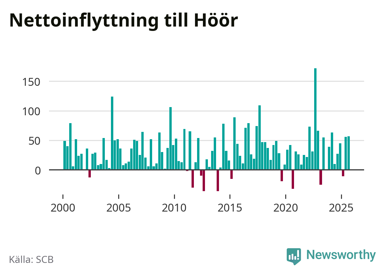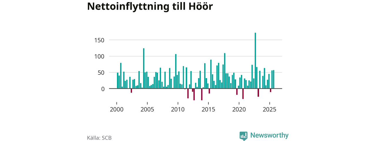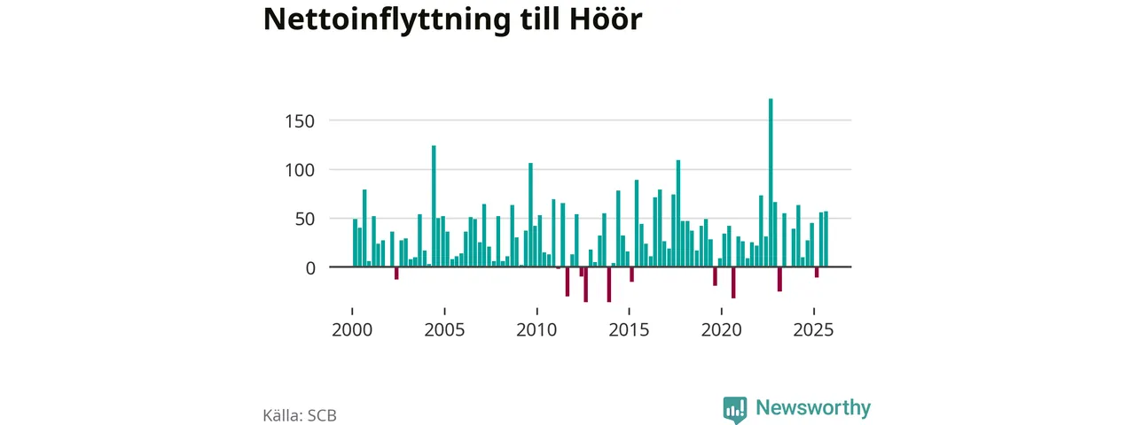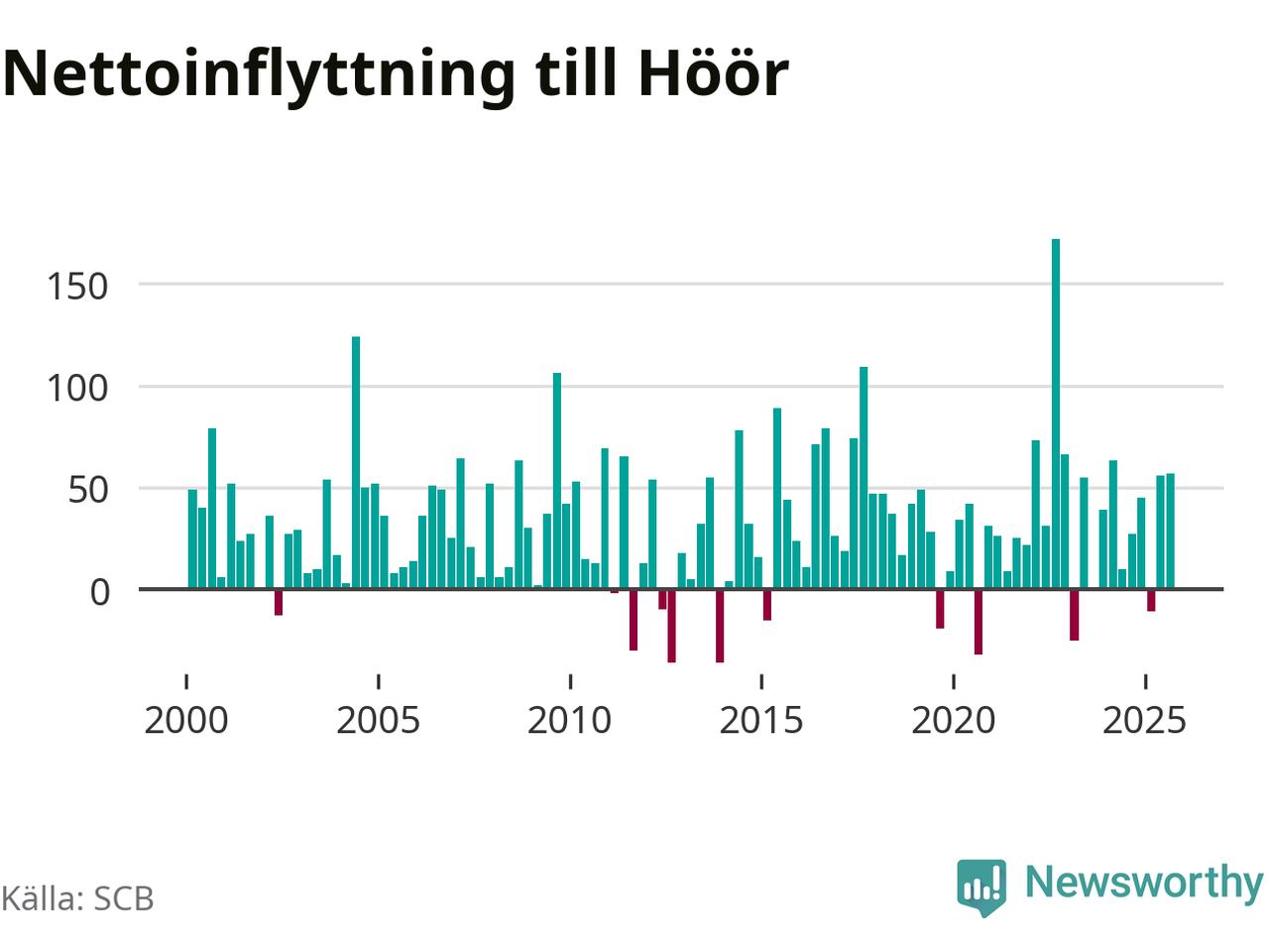 Under tredje kvartalet 2025 flyttade 385 personer till kommunen medan 328 personer flyttade därifrån. Det är historiskt sett en stor inflyttning under ett kvartal – men samtidigt var utflyttningen den största hittills. Sedan seklets början har Höör haft ett positivt flyttnetto under nästan alla kvartal, inklusive det senaste kvartalet.