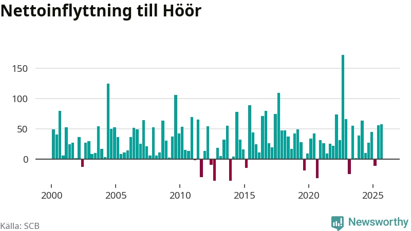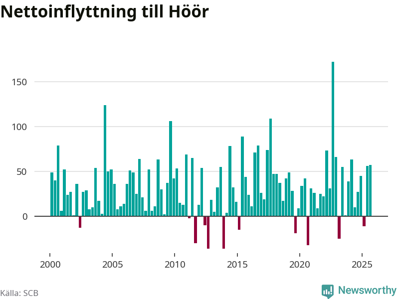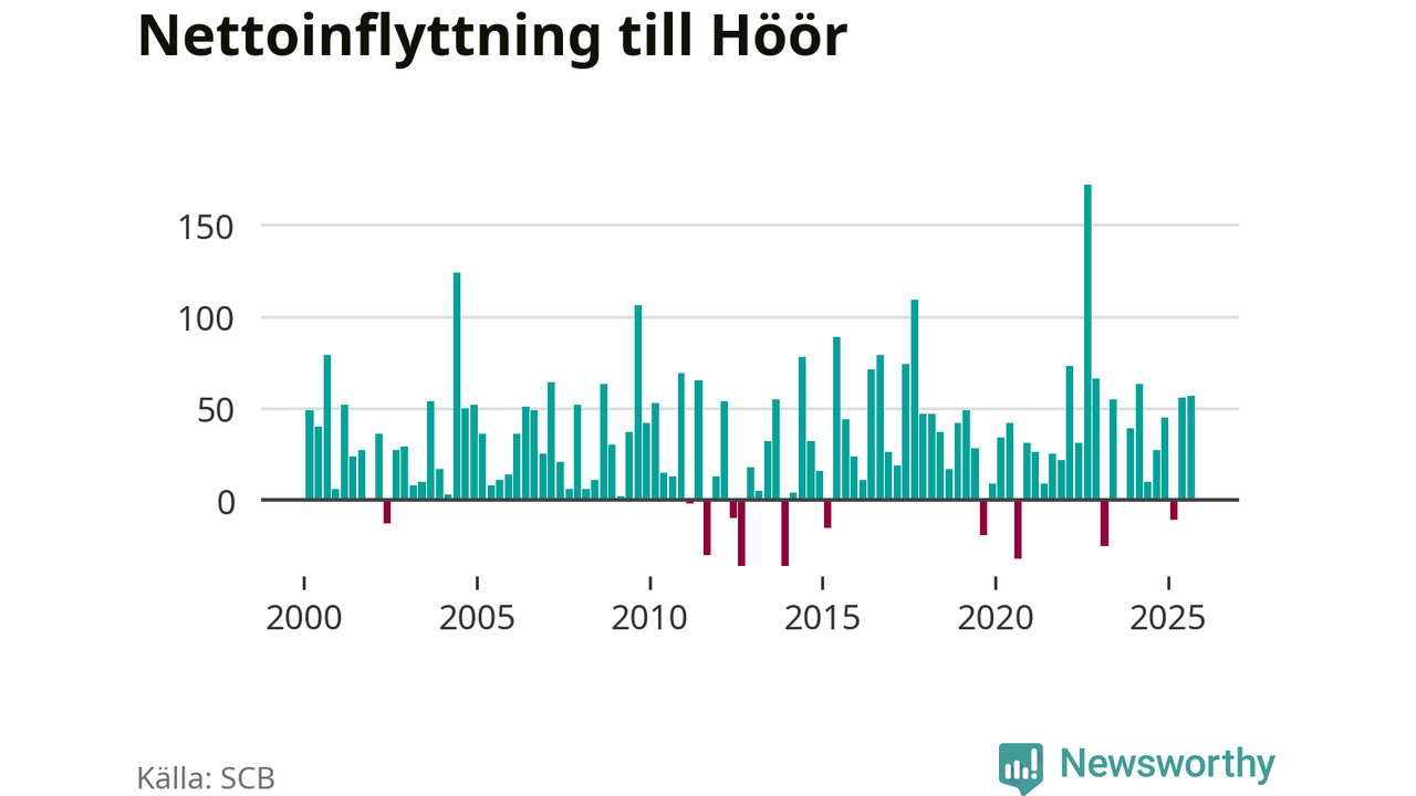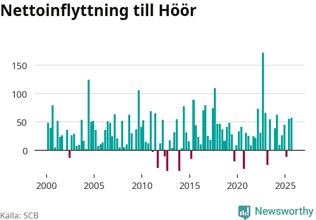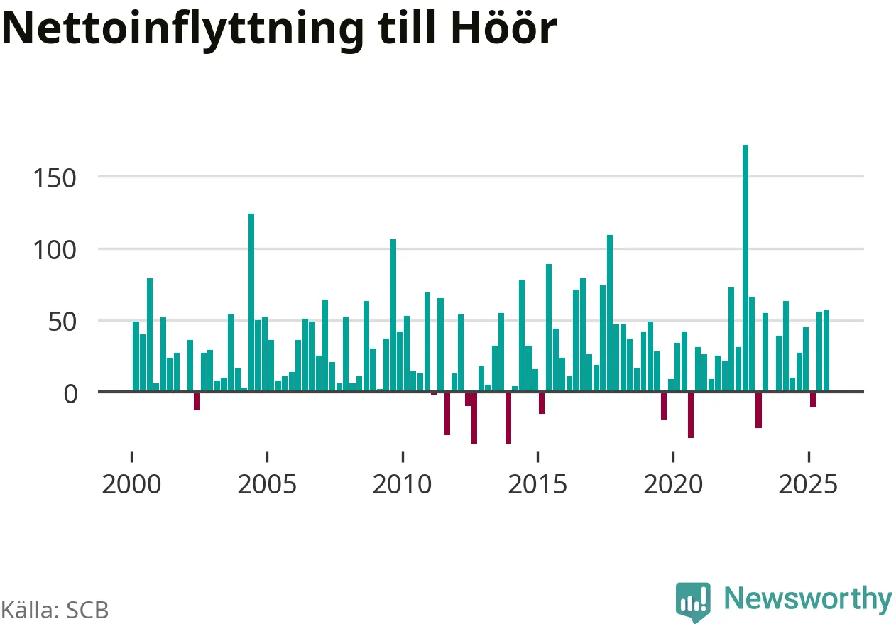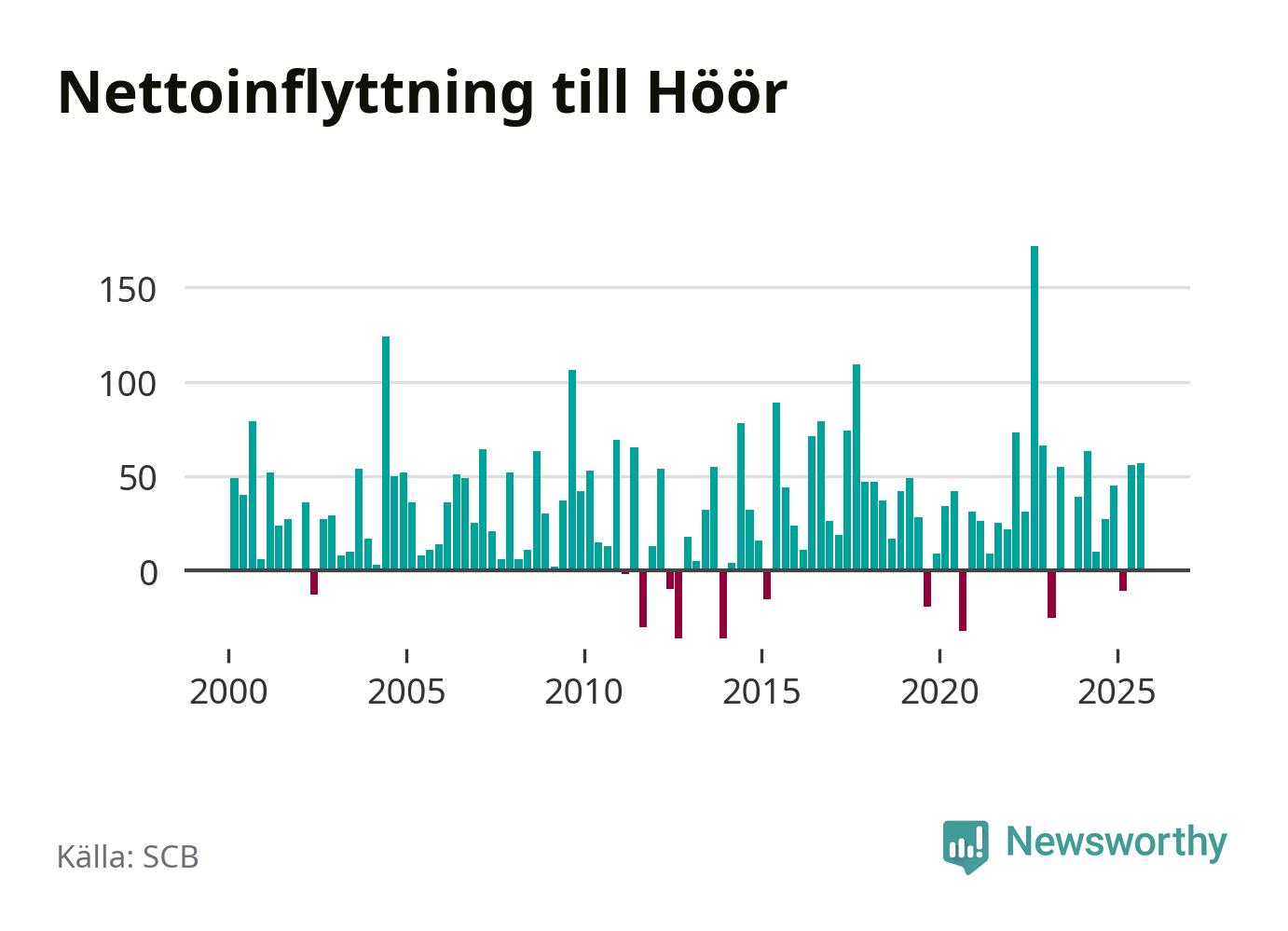 Under tredje kvartalet 2025 flyttade 385 personer till kommunen medan 328 personer flyttade därifrån. Det är historiskt sett en stor inflyttning under ett kvartal – men samtidigt var utflyttningen den största hittills. Sedan seklets början har Höör haft ett positivt flyttnetto under nästan alla kvartal, inklusive det senaste kvartalet.