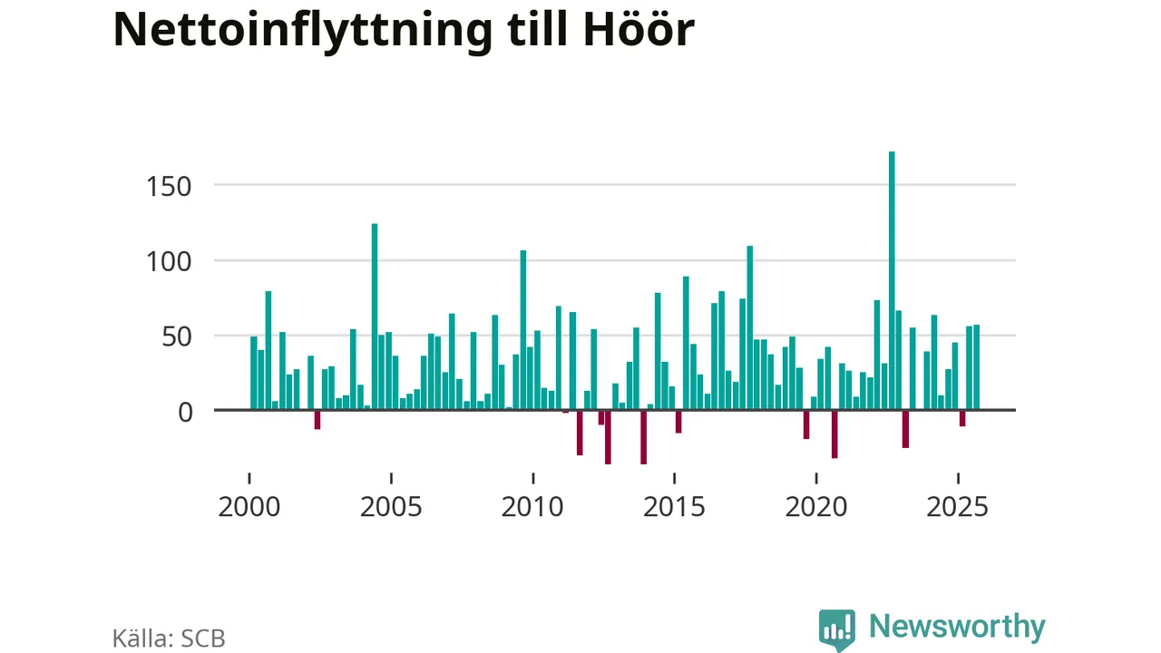 328 personer flyttade från Höörs kommun under det tredje kvartalet 2025. Det är ovanligt många, visar SCB:s senaste befolkningssiffror.