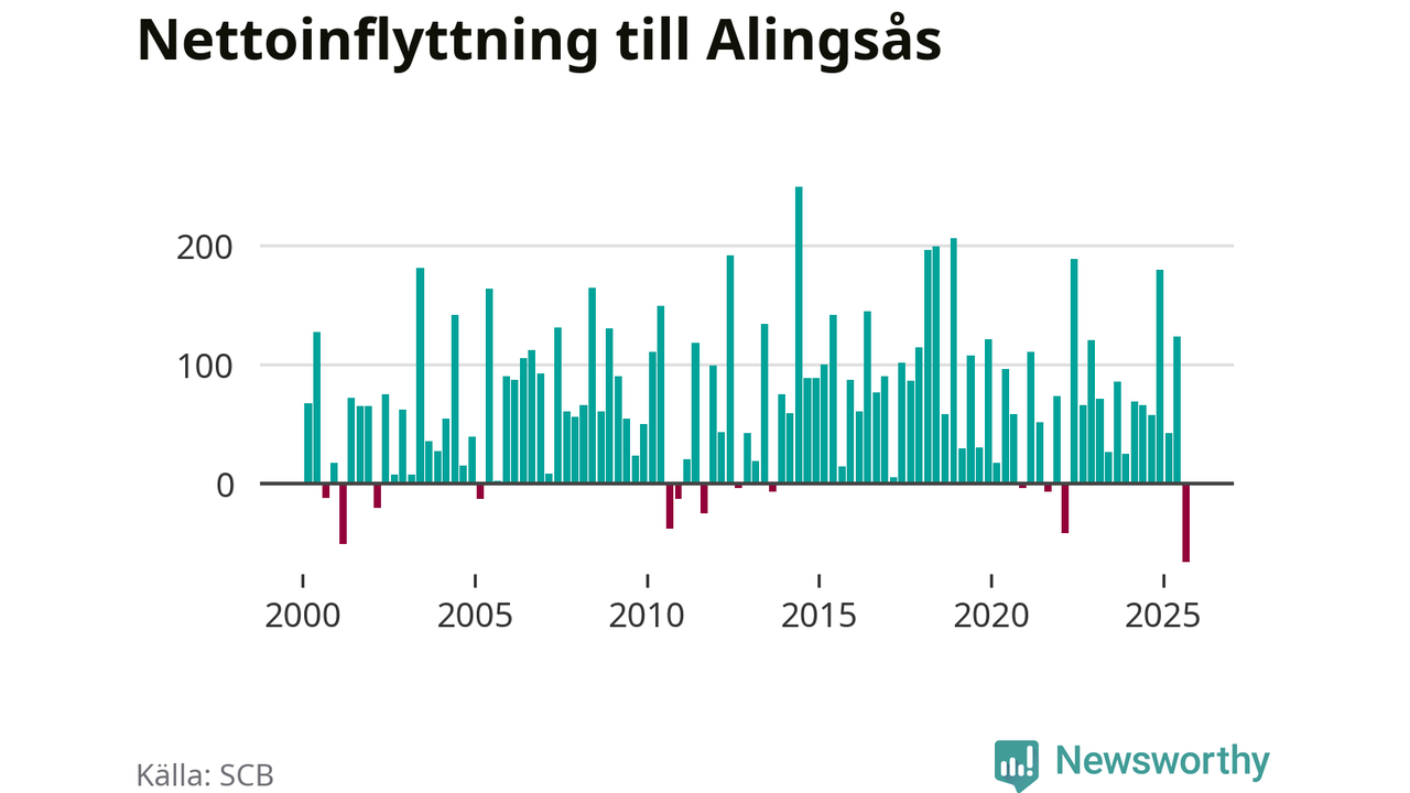 Under det tredje kvartalet 2025 var det fler som flyttade från Alingsås kommun än som flyttade hit. Det är första gången sedan andra kvartalet 2022 som det händer. Det visar nya siffror från SCB.