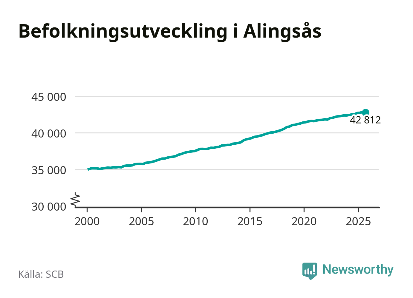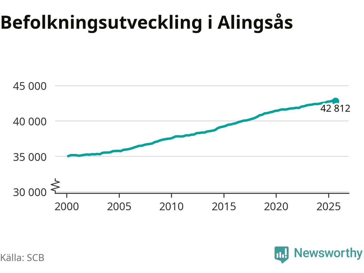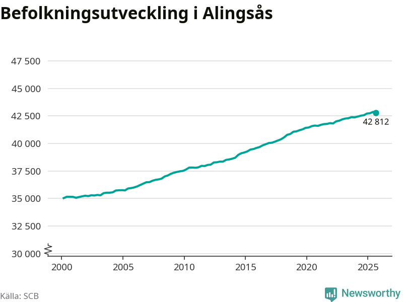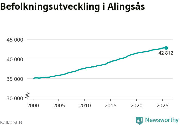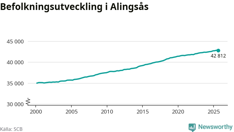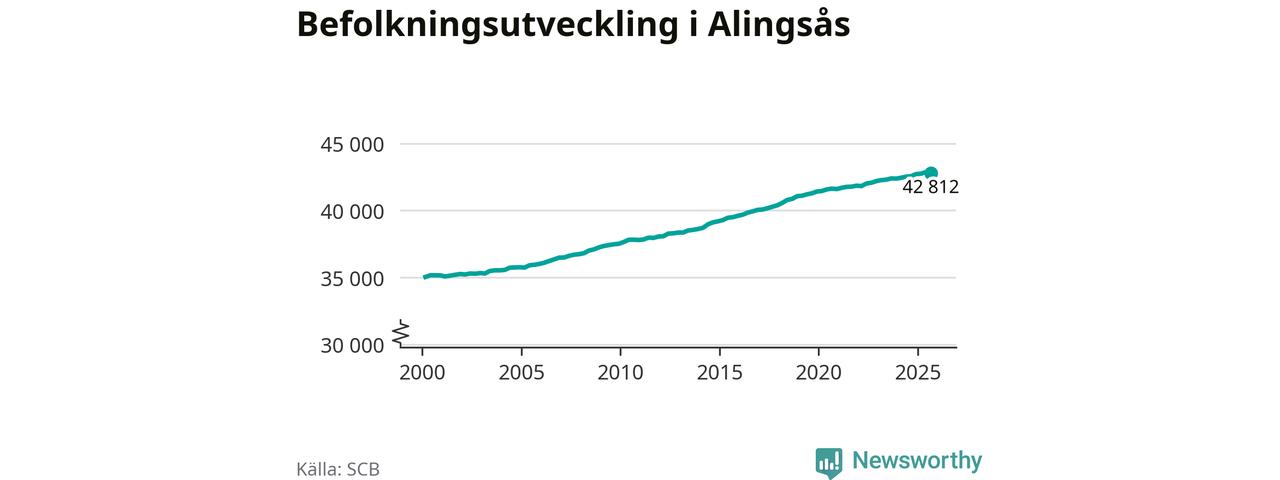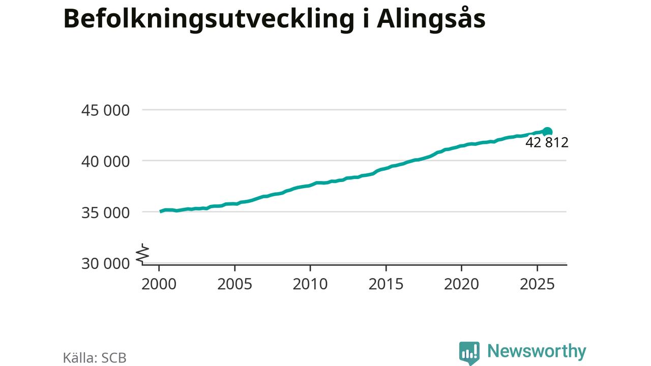 Befolkningen minskade i Alingsås kommun under det tredje kvartalet 2025. Den 30 september bodde enligt SCB:s senaste siffror 42 812 personer i kommunen, vilket är 59 färre än i slutet av andra kvartalet.