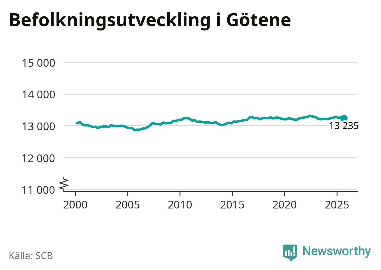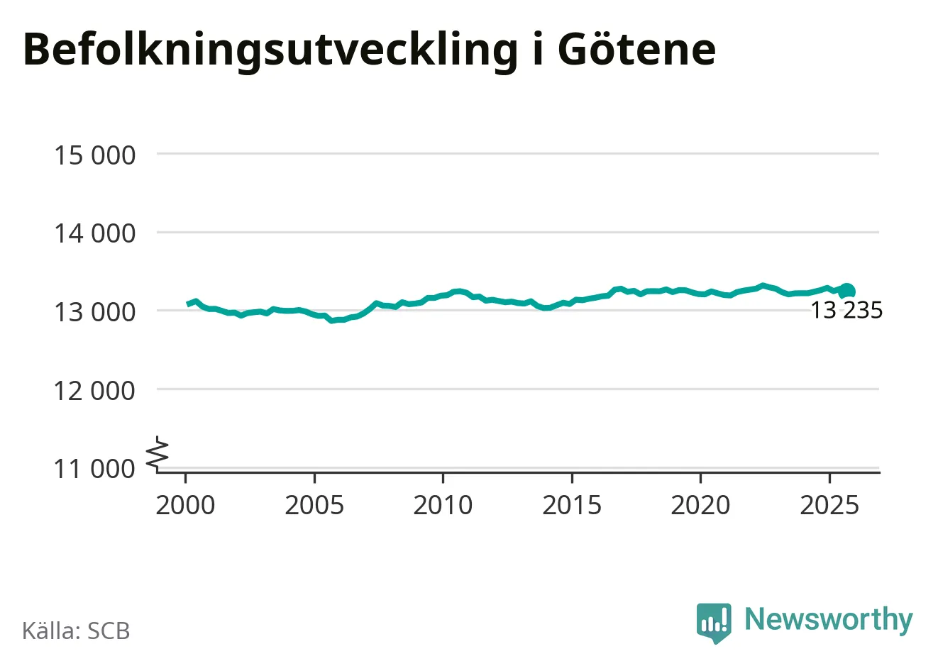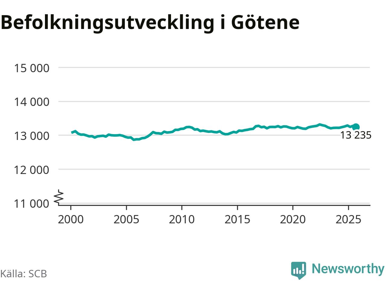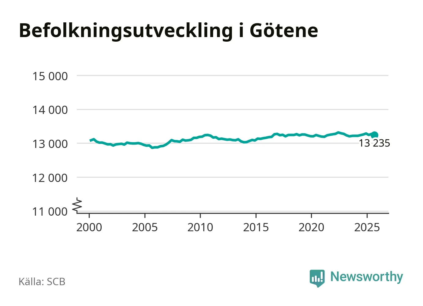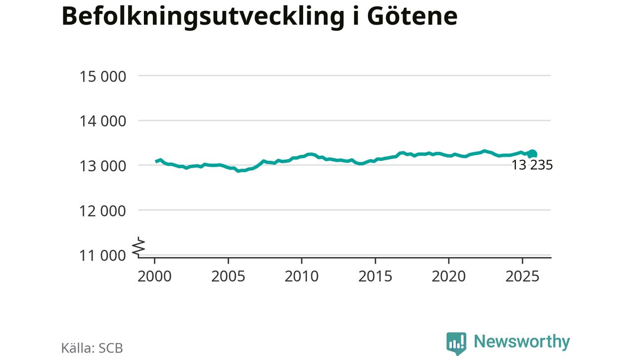 Befolkningen minskade i Götene kommun under det tredje kvartalet 2025. Den 30 september bodde enligt SCB:s senaste siffror 13 235 personer i kommunen, vilket är 39 färre än i slutet av andra kvartalet.