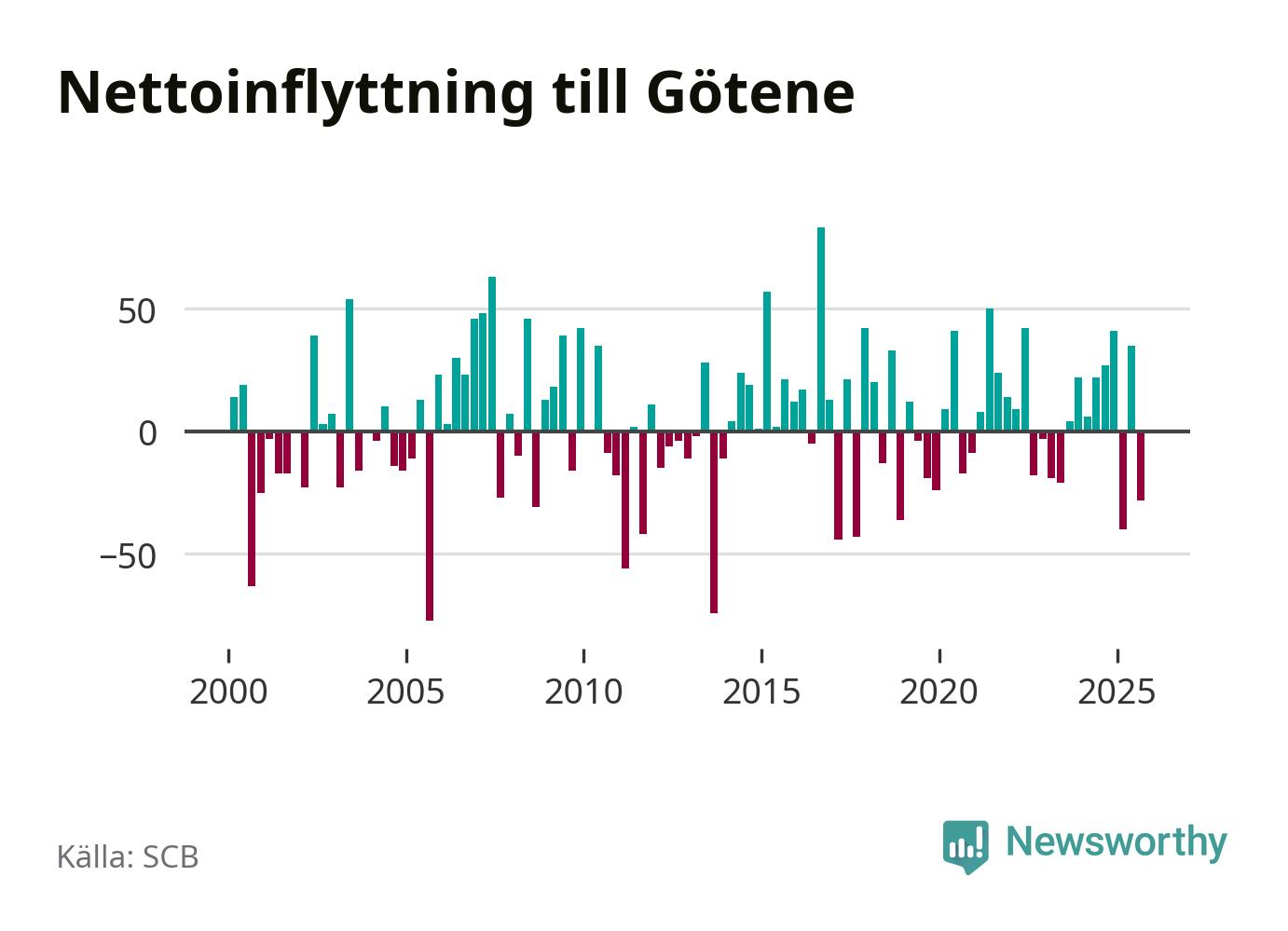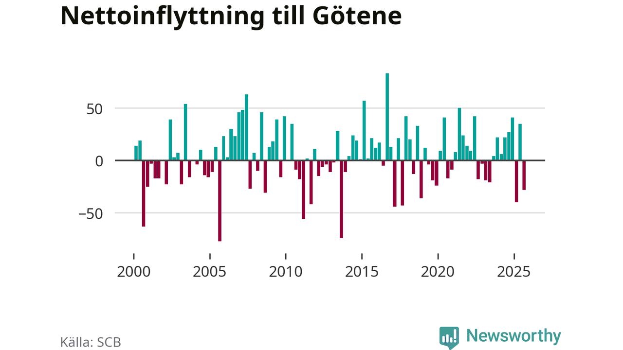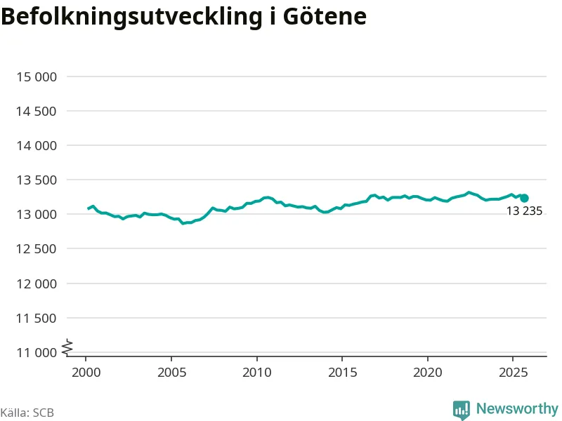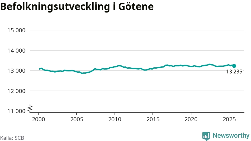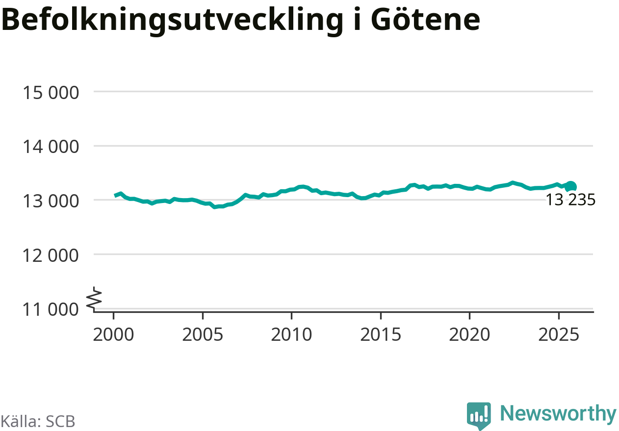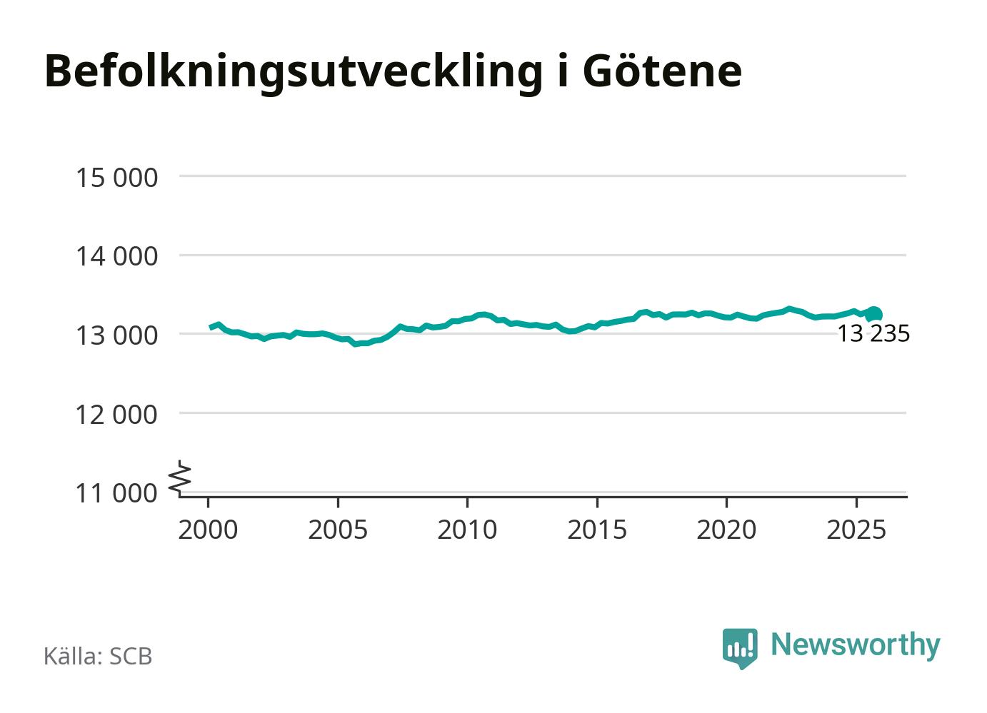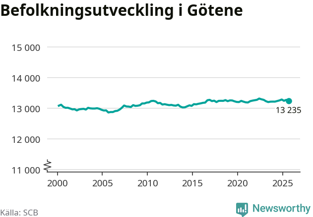 Befolkningen minskade i Götene kommun under det tredje kvartalet 2025. Den 30 september bodde enligt SCB:s senaste siffror 13 235 personer i kommunen, vilket är 39 färre än i slutet av andra kvartalet.