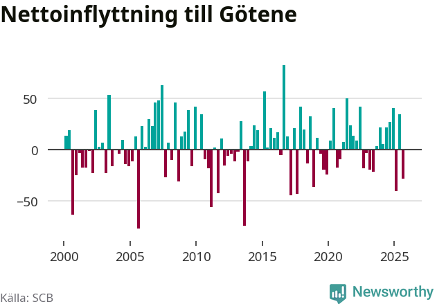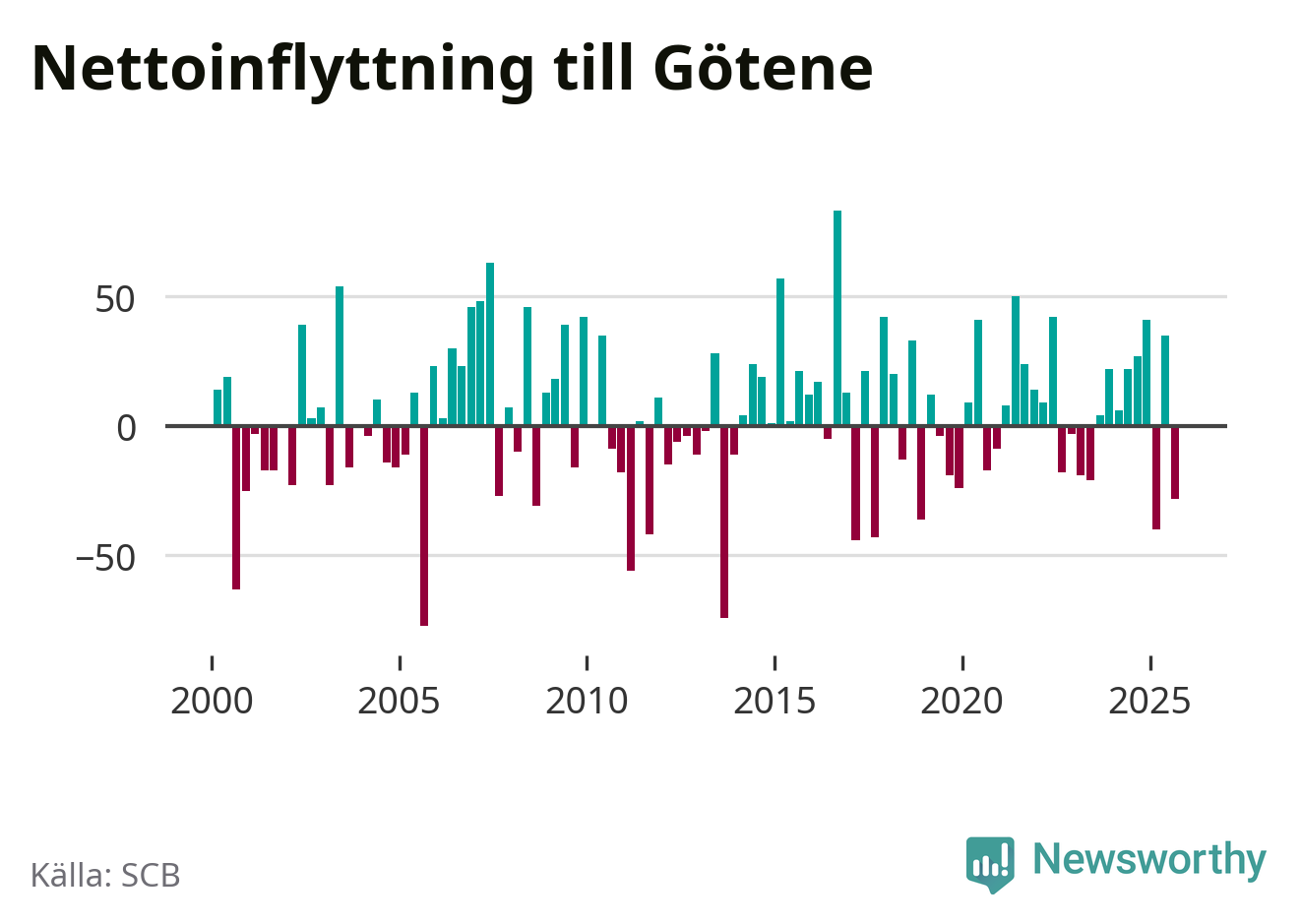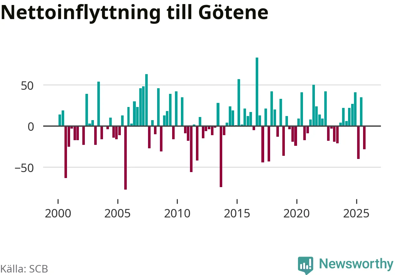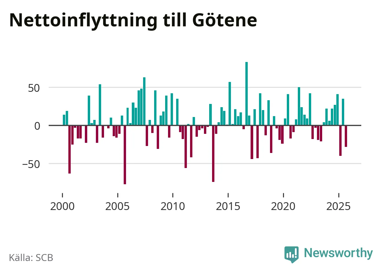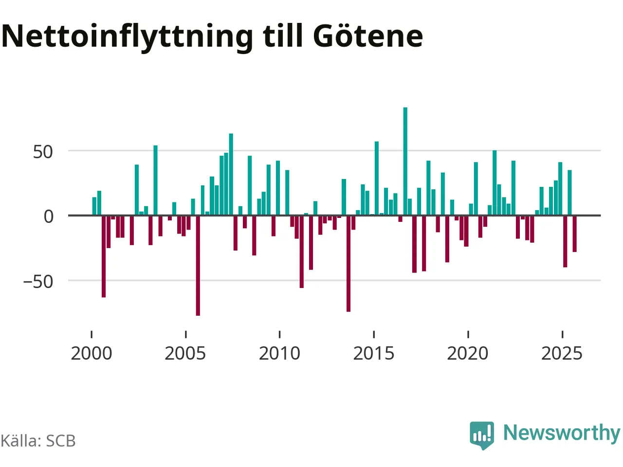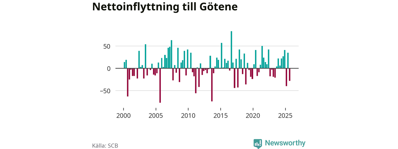 Befolkningen minskade i Götene kommun under det tredje kvartalet 2025. Den 30 september bodde enligt SCB:s senaste siffror 13 235 personer i kommunen, vilket är 39 färre än i slutet av andra kvartalet.