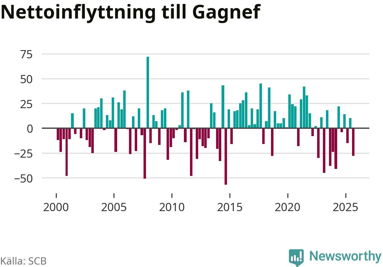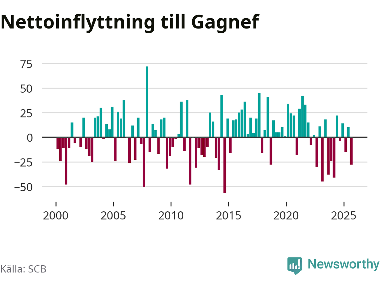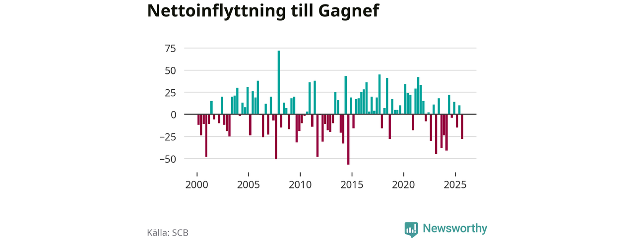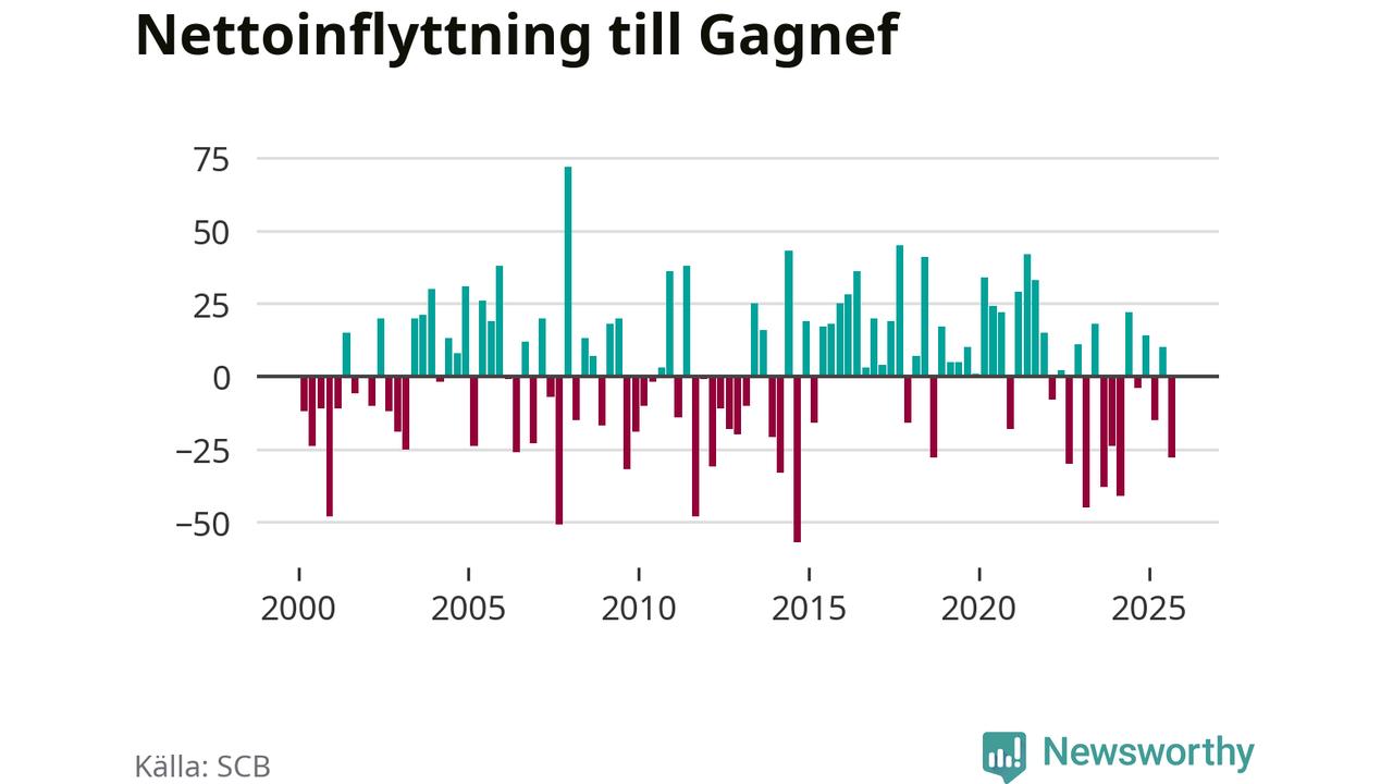 Fler flyttade från än till Gagnefs kommun. Befolkningen minskade under det tredje kvartalet 2025. Det visar nya siffror från SCB.