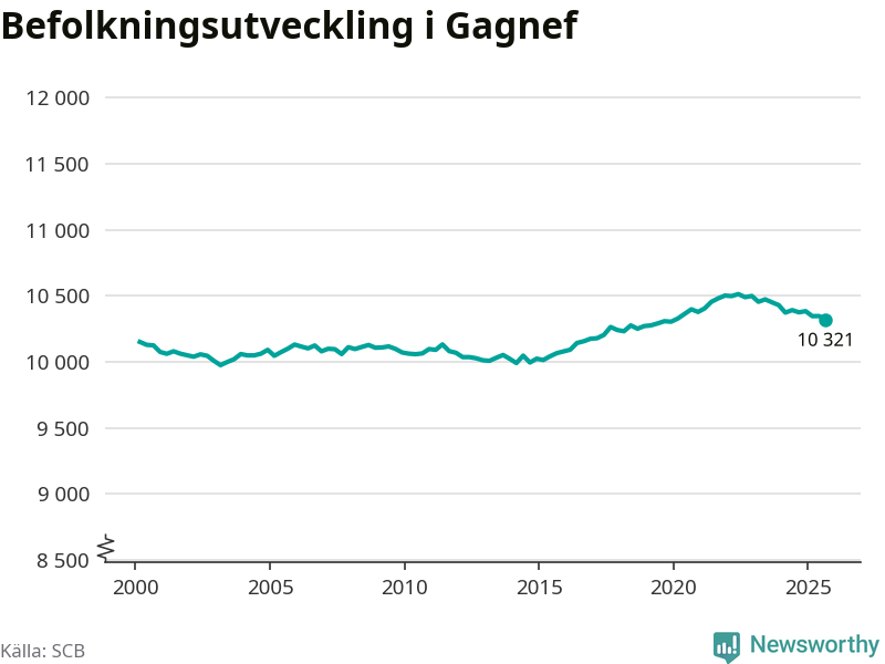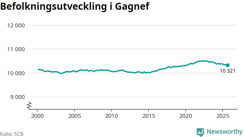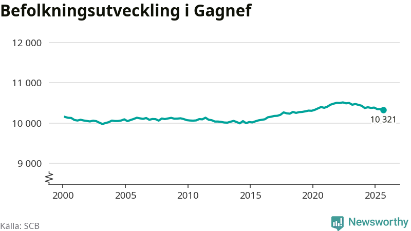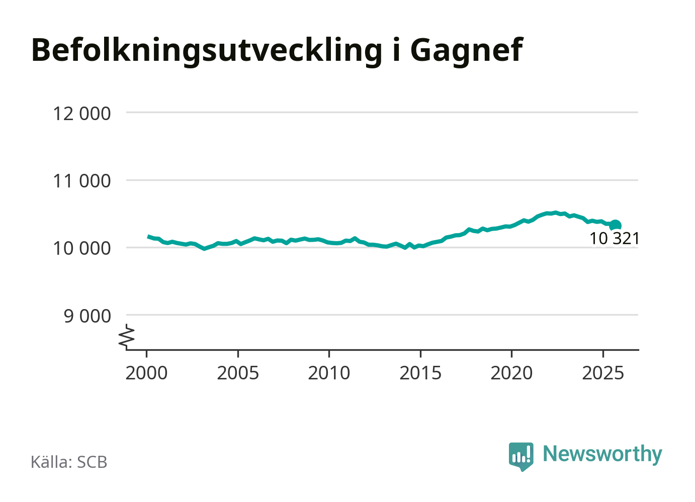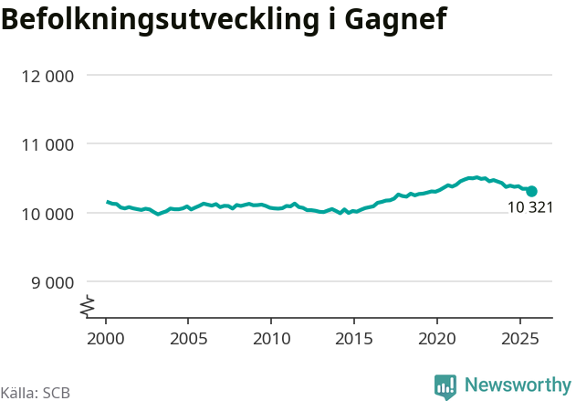 Befolkningen minskade i Gagnefs kommun under det tredje kvartalet 2025. Den 30 september bodde enligt SCB:s senaste siffror 10 321 personer i kommunen, vilket är 26 färre än i slutet av andra kvartalet.