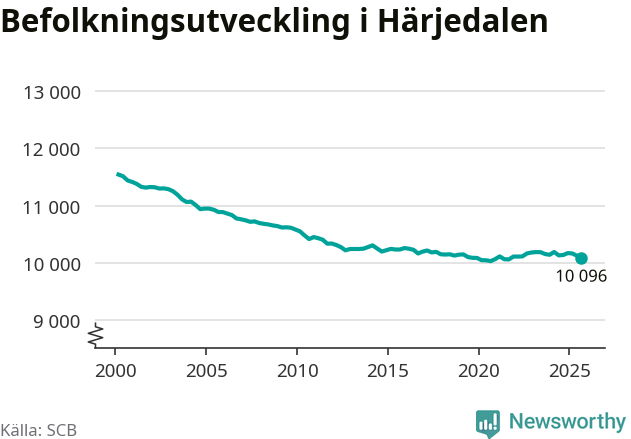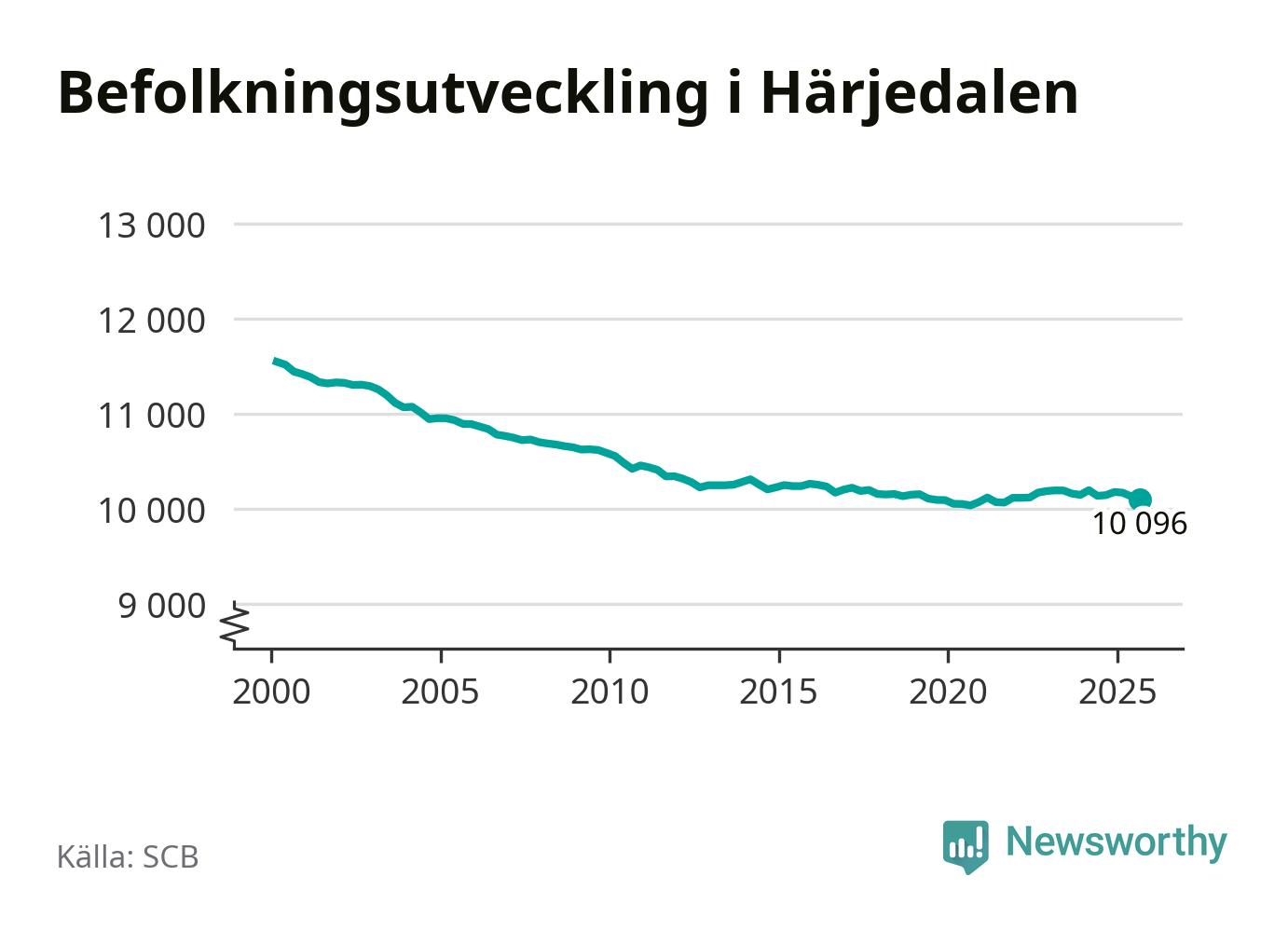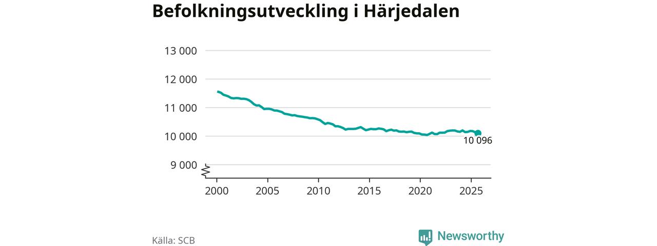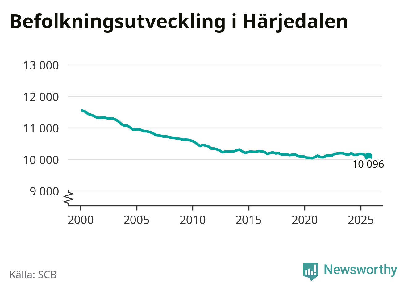 Befolkningen minskade i Härjedalens kommun under det tredje kvartalet 2025. Den 30 september bodde enligt SCB:s senaste siffror 10 096 personer i kommunen, vilket är 33 färre än i slutet av andra kvartalet. Minskningen är den näst största i Jämtland procentuellt sett.
