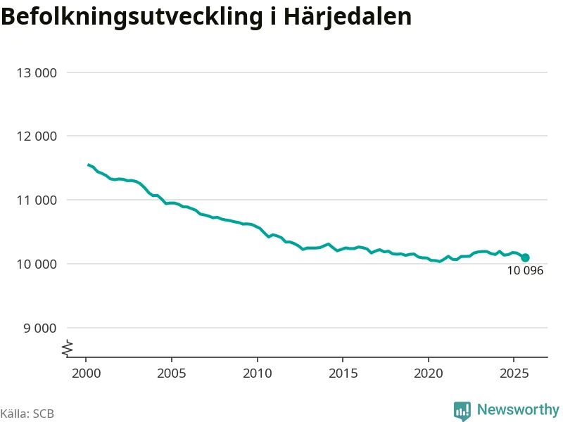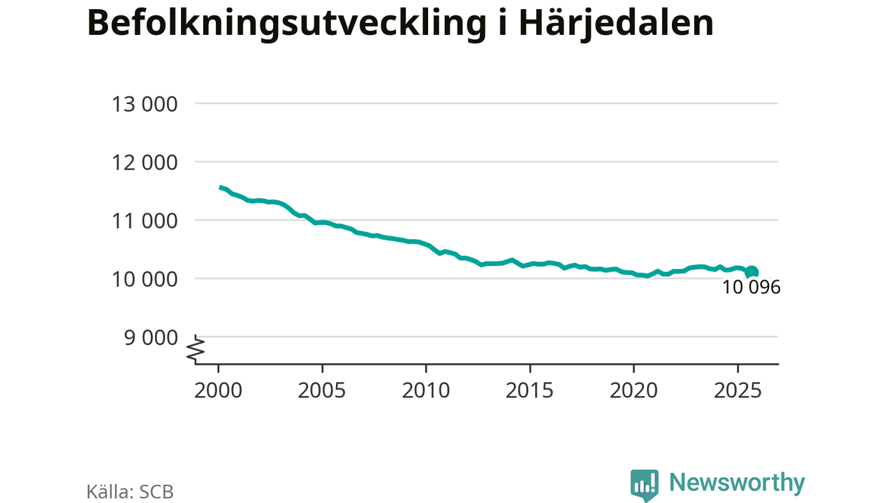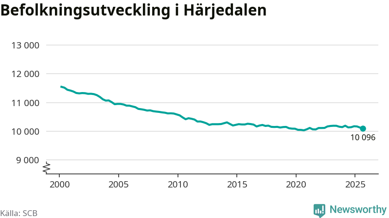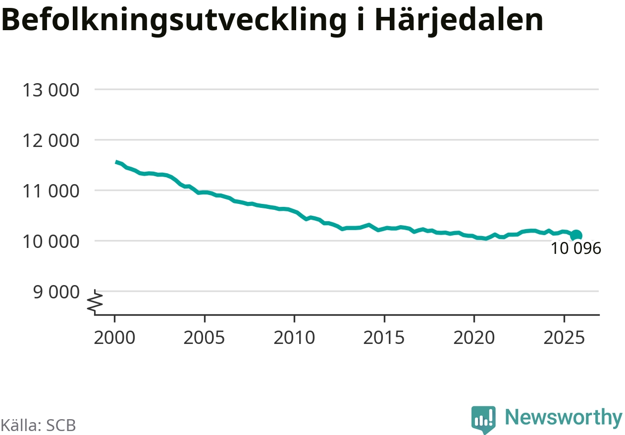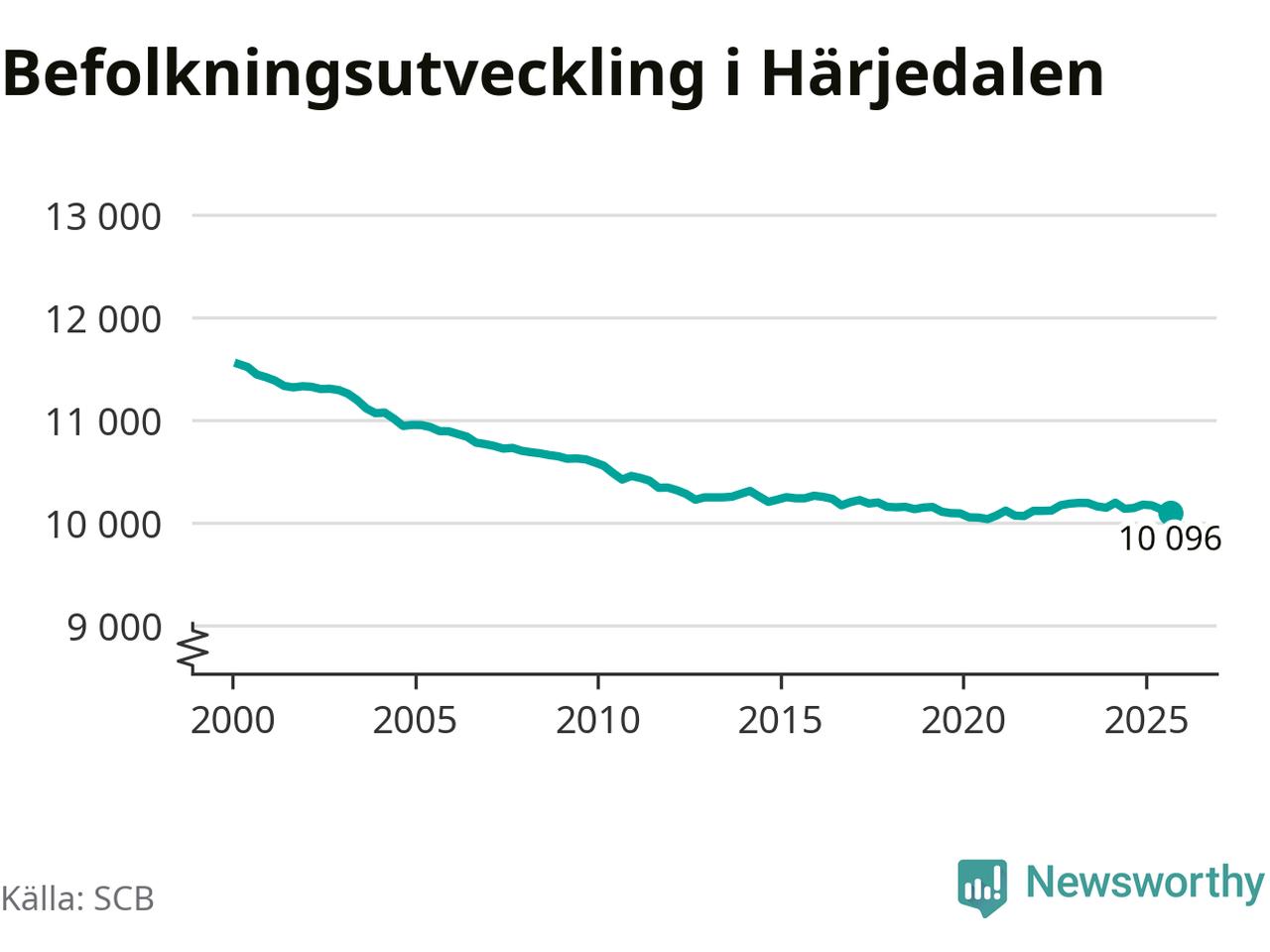 Befolkningen minskade i Härjedalens kommun under det tredje kvartalet 2025. Den 30 september bodde enligt SCB:s senaste siffror 10 096 personer i kommunen, vilket är 33 färre än i slutet av andra kvartalet. Minskningen är den näst största i Jämtland procentuellt sett.