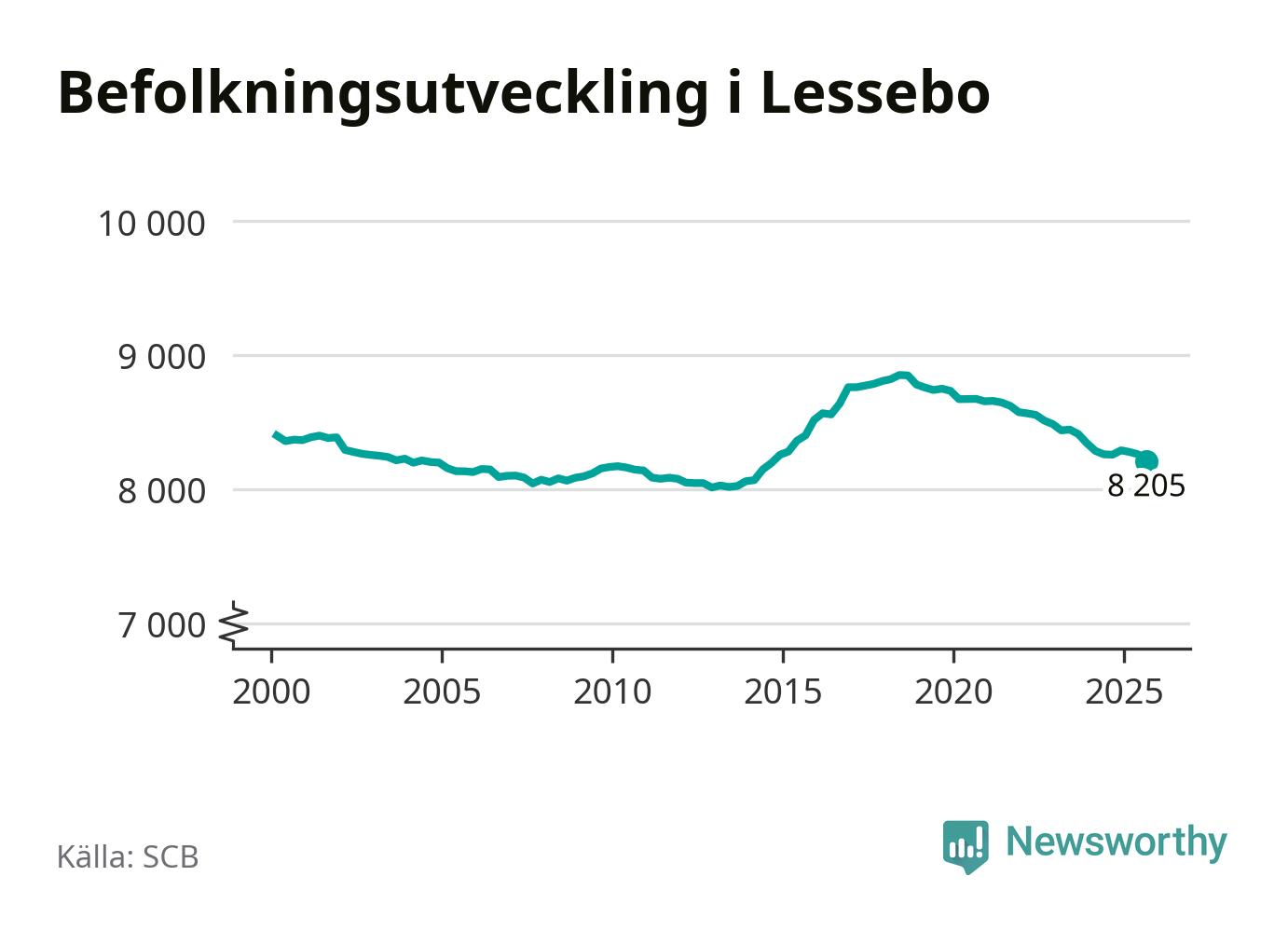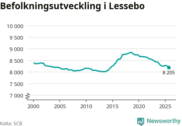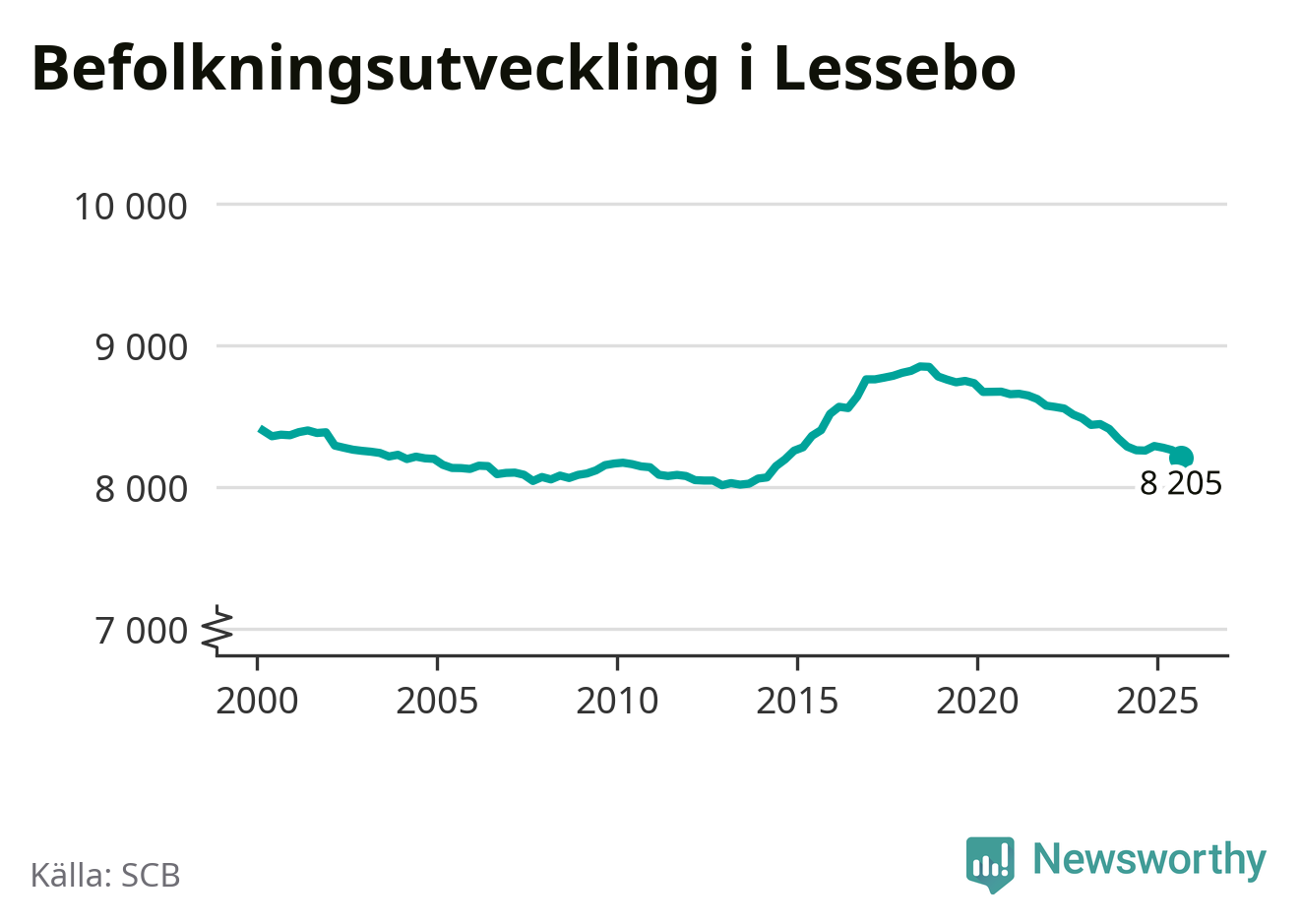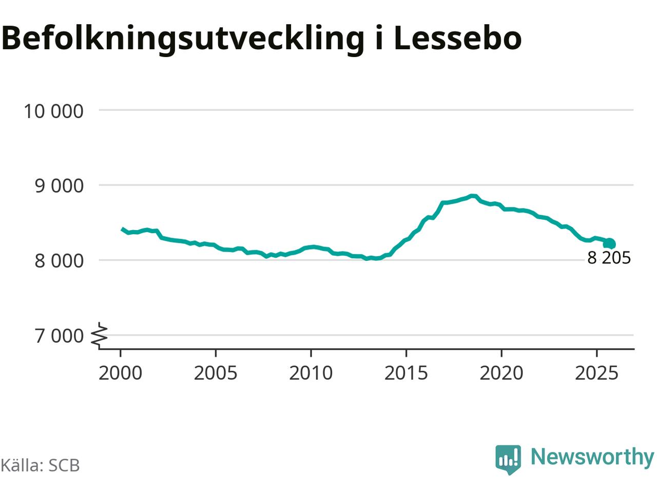 Befolkningen minskade i Lessebo kommun under det tredje kvartalet 2025. Den 30 september bodde enligt SCB:s senaste siffror 8 205 personer i kommunen, vilket är 55 färre än i slutet av andra kvartalet. Minskningen är procentuellt sett en av de största i Kronoberg.