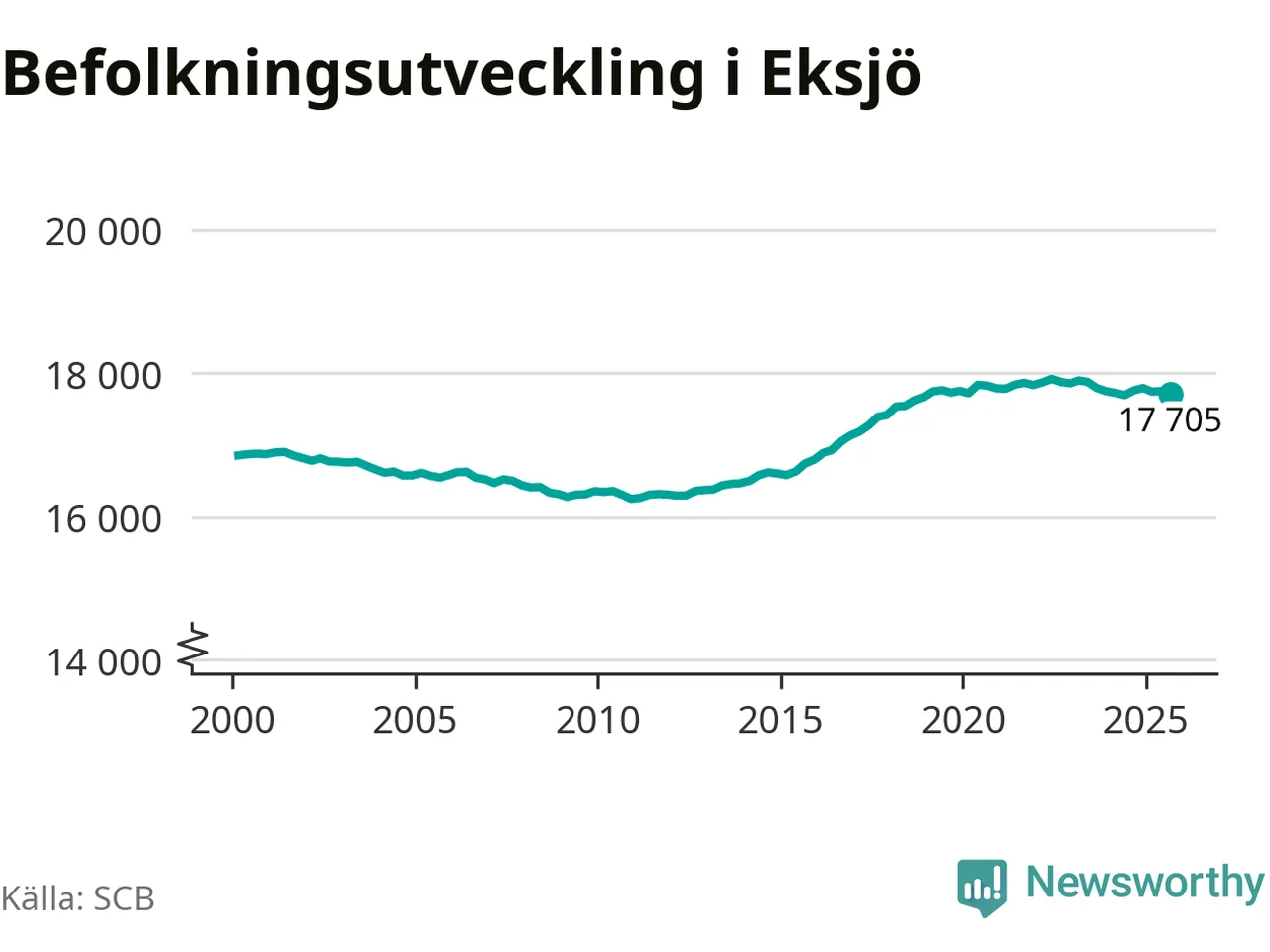 Antalet avlidna var större än antalet födda – och fler flyttade från än till Eksjö kommun. Befolkningen minskade under det tredje kvartalet 2025. Det visar nya siffror från SCB.