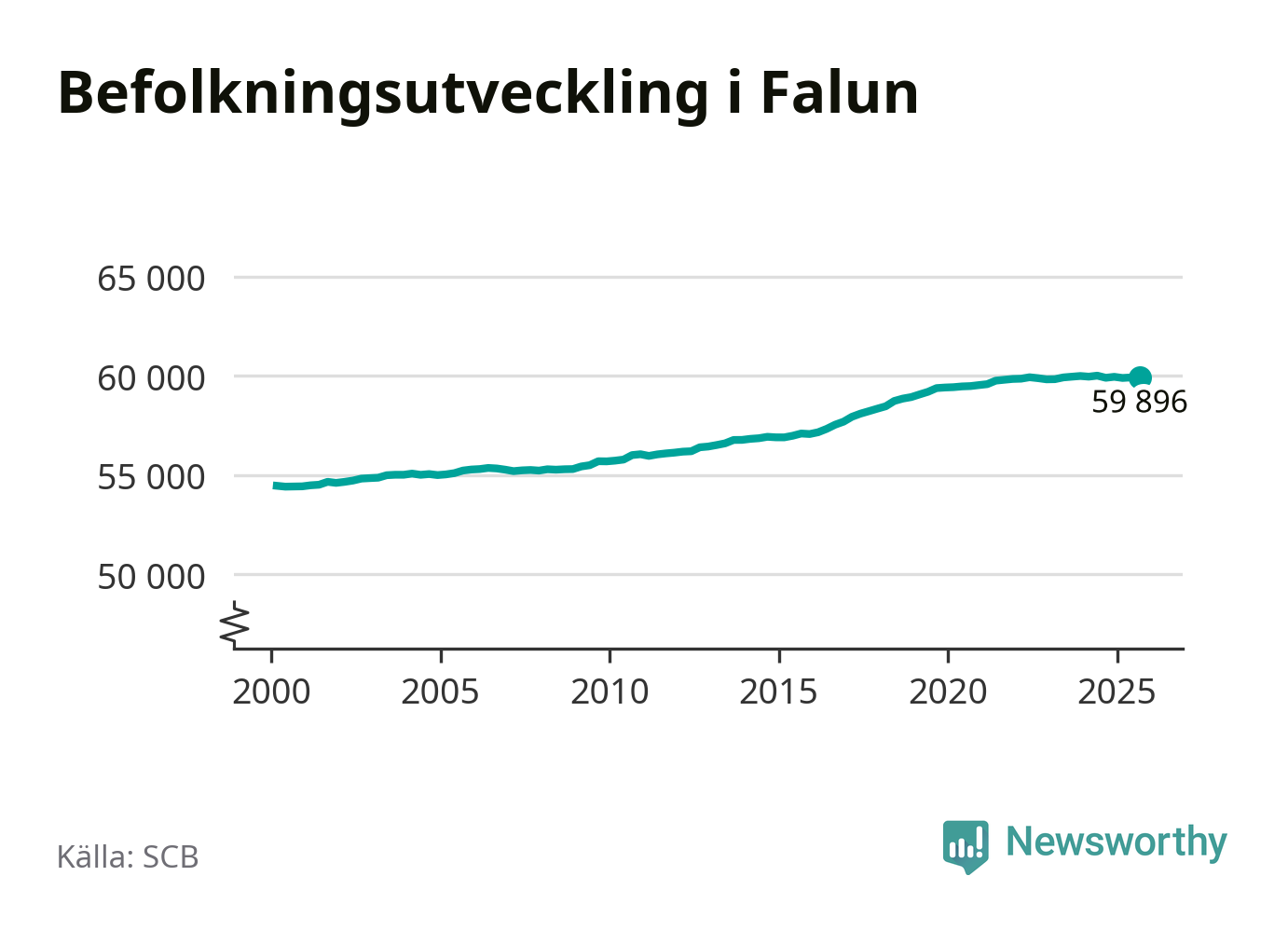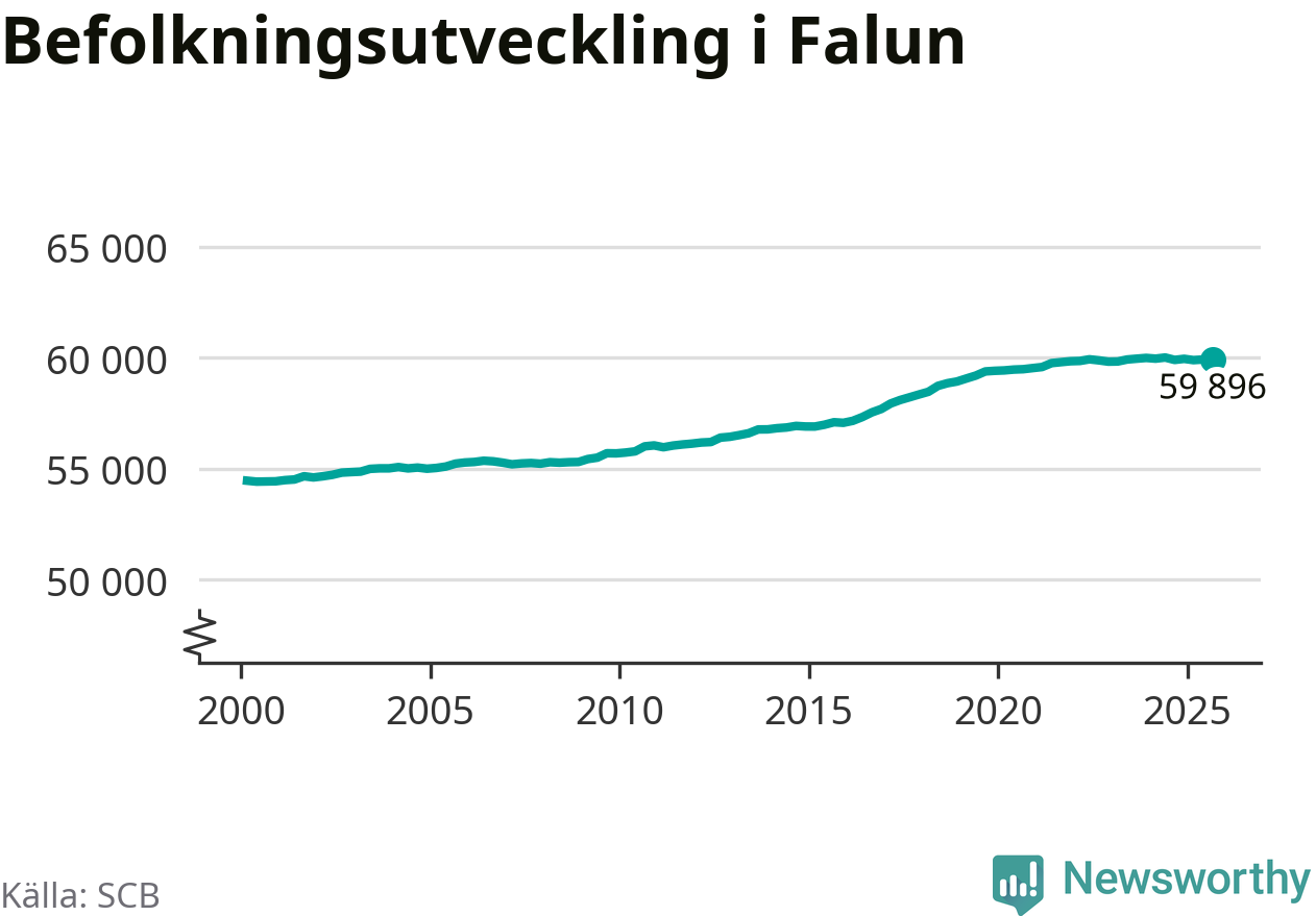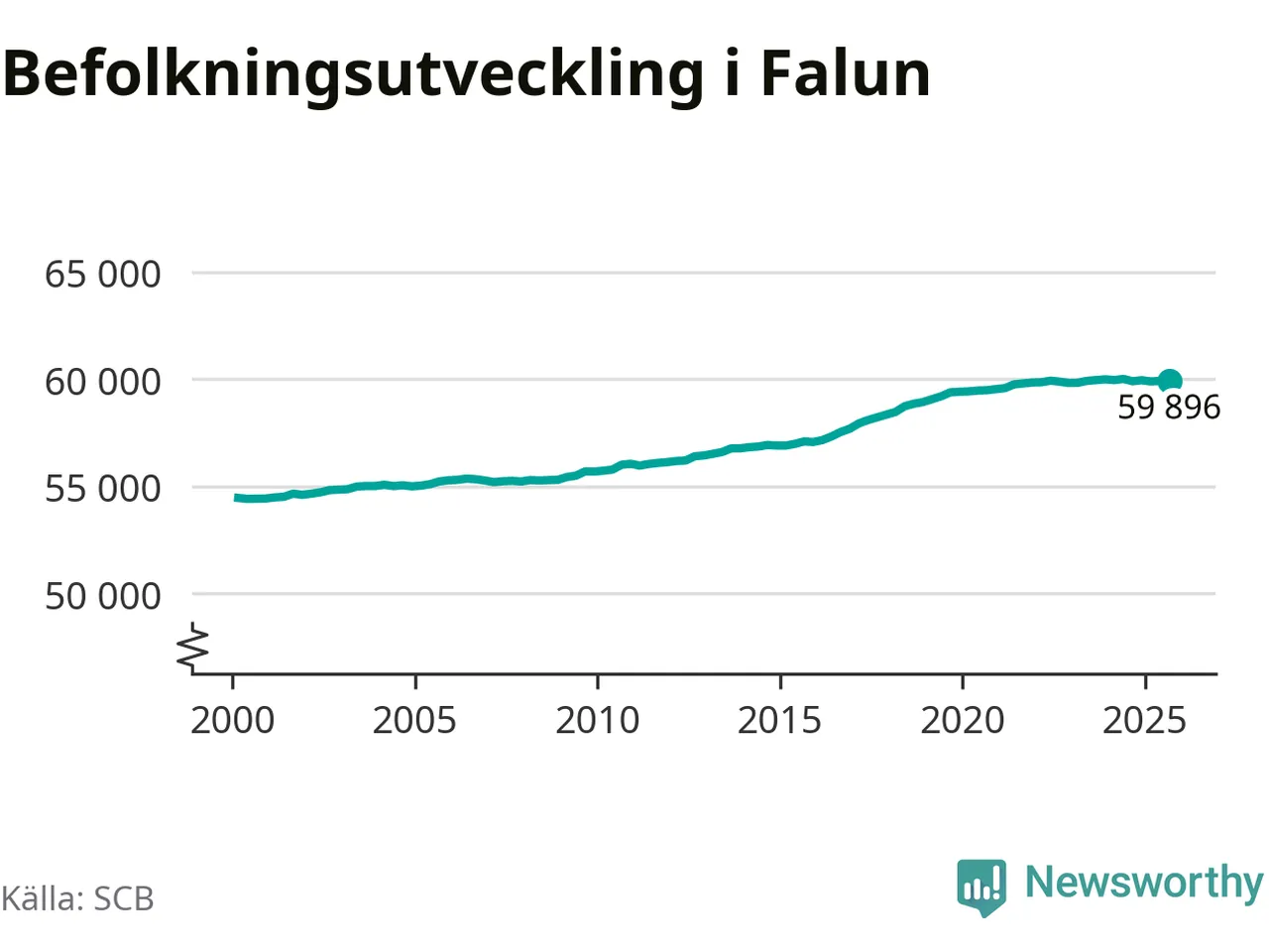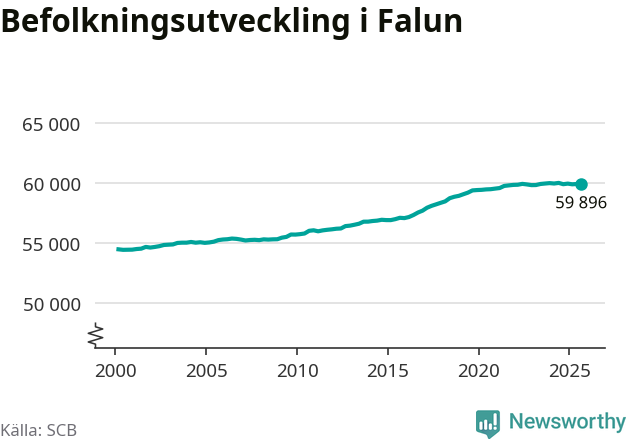 Befolkningen minskade i Falu kommun under det tredje kvartalet 2025. Den 30 september bodde enligt SCB:s senaste siffror 59 896 personer i kommunen, vilket är 18 färre än i slutet av andra kvartalet.