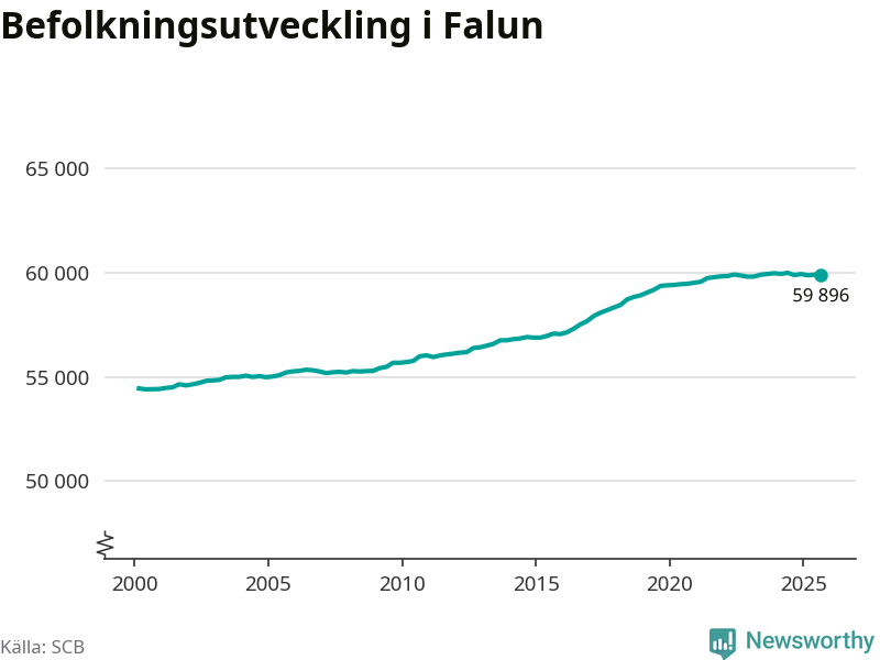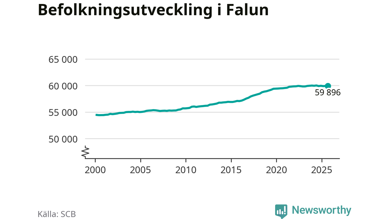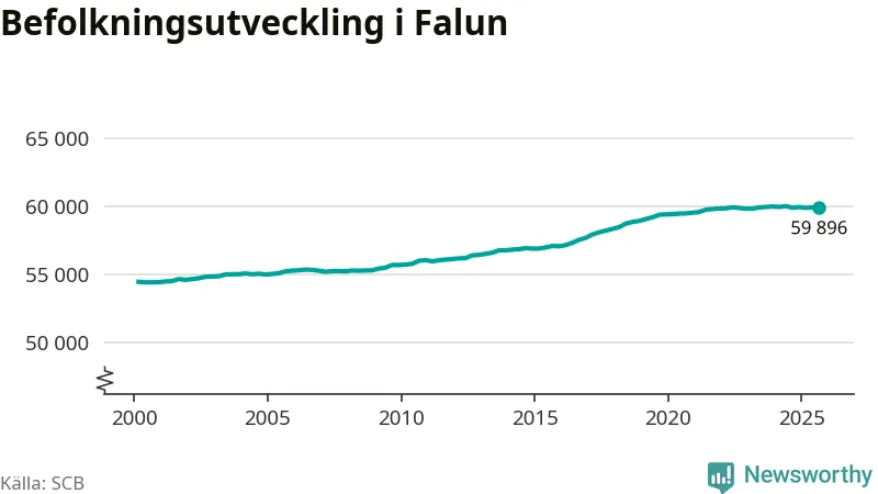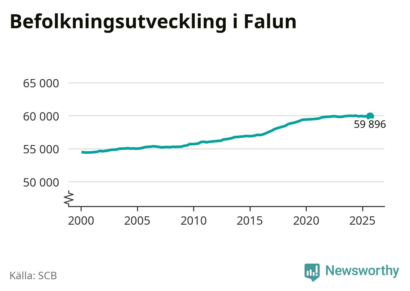 Befolkningen minskade i Falu kommun under det tredje kvartalet 2025. Den 30 september bodde enligt SCB:s senaste siffror 59 896 personer i kommunen, vilket är 18 färre än i slutet av andra kvartalet.